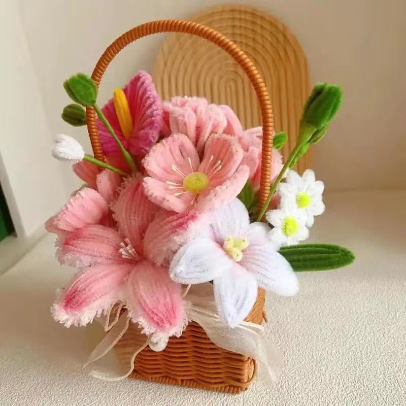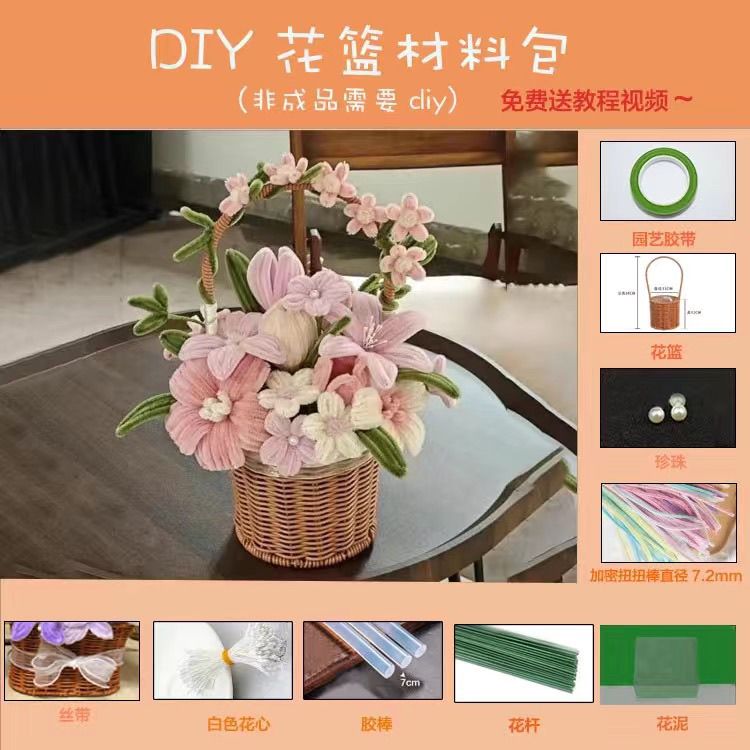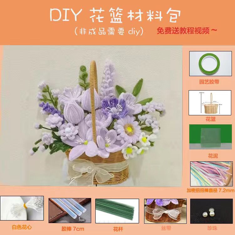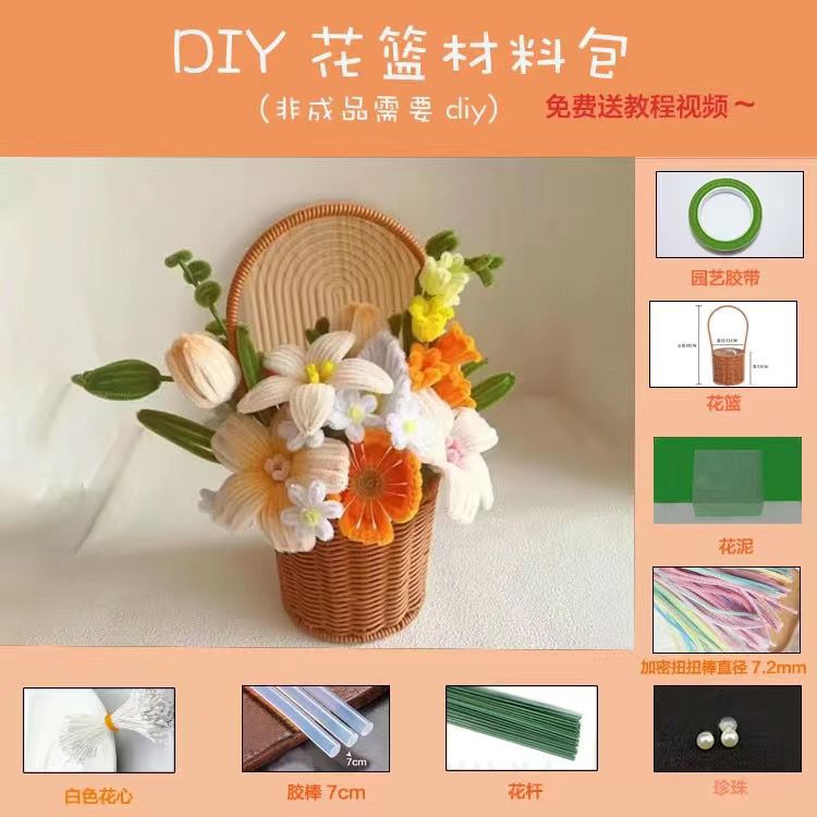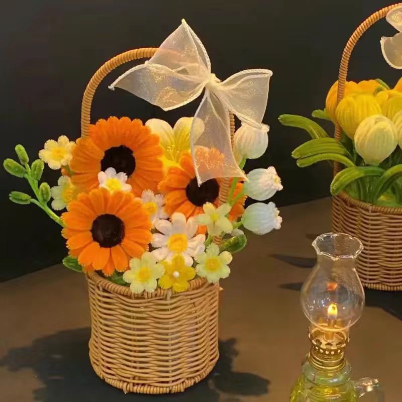 扭扭棒花篮diy花束自制材料包郁金香向日葵手工花送朋友闺蜜礼物