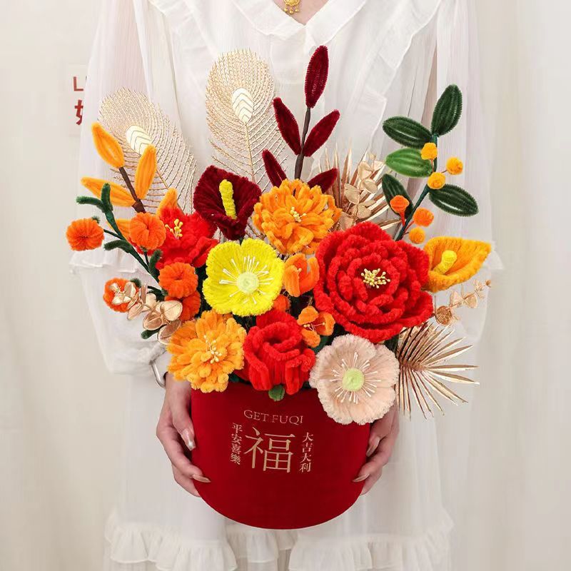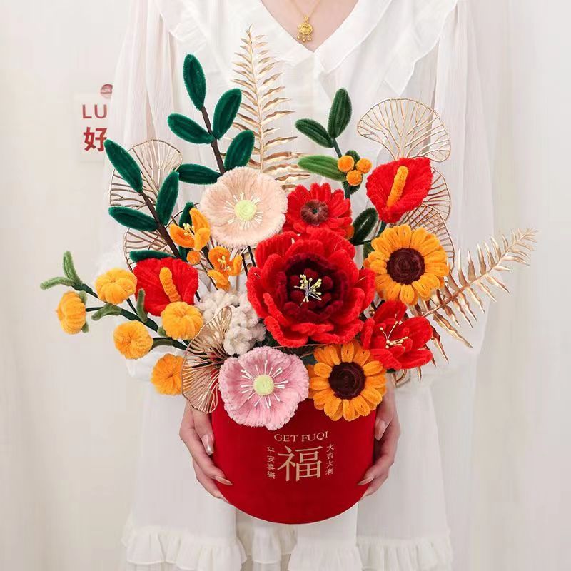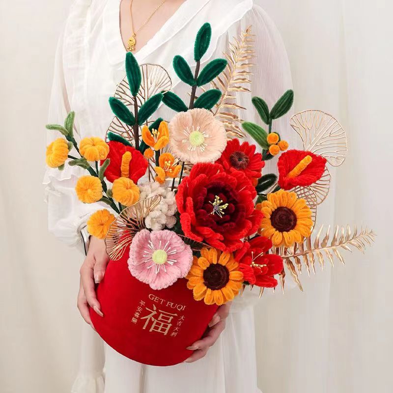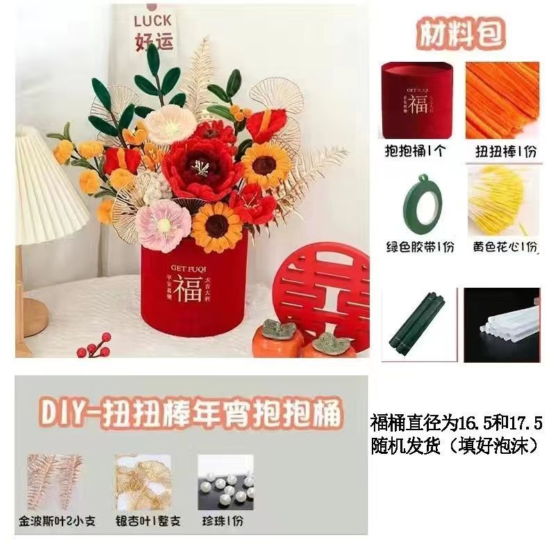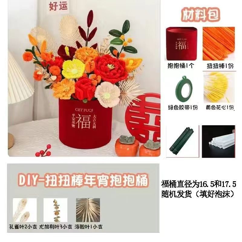 扭扭棒花束DIY年宵抱抱桶花艺包装材料包新年乔迁送朋友手工礼物