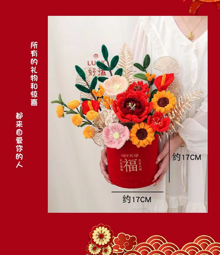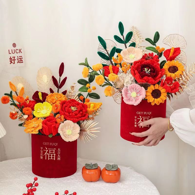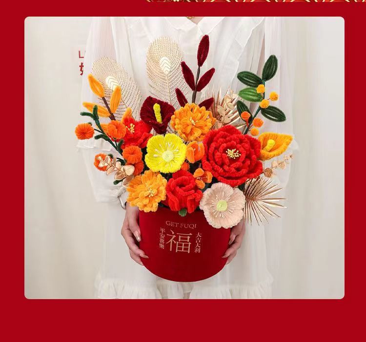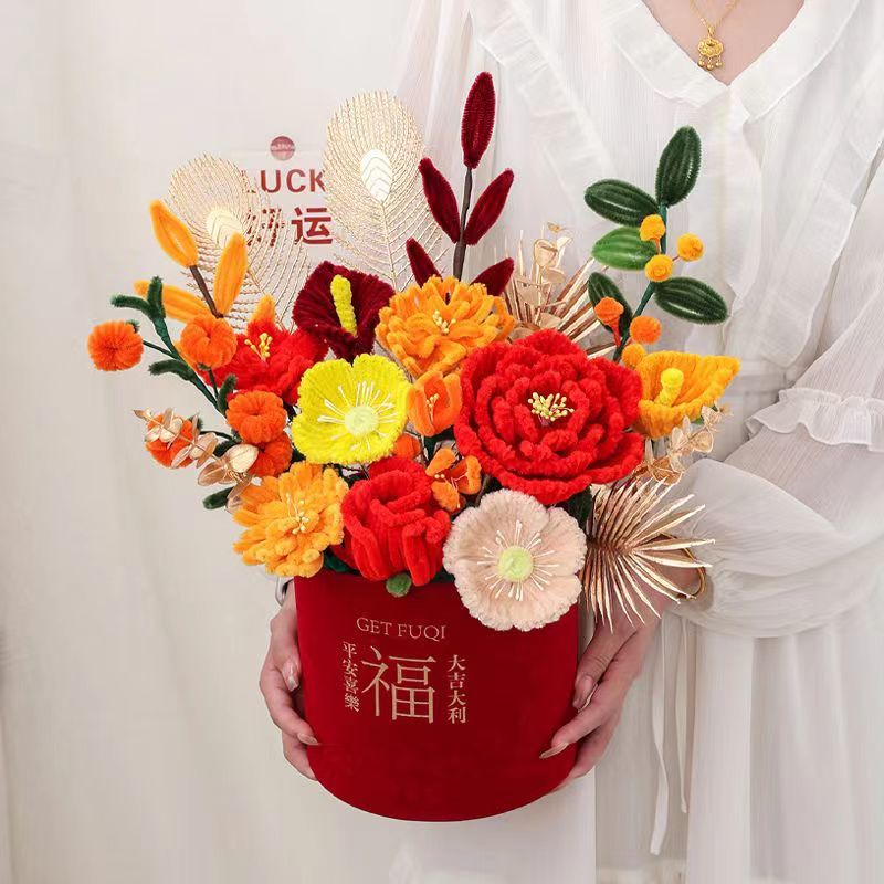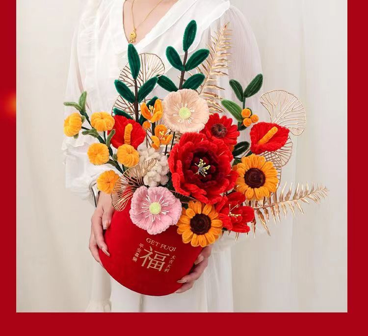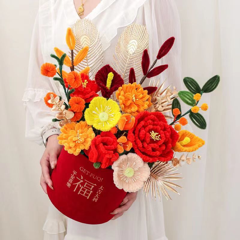 扭扭棒花束DIY年宵抱抱桶花艺包装材料包新年乔迁送朋友手工礼物