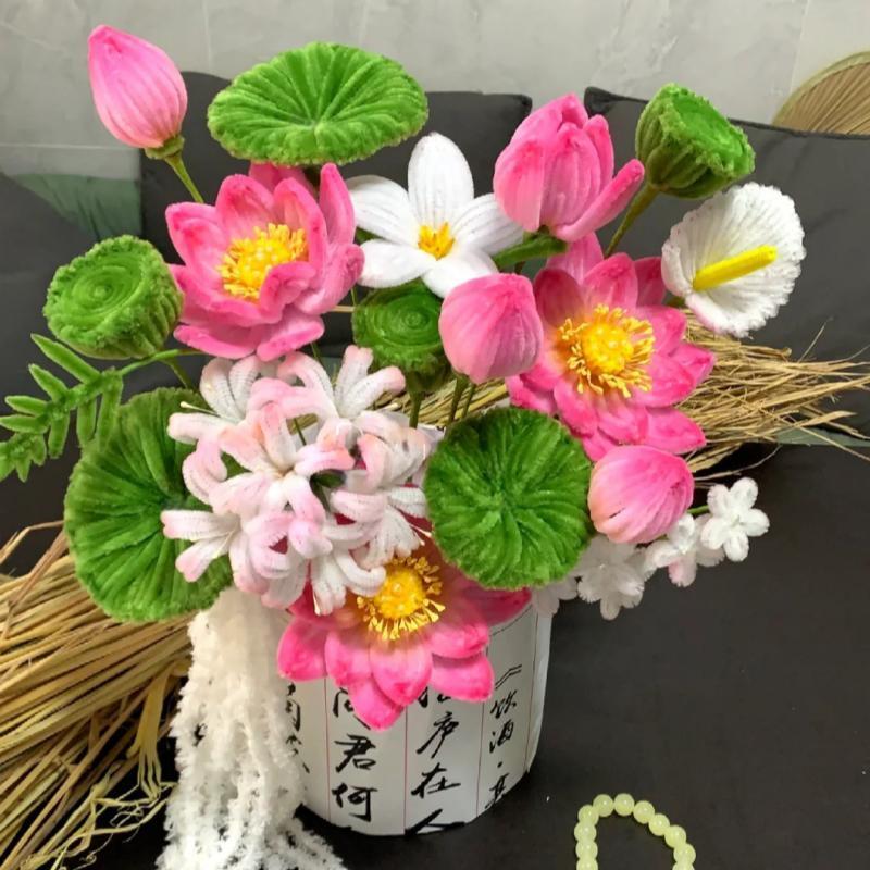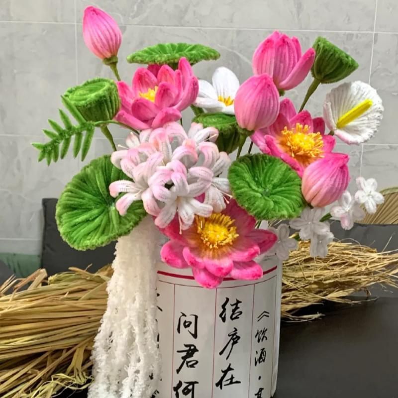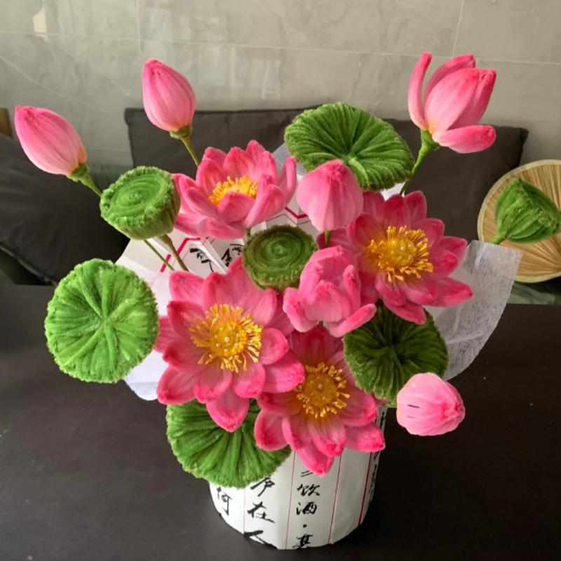 diy荷花扭扭棒抱抱桶材料包自制莲花成品好运莲莲送朋友闺蜜礼物