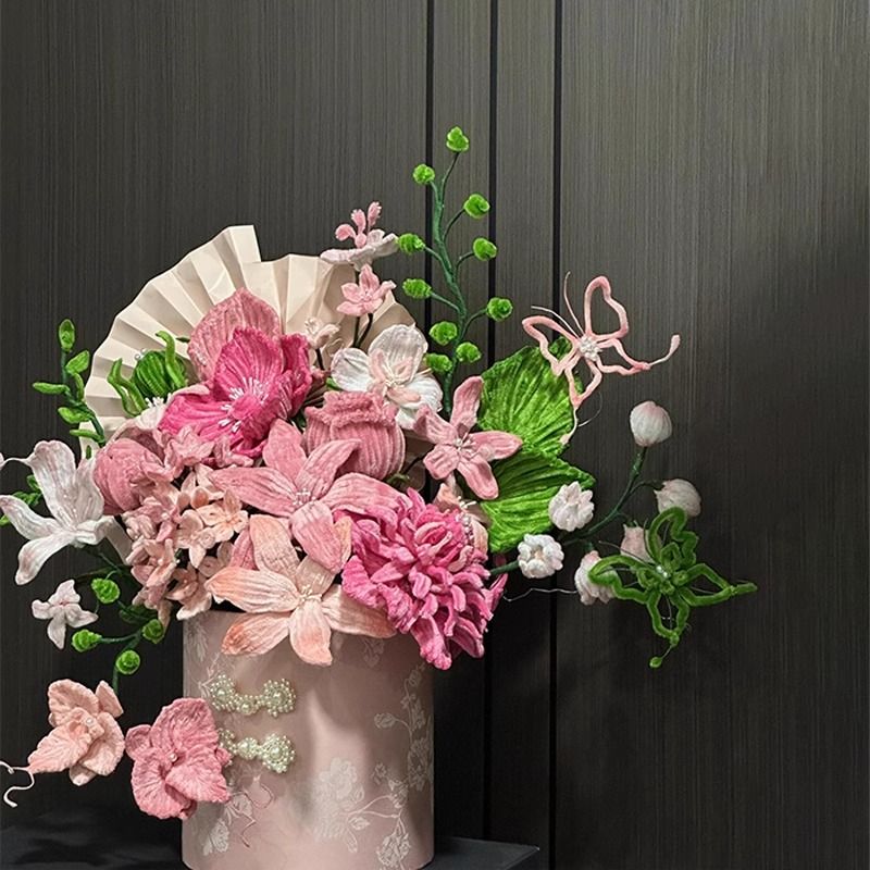 | pink printing flower pot bouquet-material package(粉色印花抱抱桶花束-材料包) | USD $9.03 | 99999 piece available |
