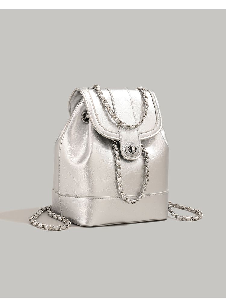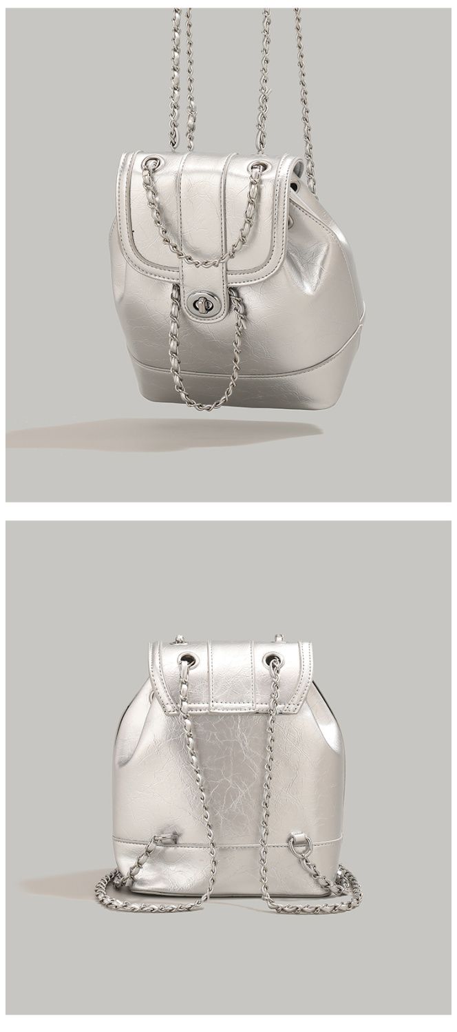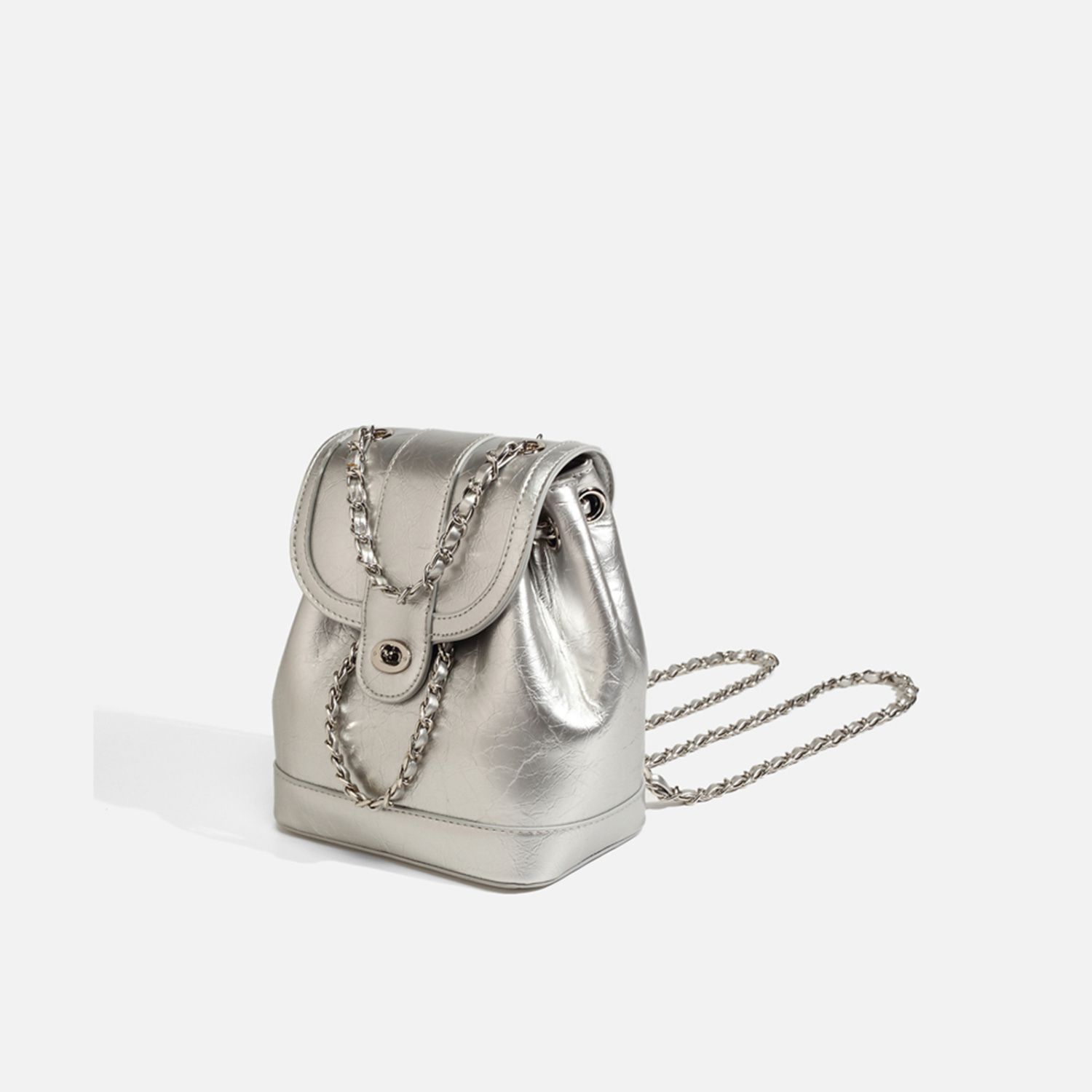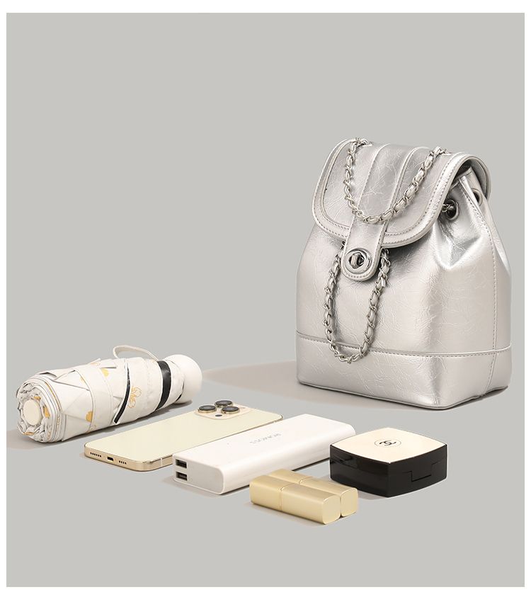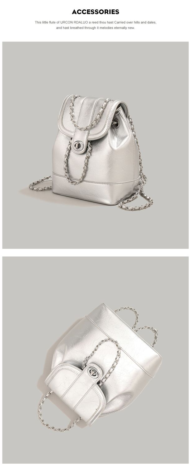 UR小众设计链条双肩包包女2024新款高级质感小香风背包百搭水桶包