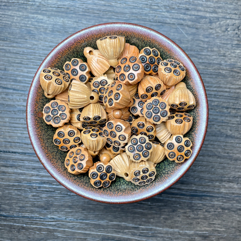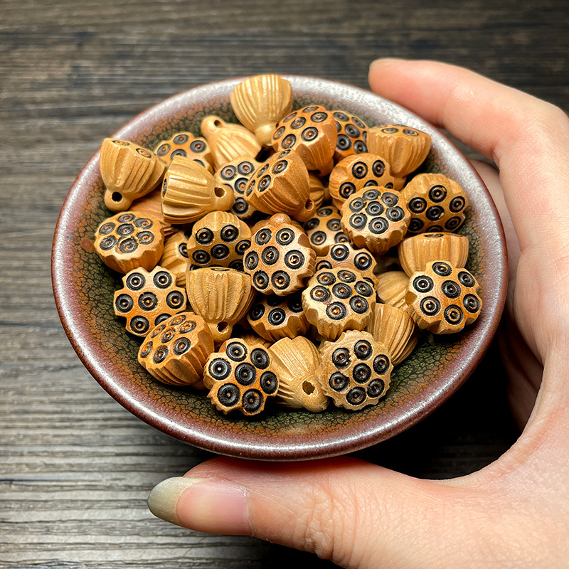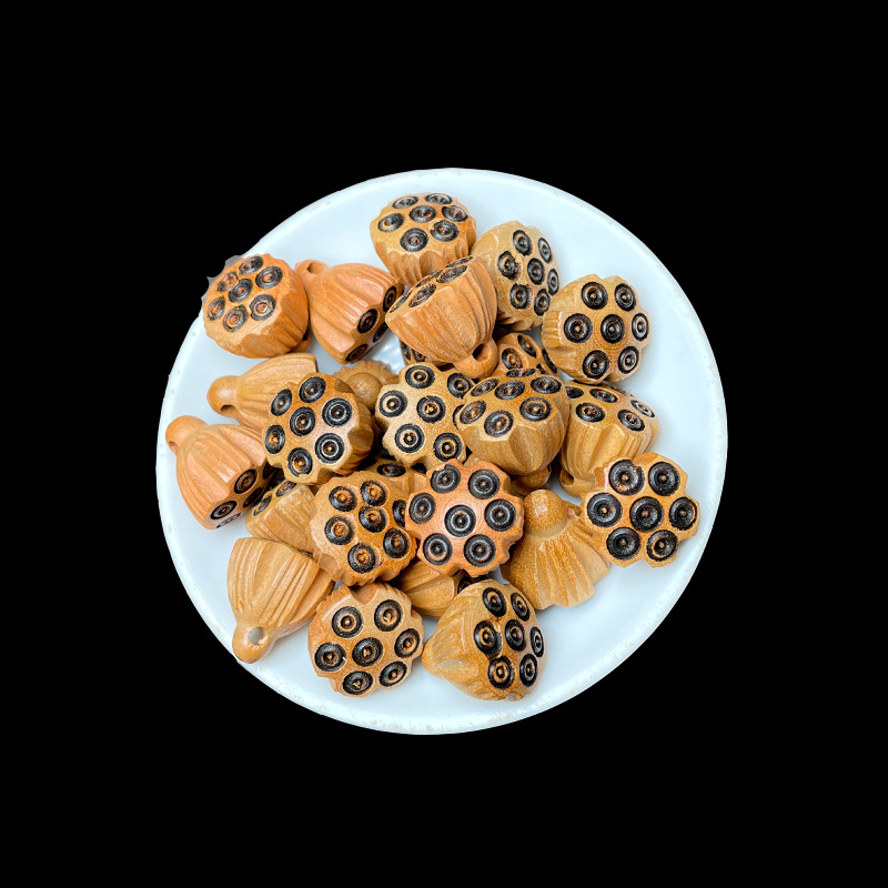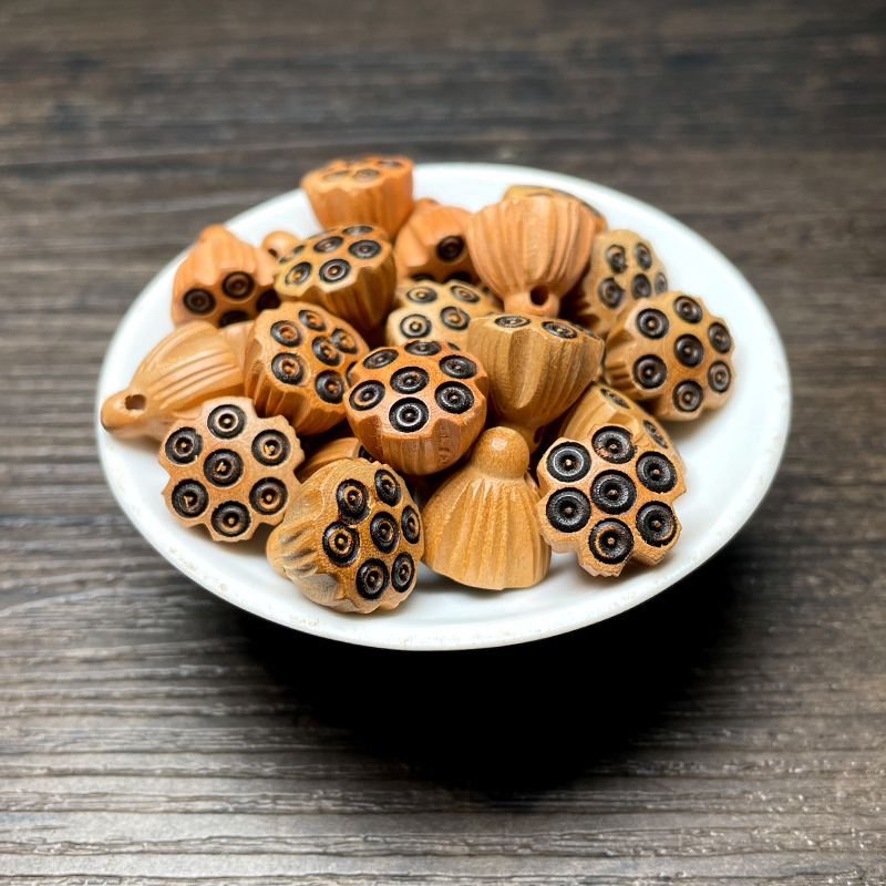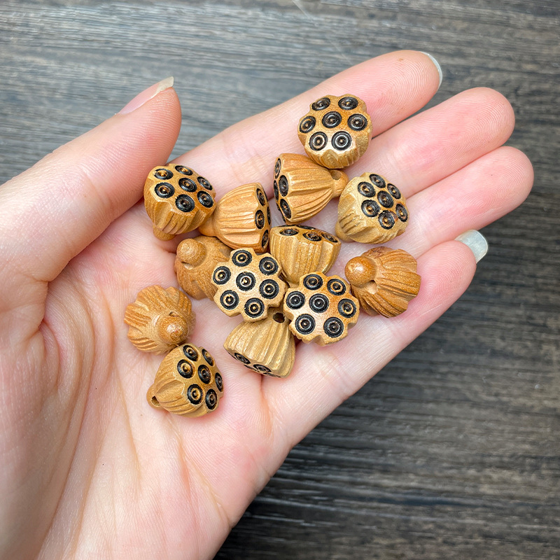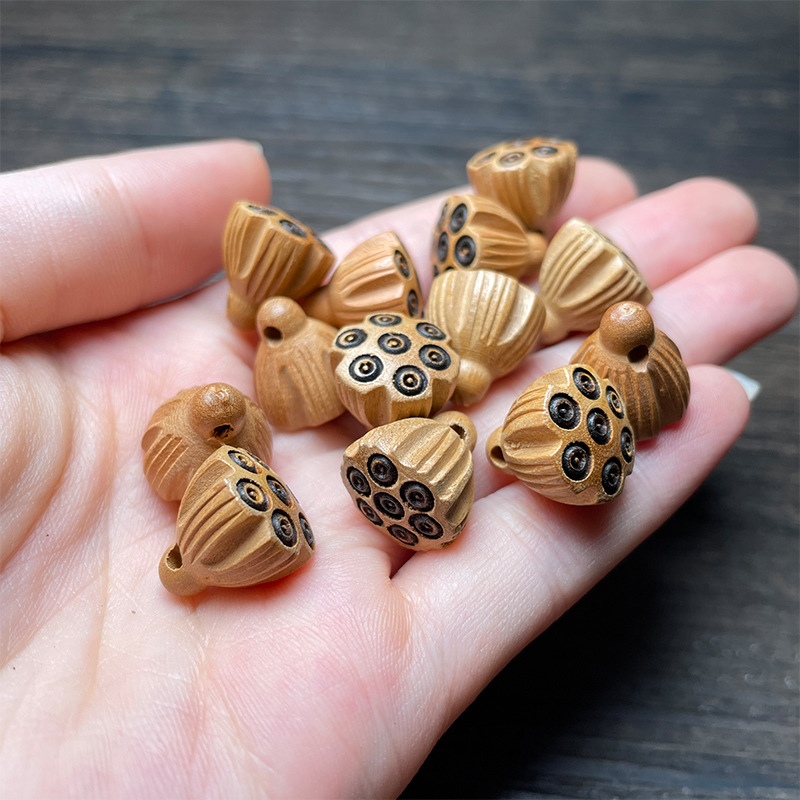桃木七子莲蓬小配饰木质雕刻花朵DIY散件配饰佛珠配件香囊配饰
