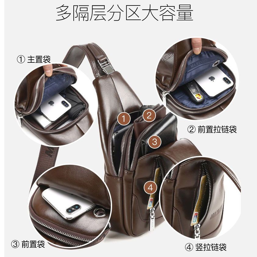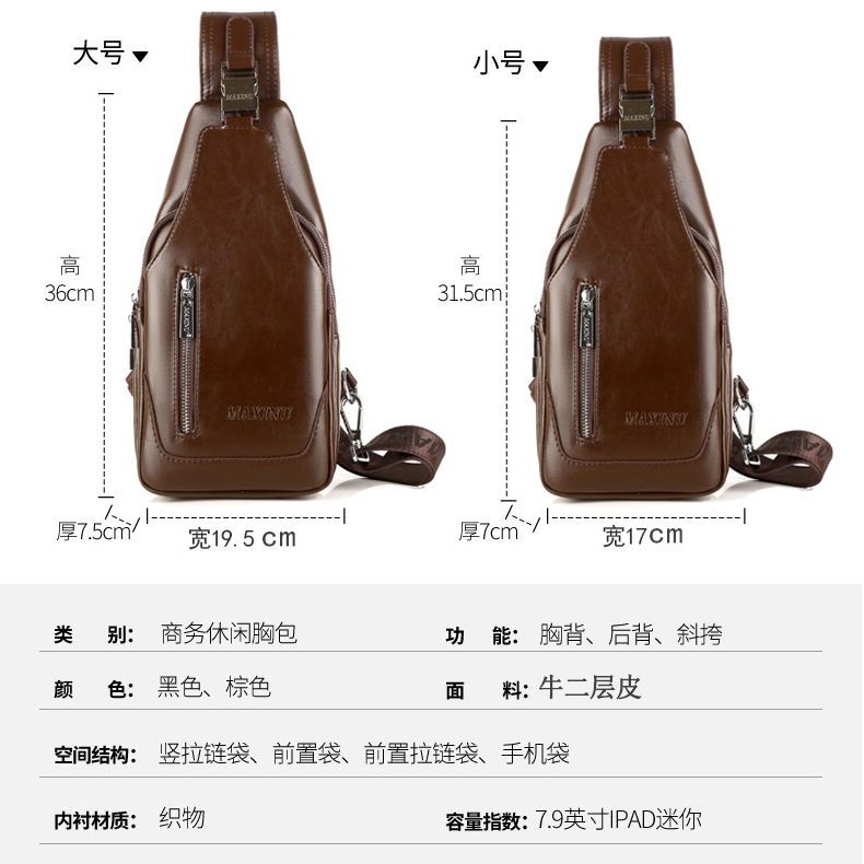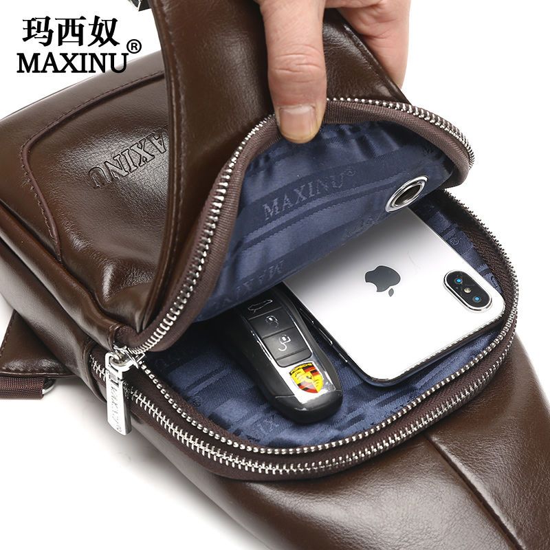 玛西奴男士胸包真皮包包男包单肩包斜挎包挂包牛皮小背包男土斜包