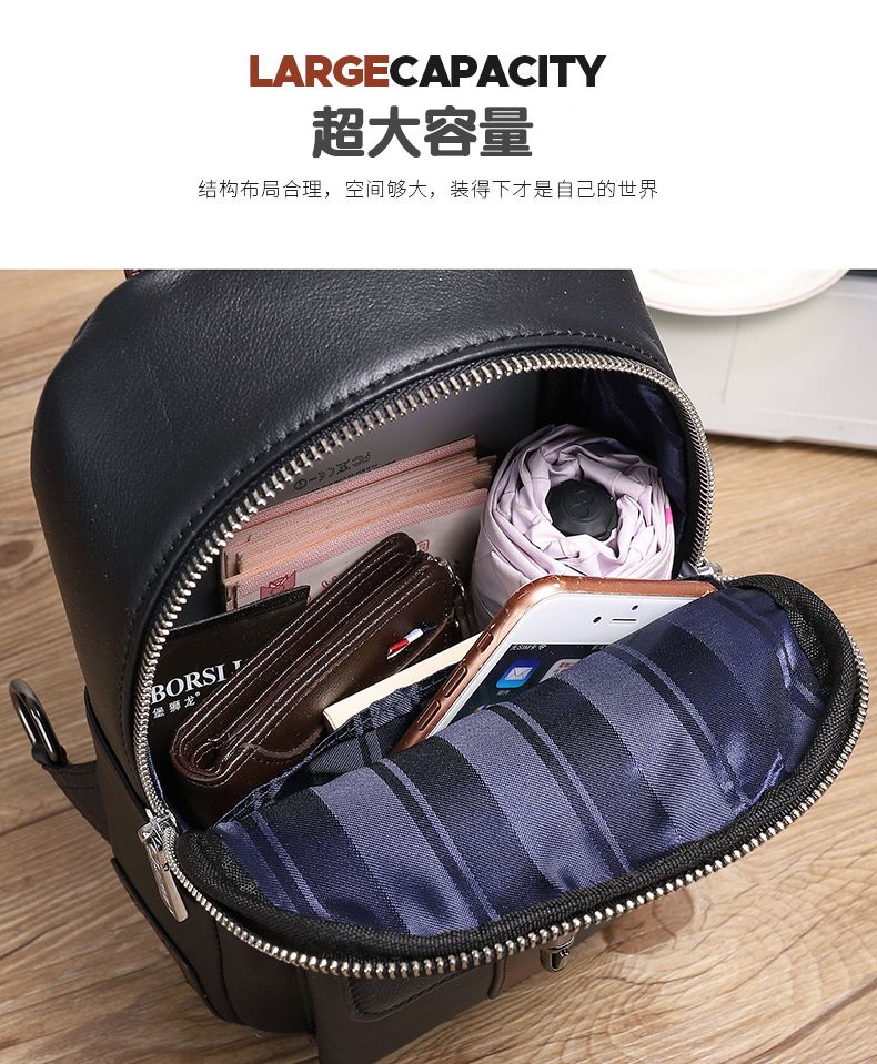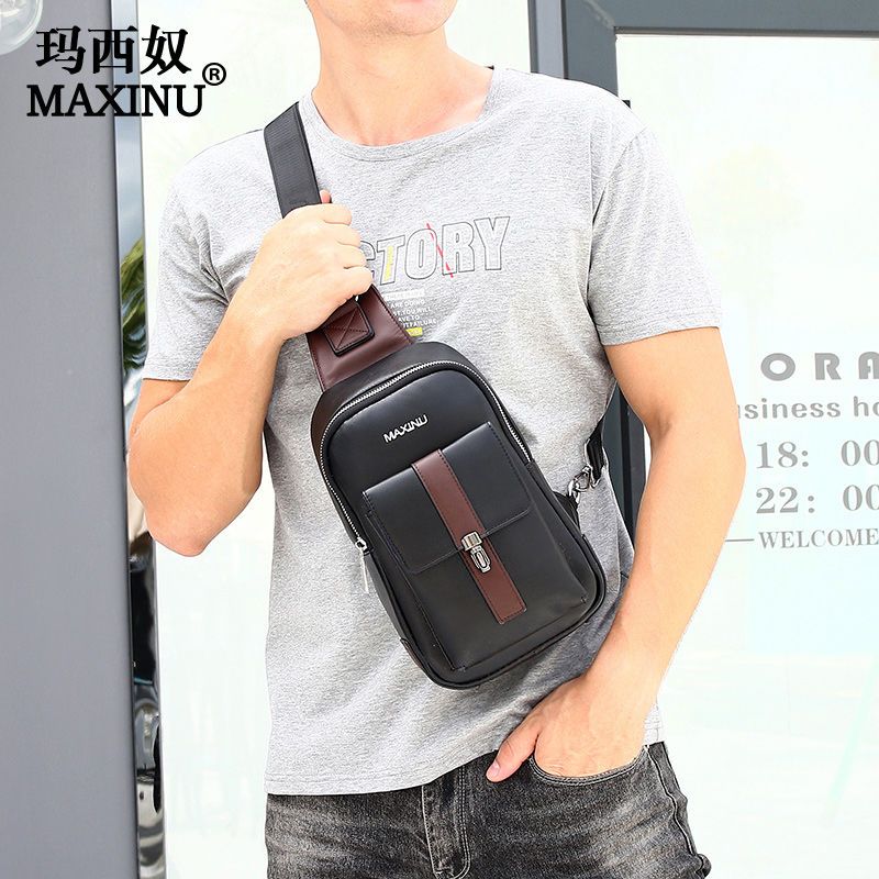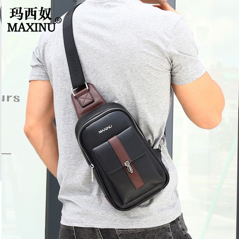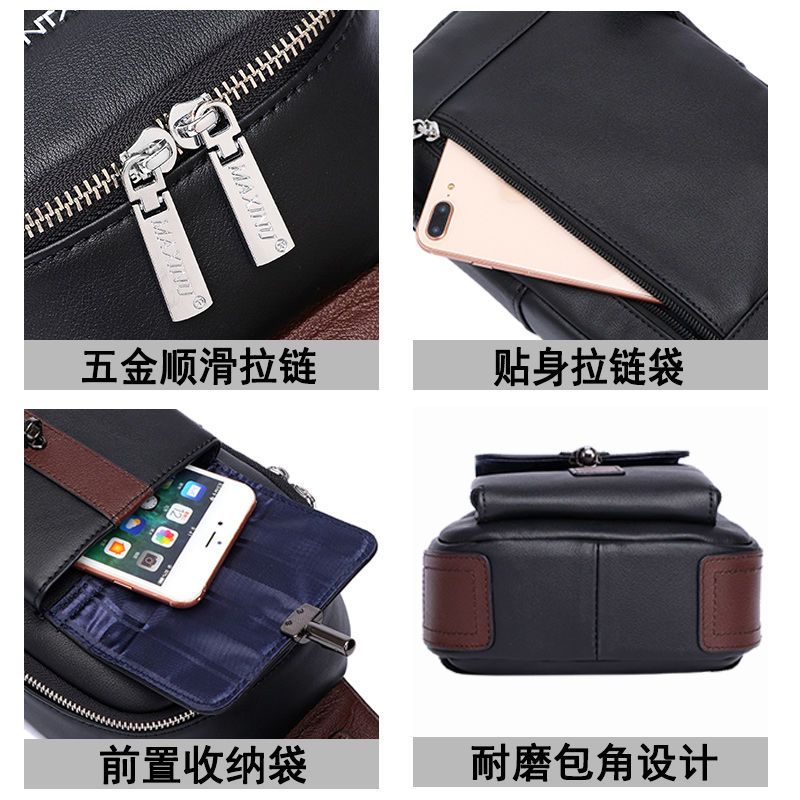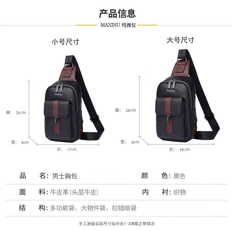 玛西奴头层牛皮男士胸包软真皮包包男包单肩包韩版斜挎包潮牌背包