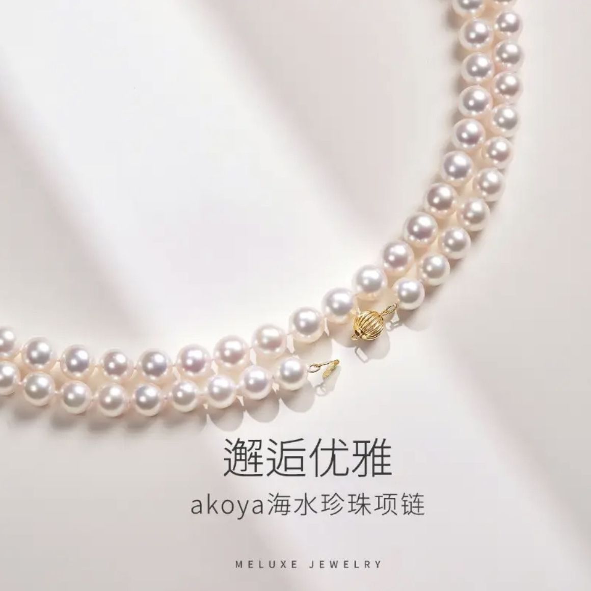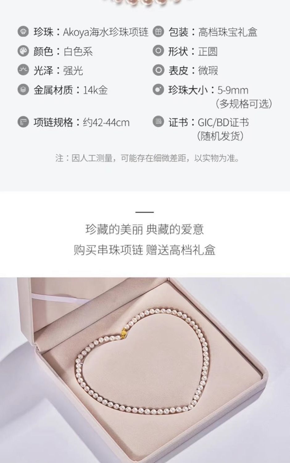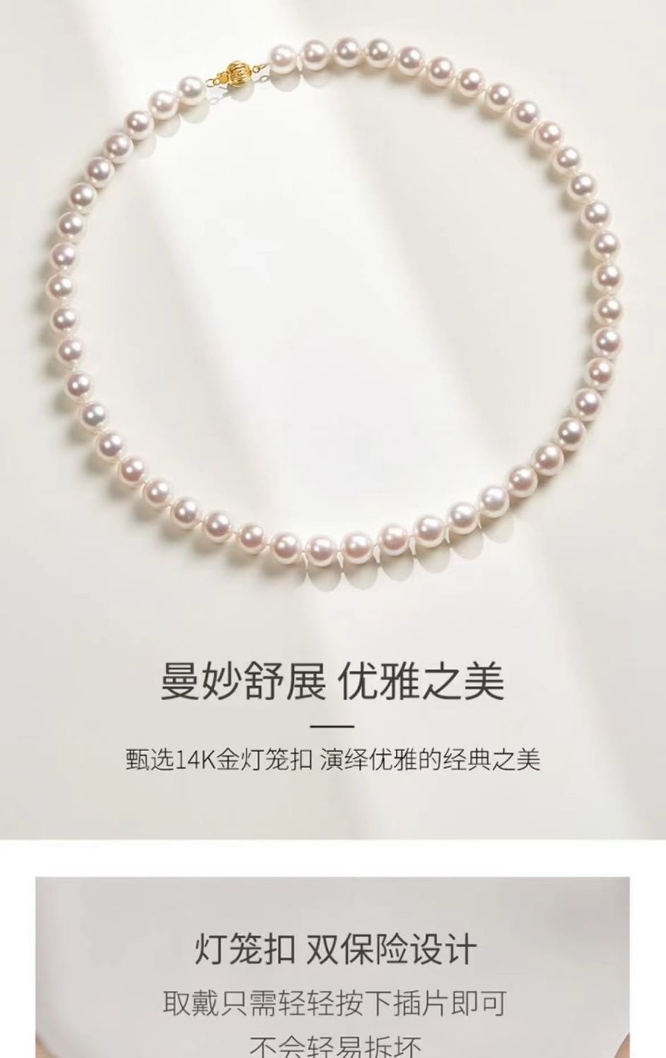 日本akoya珍珠项链全珠链正圆强光海水珠送14k灯笼扣珍珠锁骨链