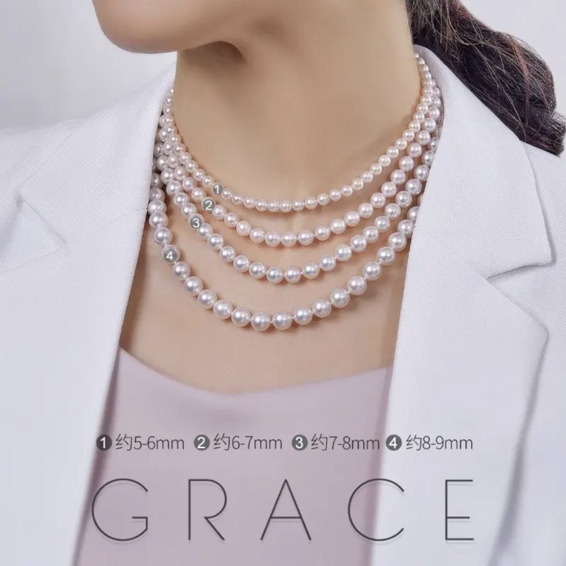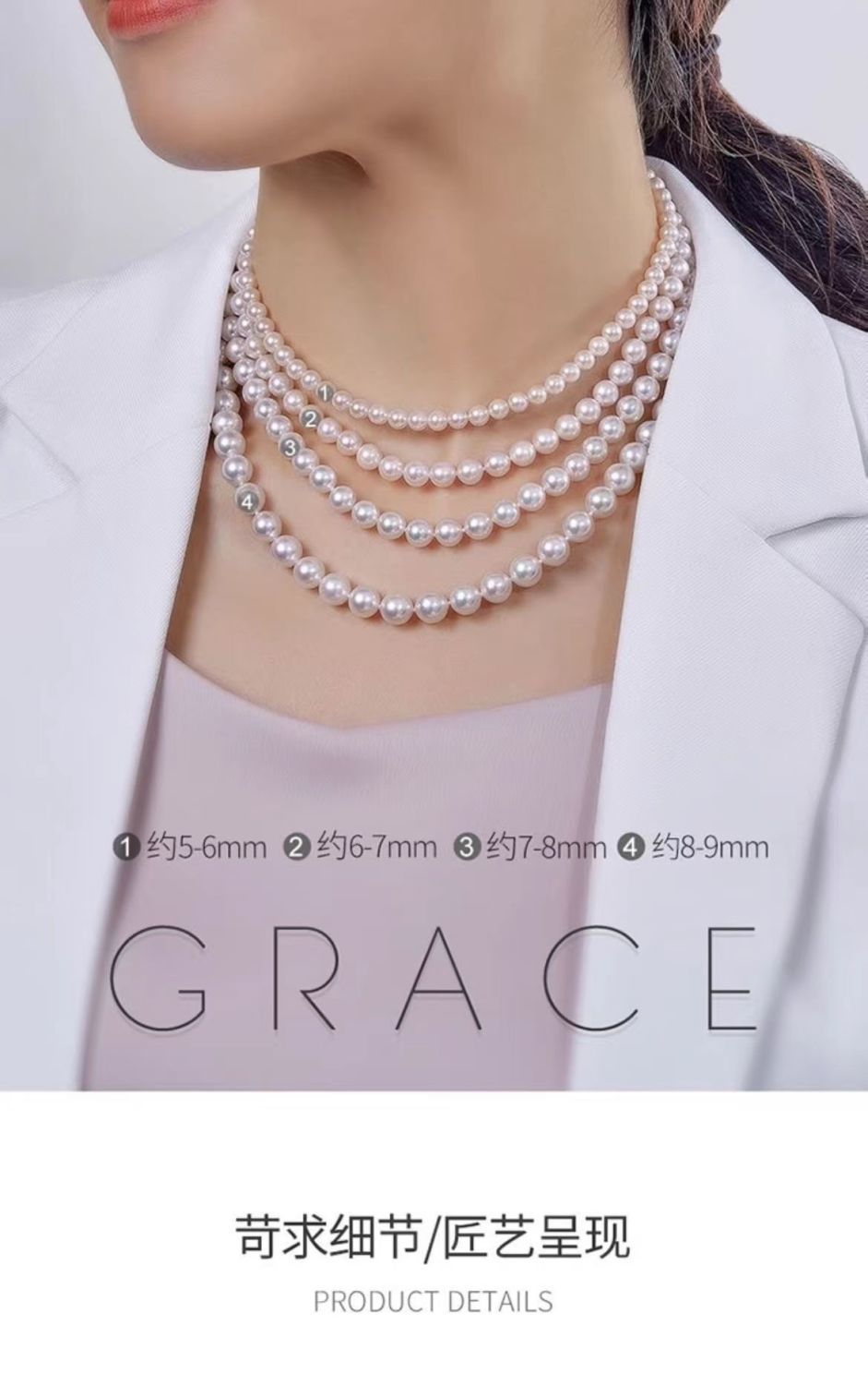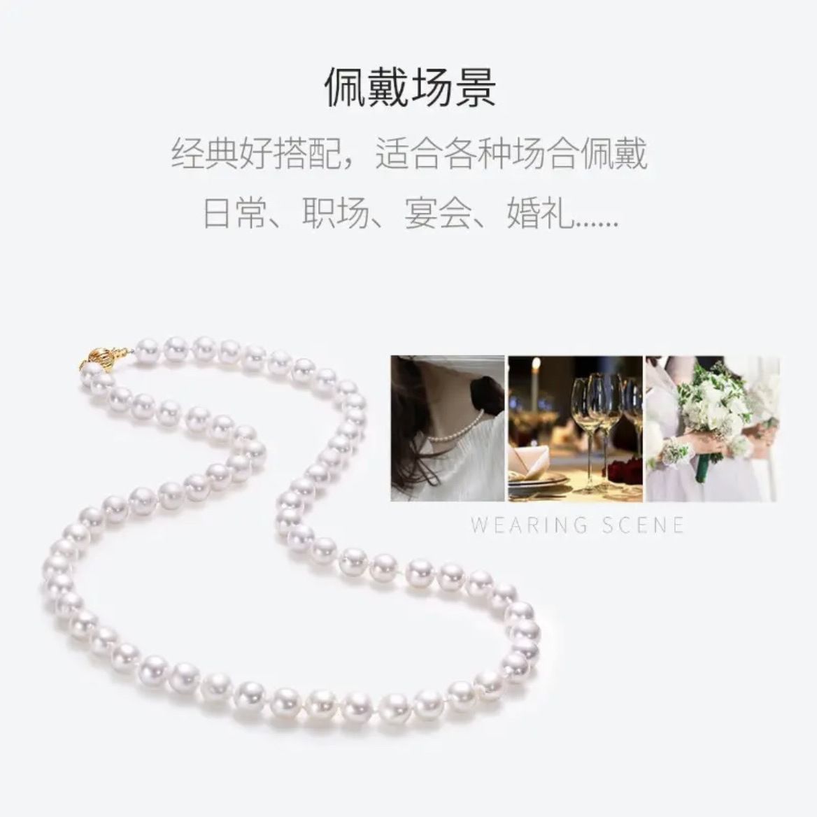 日本akoya珍珠项链全珠链正圆强光海水珠送14k灯笼扣珍珠锁骨链