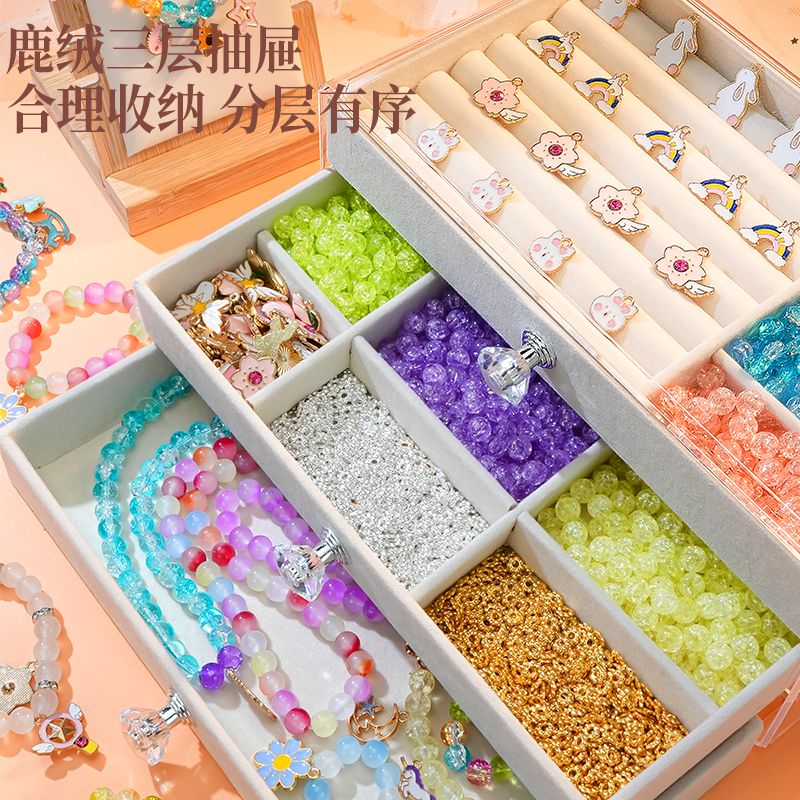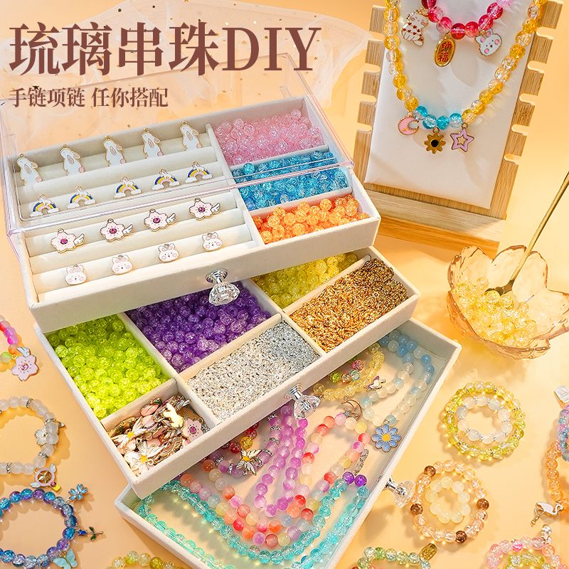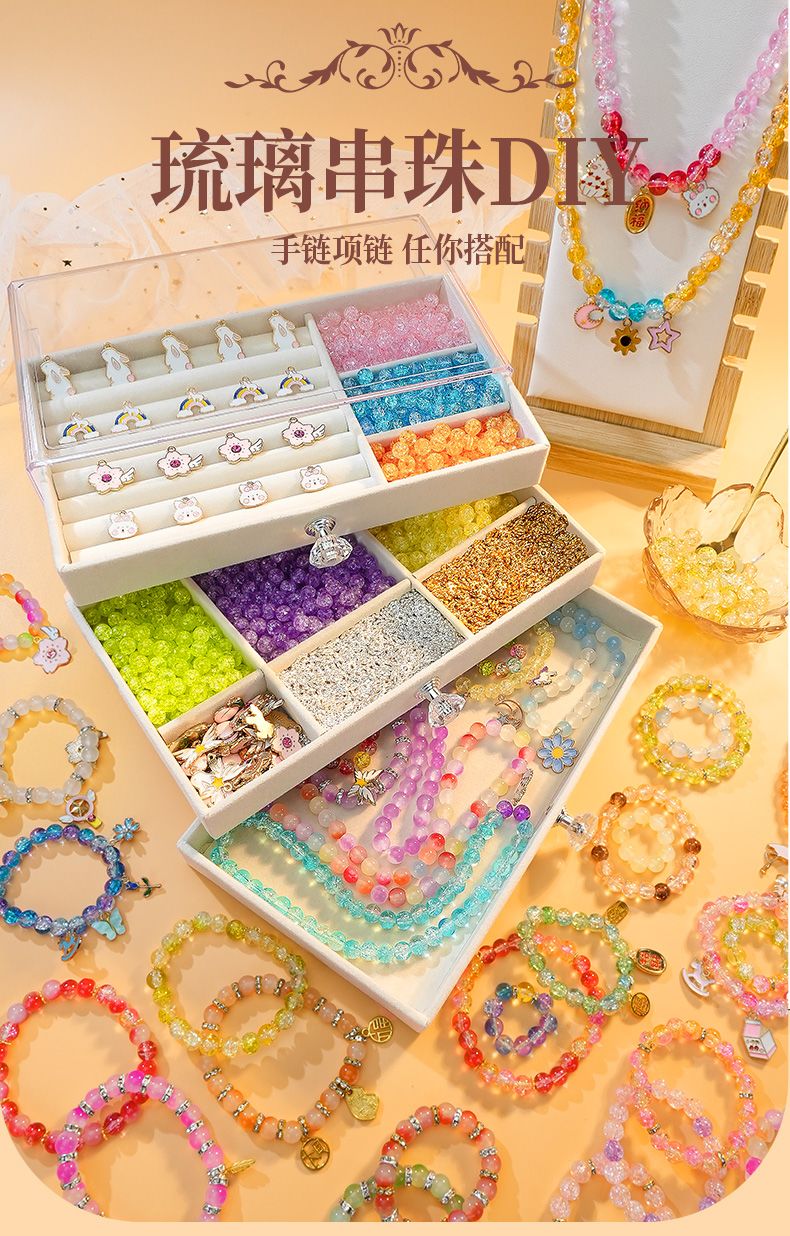 儿童串珠手工diy材料包穿手链珠子益智女孩子玩具玻璃珠项链礼物