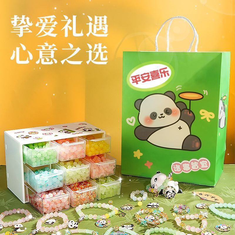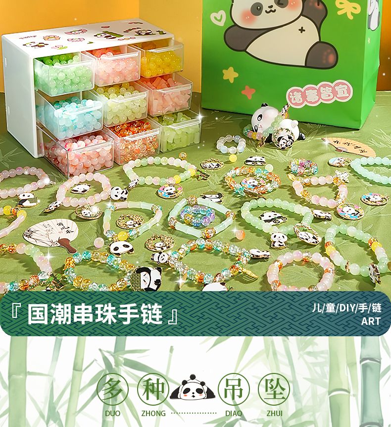 国潮夏日风串珠手工儿童手链玩具女孩穿珠子女童熊猫diy手串益智1