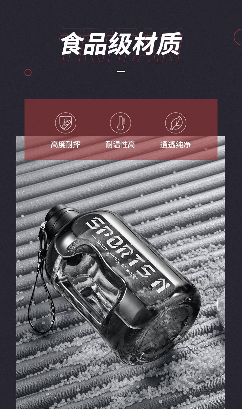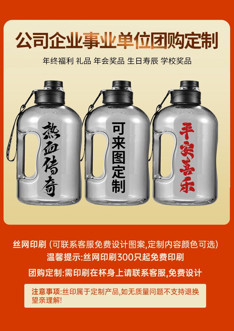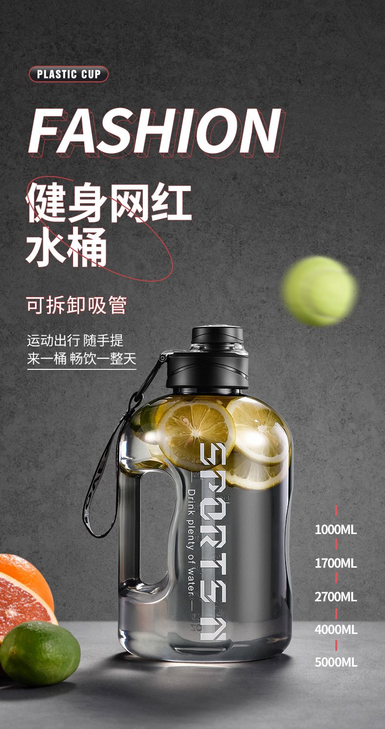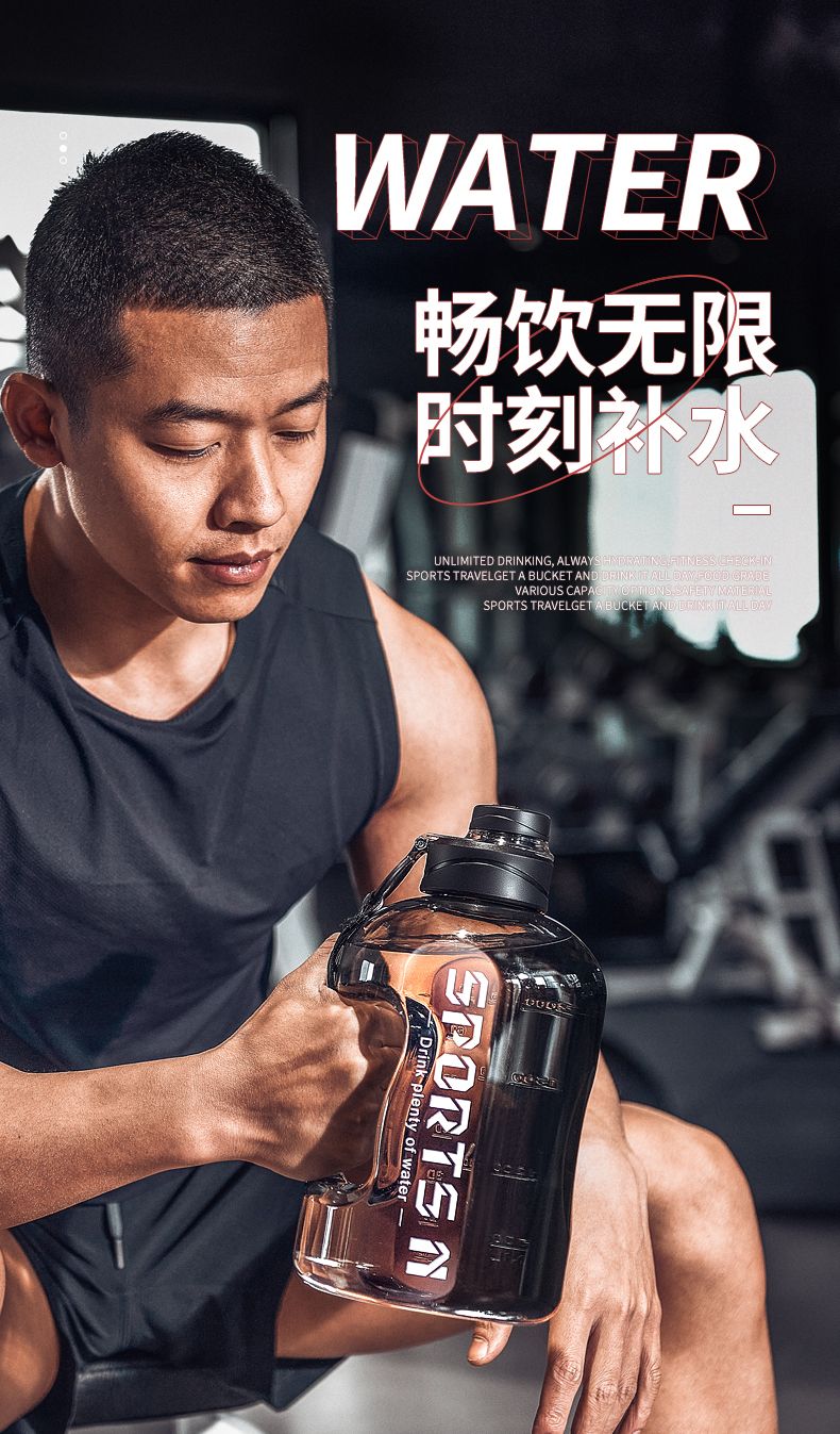 网红健身水杯大容量高颜值吨桶吨男女便携防摔耐高温新款军训水壶