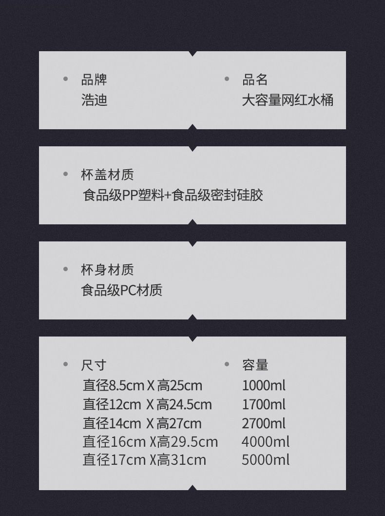| 5.0 liters [food grade pc]](5.0升【食品级PC】) | USD $8.78 | 99999 piece available |