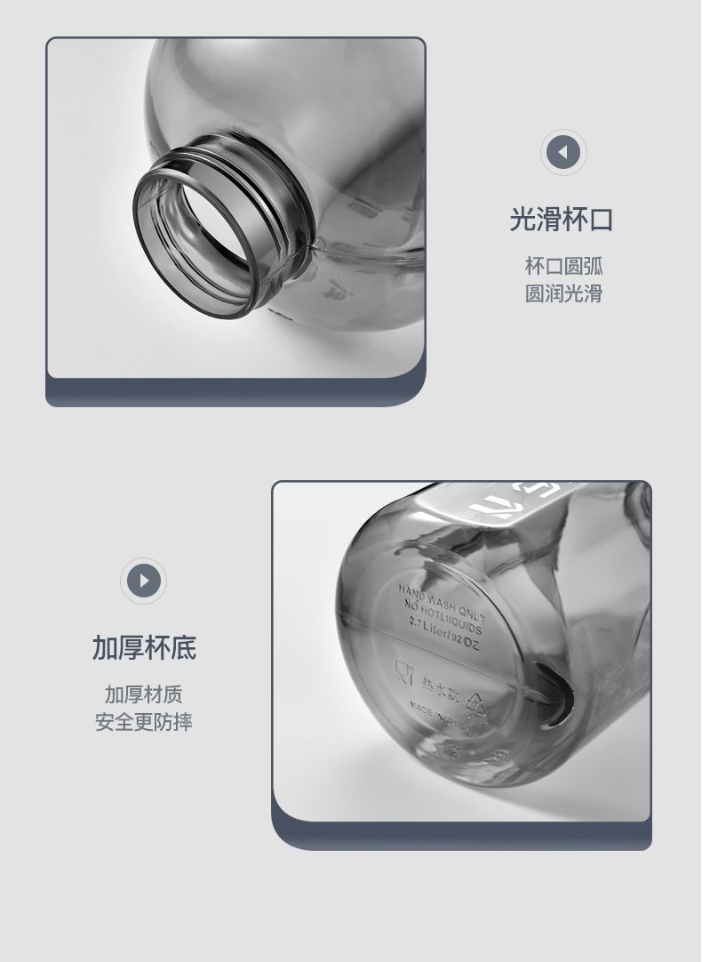 | 2.7 liters [maternal and child tritan] + cup cover(2.7升【母婴级Tritan】+杯套) | USD $11.03 | 99999 piece available |