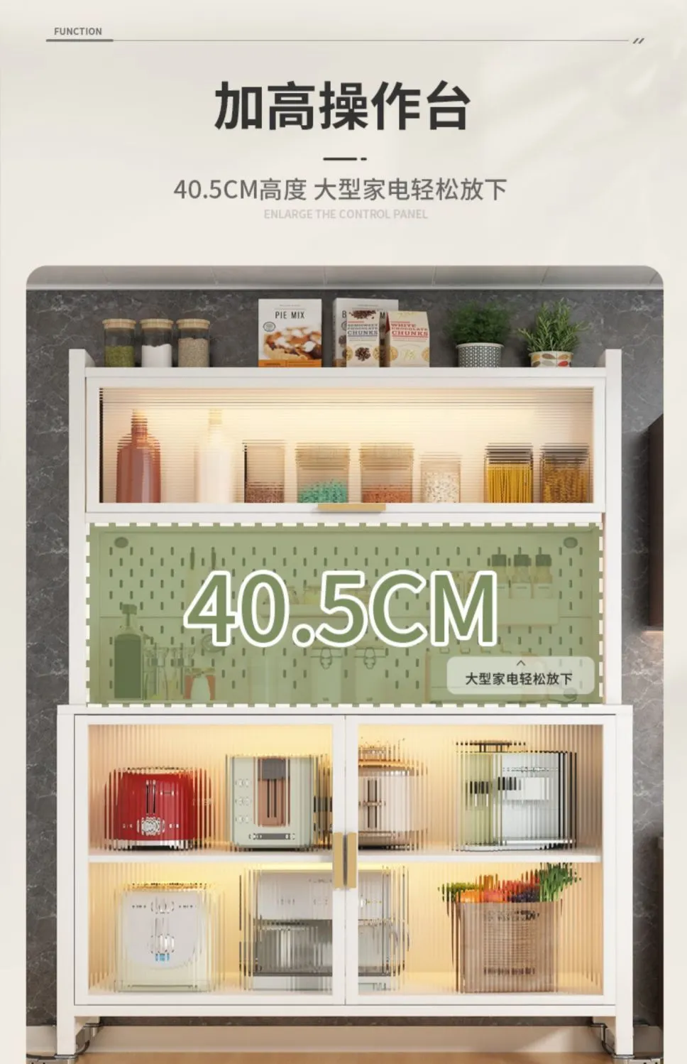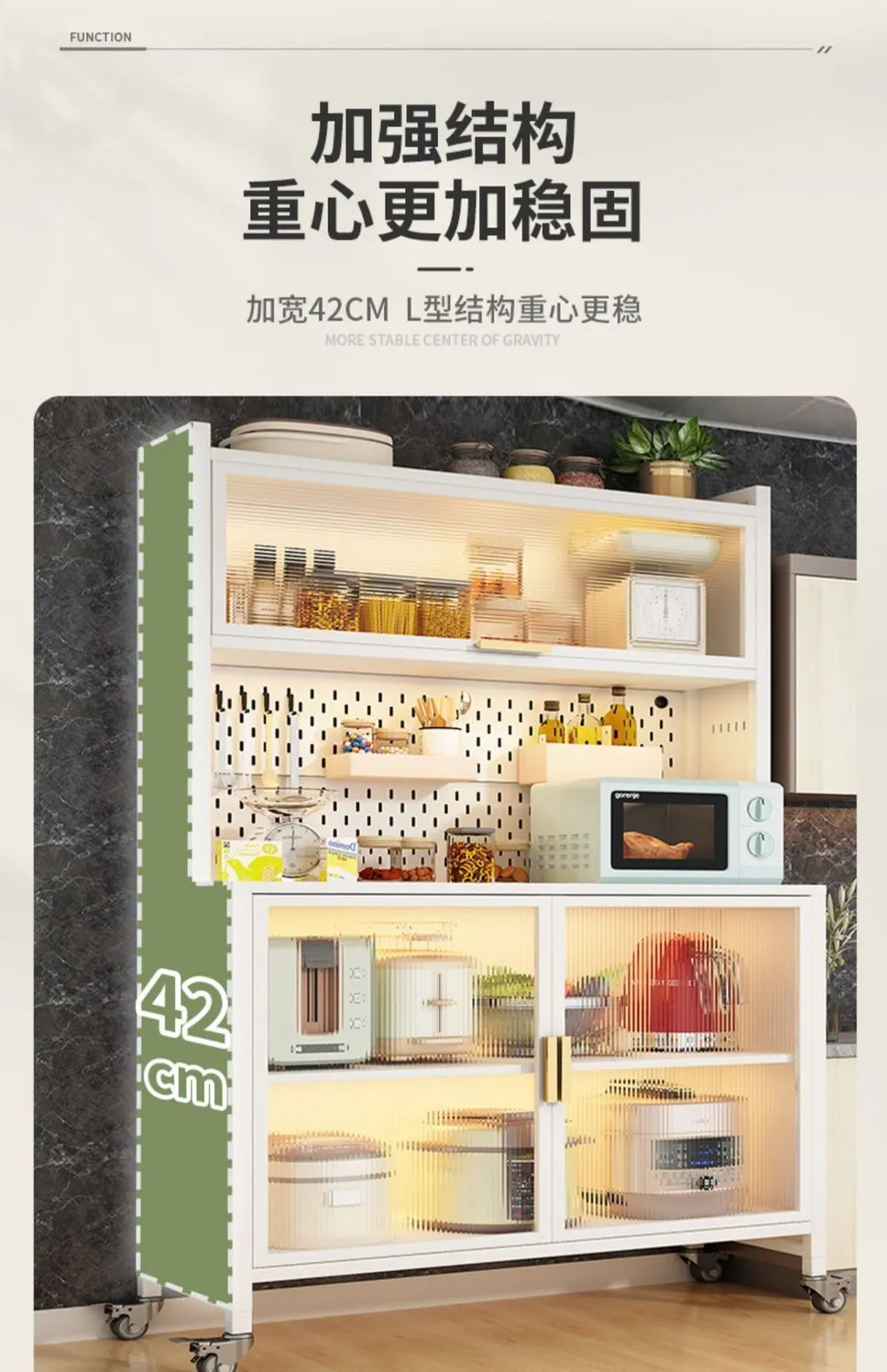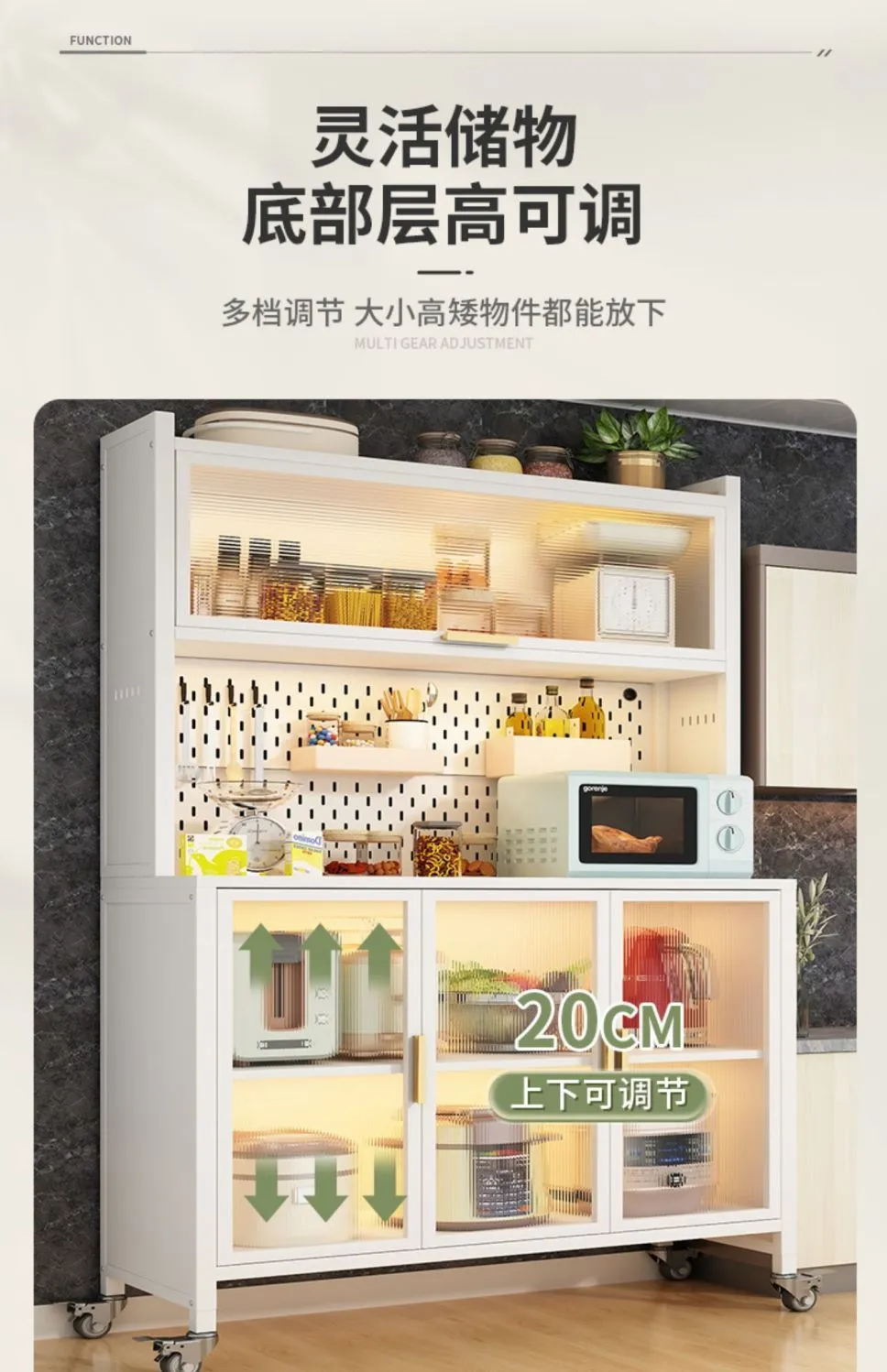厨房置物架落地收纳架铁艺餐边柜高档碗柜多功能储物柜加厚铁艺柜