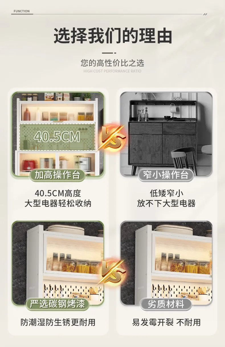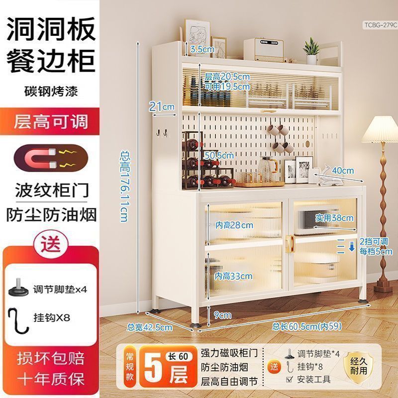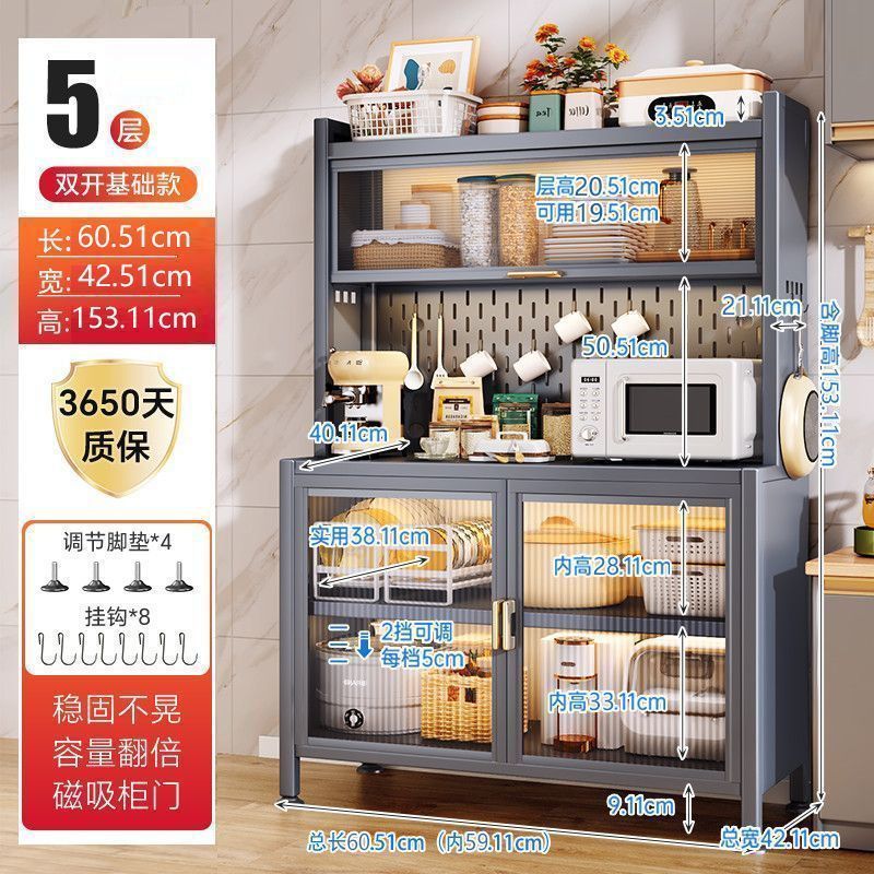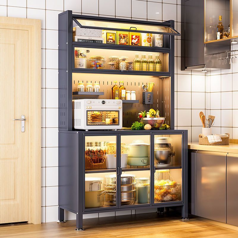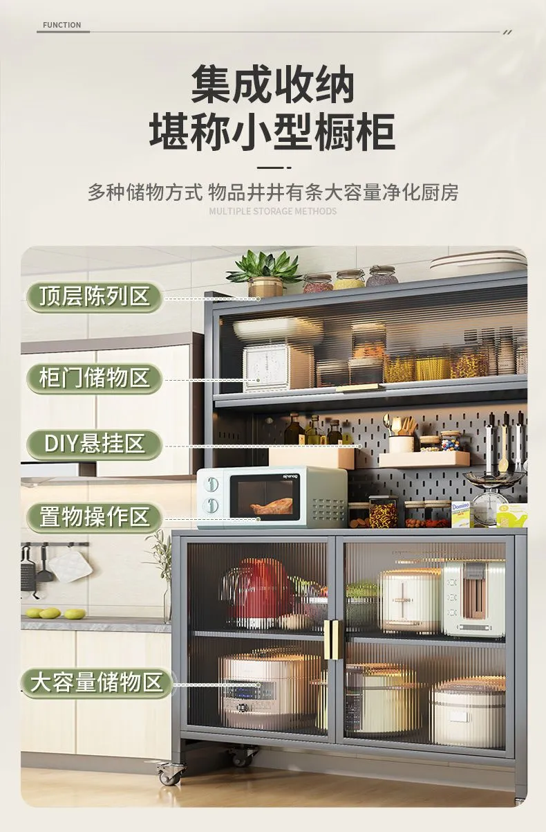 厨房置物架落地收纳架铁艺餐边柜高档碗柜多功能储物柜加厚铁艺柜