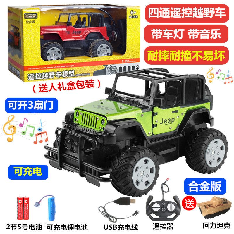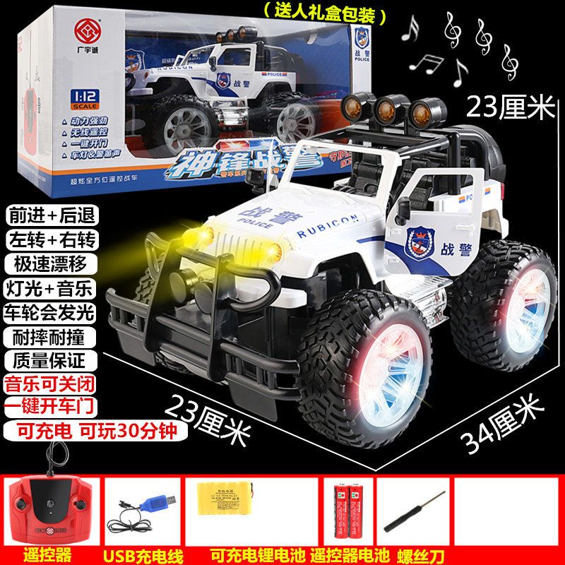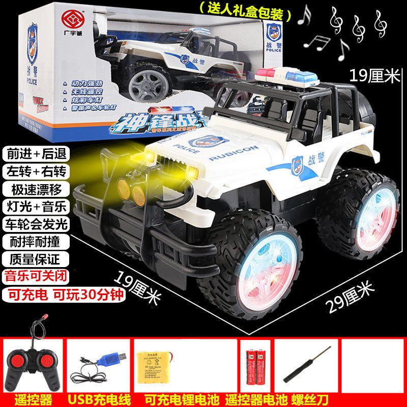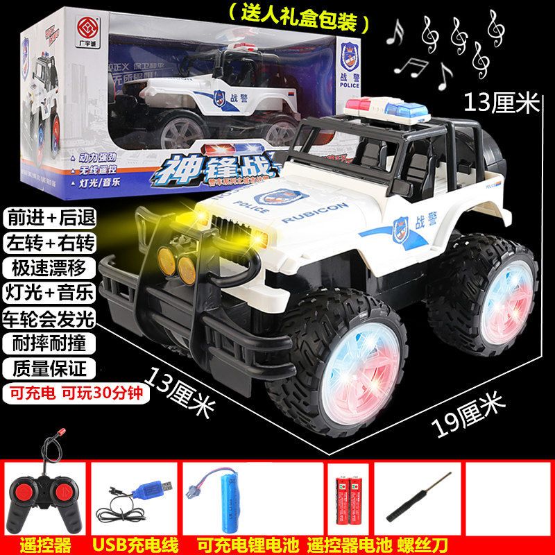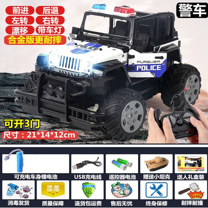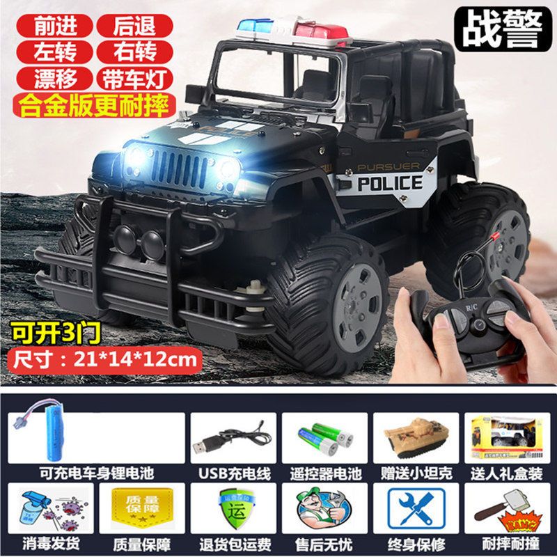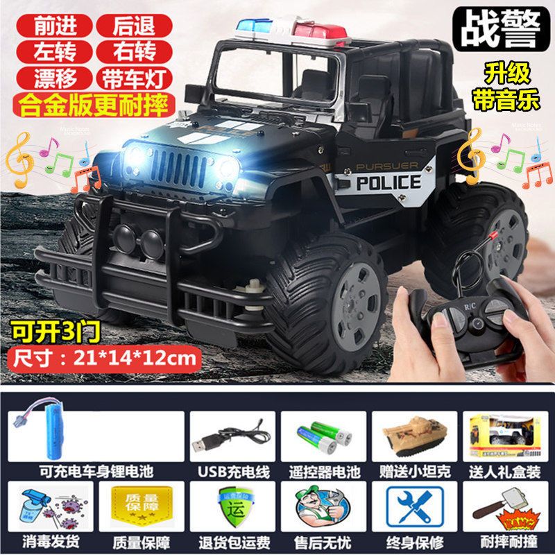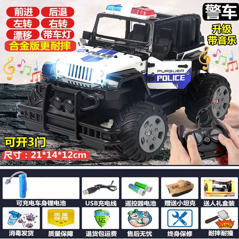 【送坦克】儿童警车合金遥控越野车男孩玩具小汽车吉普车遥控汽车