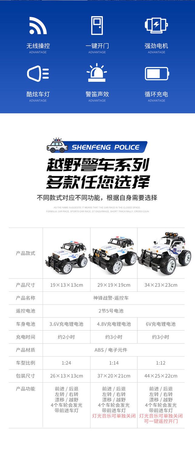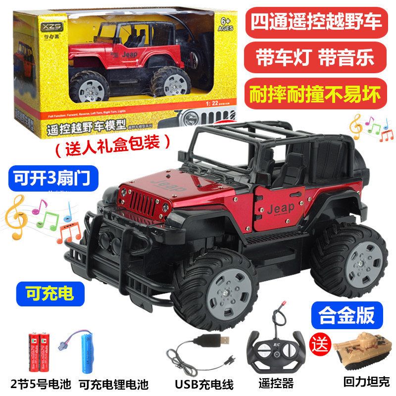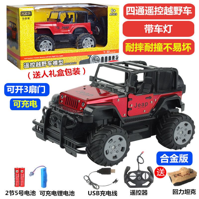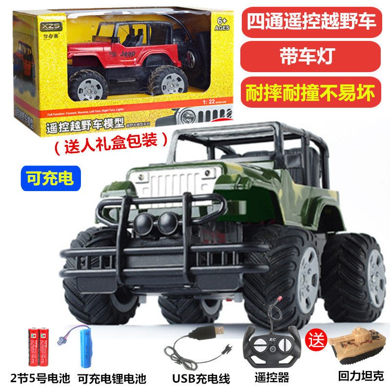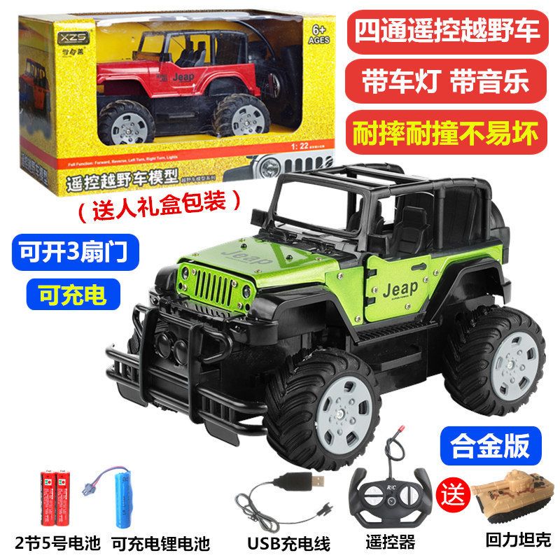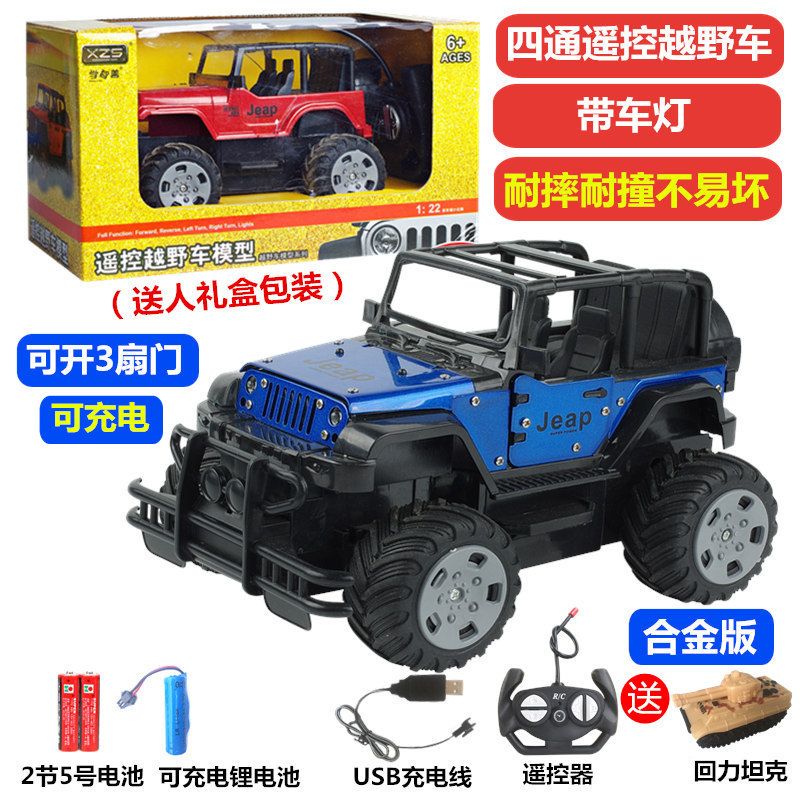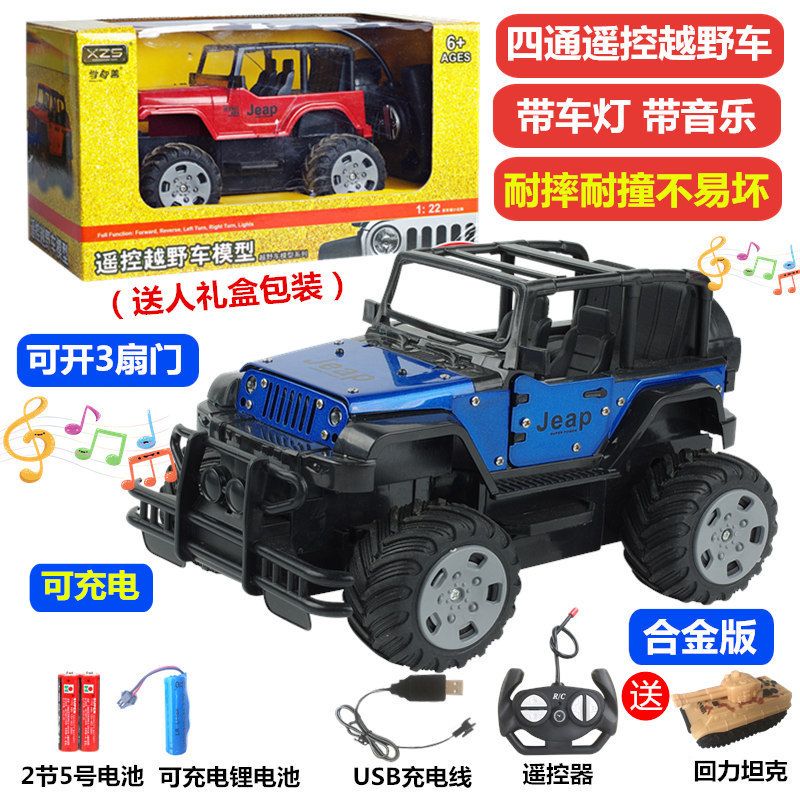 【送坦克】儿童警车合金遥控越野车男孩玩具小汽车吉普车遥控汽车