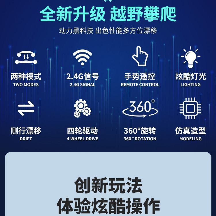 遥控越野车四驱攀爬特技车双面旋转漂移高速赛车儿童男孩玩具汽车