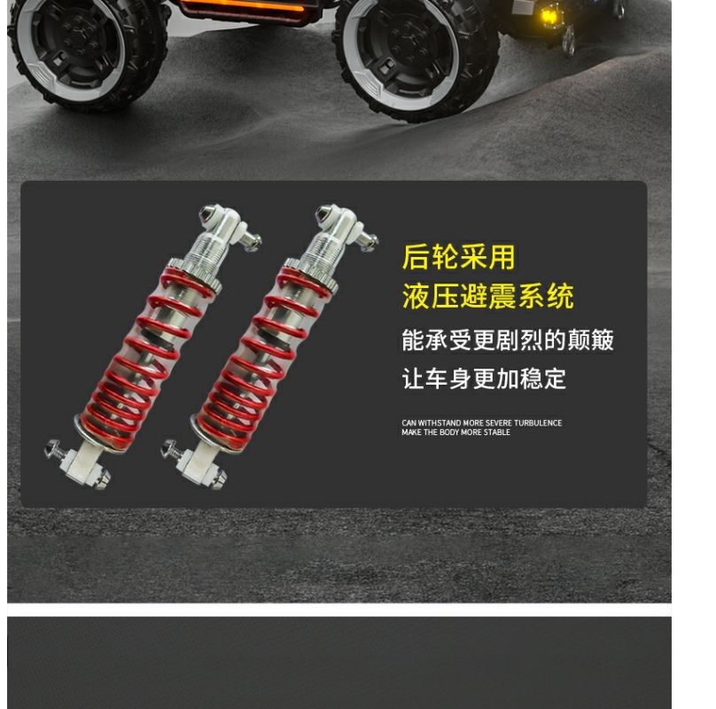 | two 12 v14 amd battery + light-emitting soft tire 550 motor + real shock absorption(两块12v14超威电瓶+发光软轮胎550电机+真实减震) | USD $325.54 | 99999 piece available |