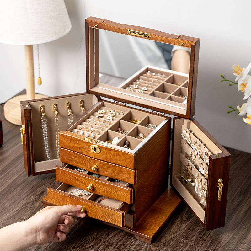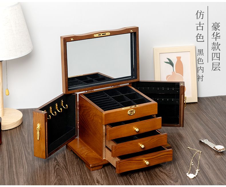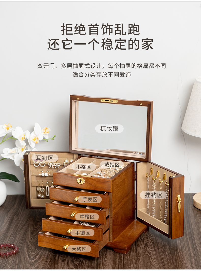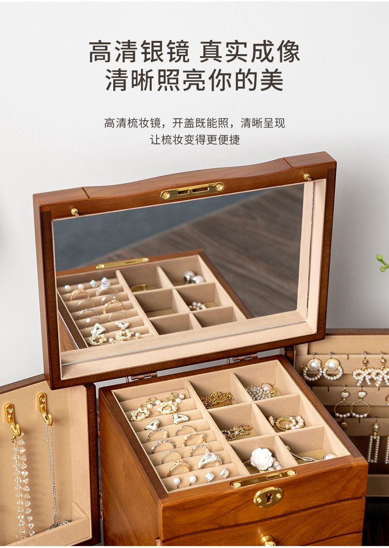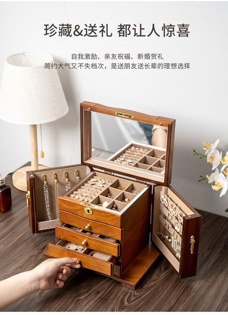 实木首饰盒大容量木质项链耳环戒指收纳饰品盒多层中式结婚礼物