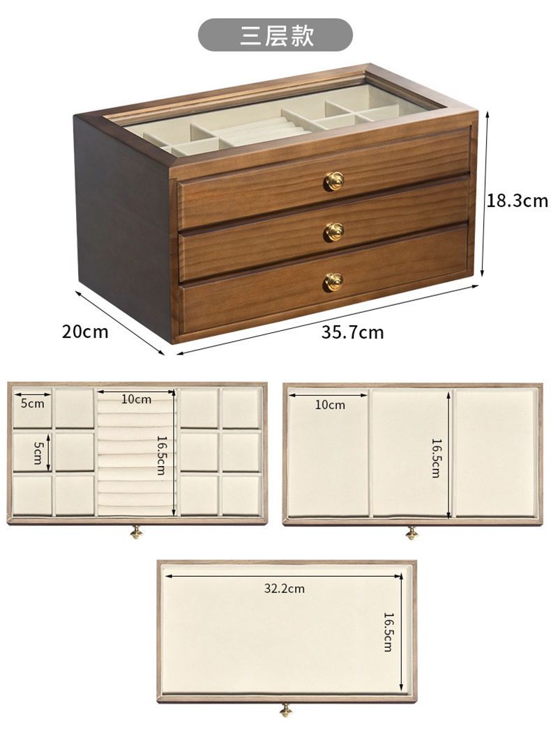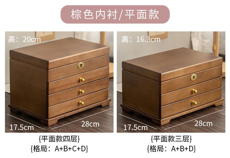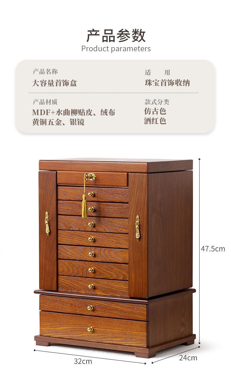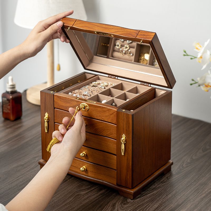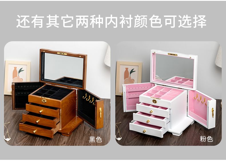 实木首饰盒大容量木质项链耳环戒指收纳饰品盒多层中式结婚礼物