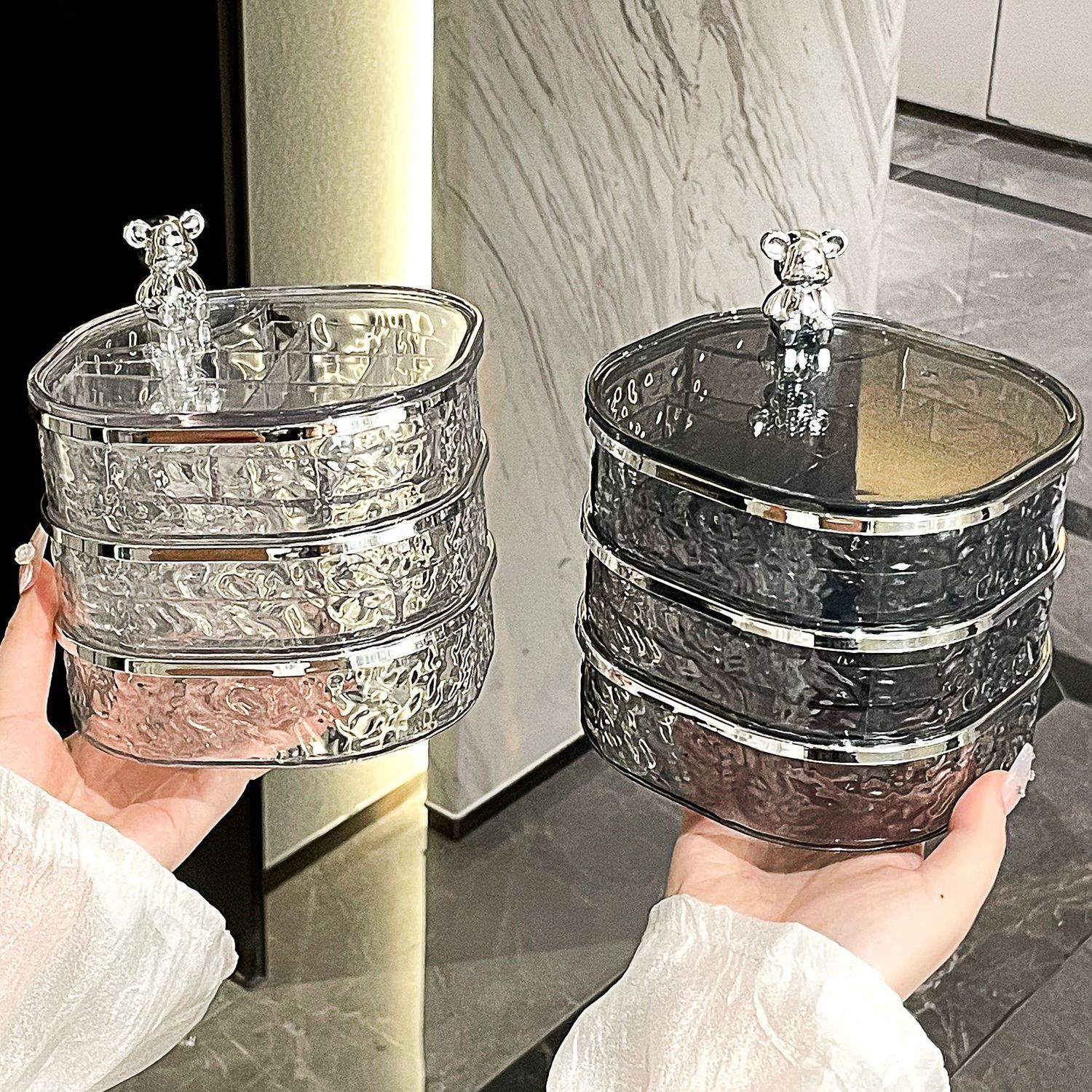 | rotating three layers jewelry box [water ripple transparent silver]](旋转三层饰品盒【水波纹透明银】) | USD $6.96 | 99999 piece available |