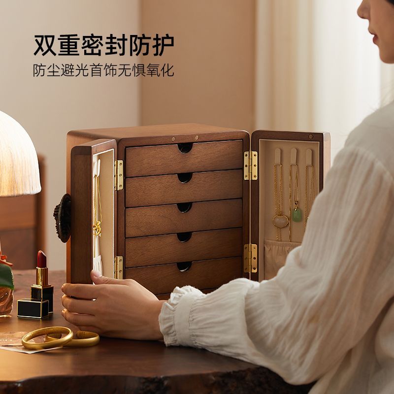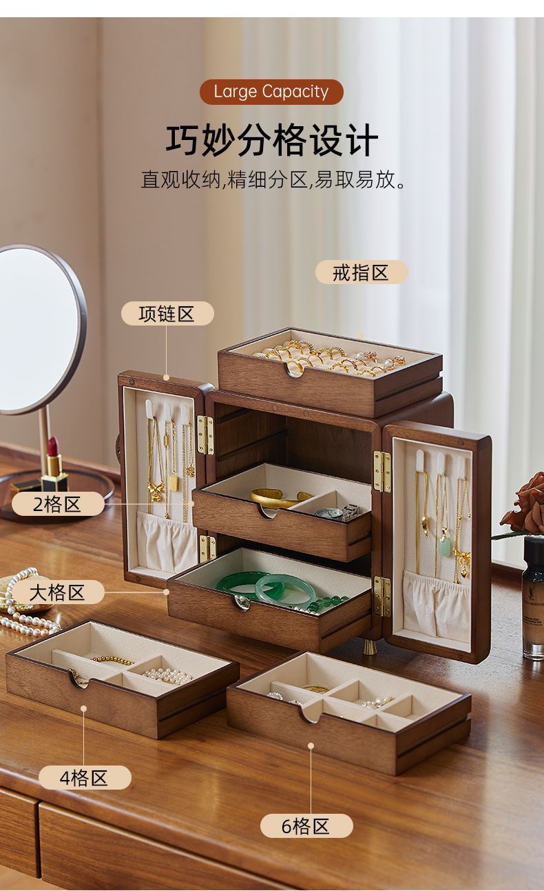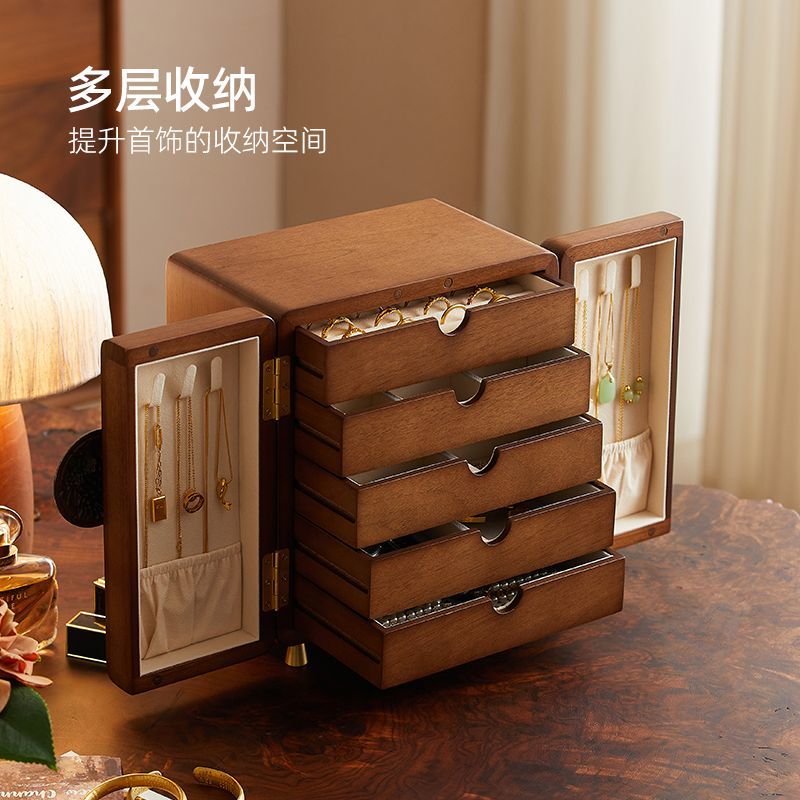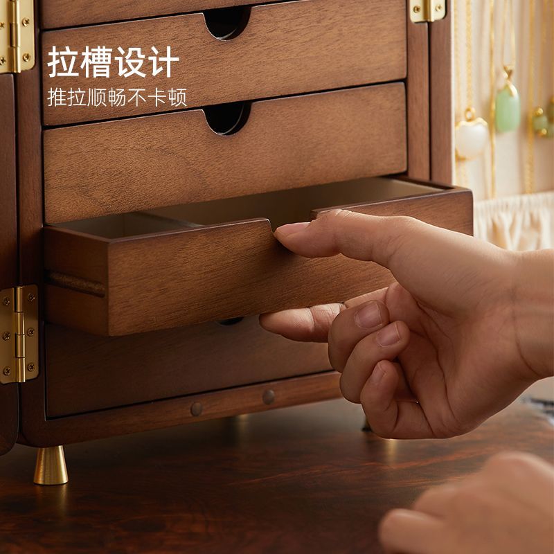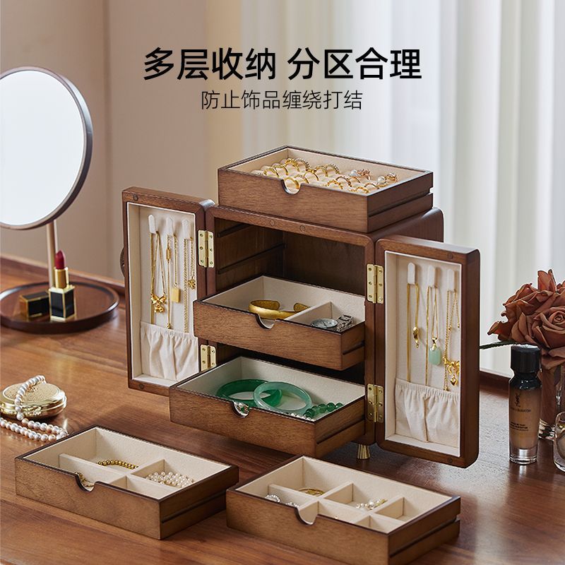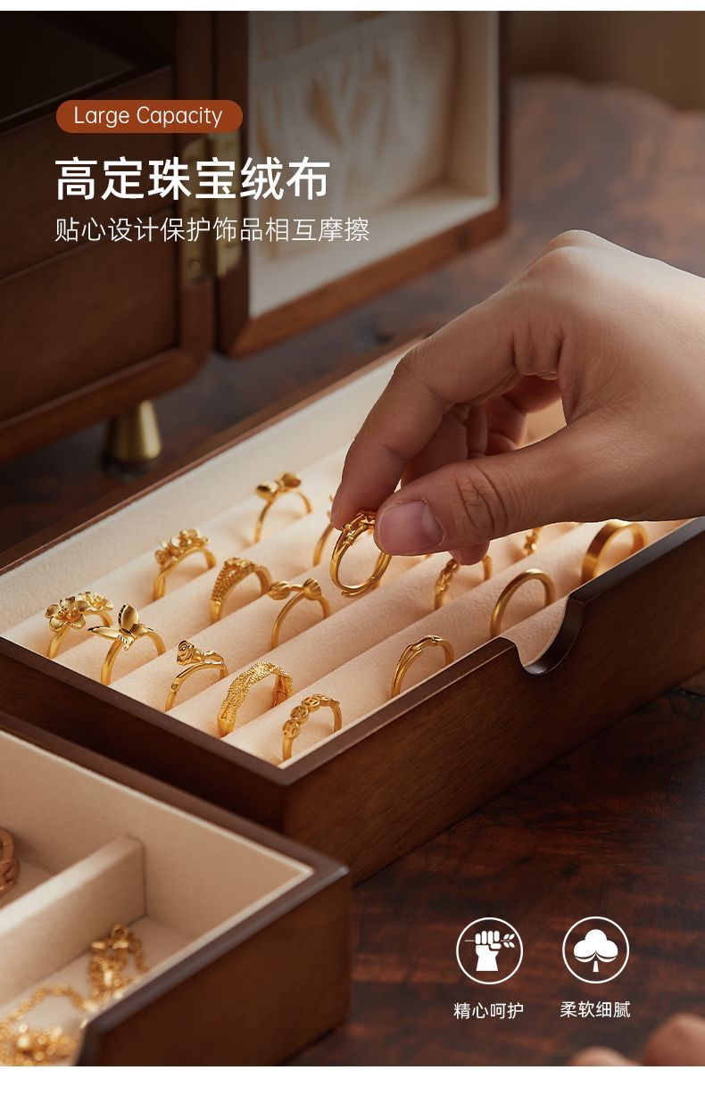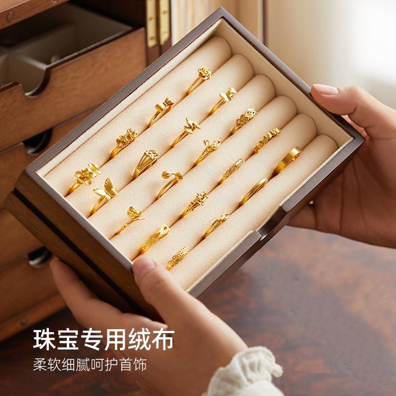 高档实木首饰盒收纳盒精致大容量黄金项链戒指耳环耳钉手链饰品盒
