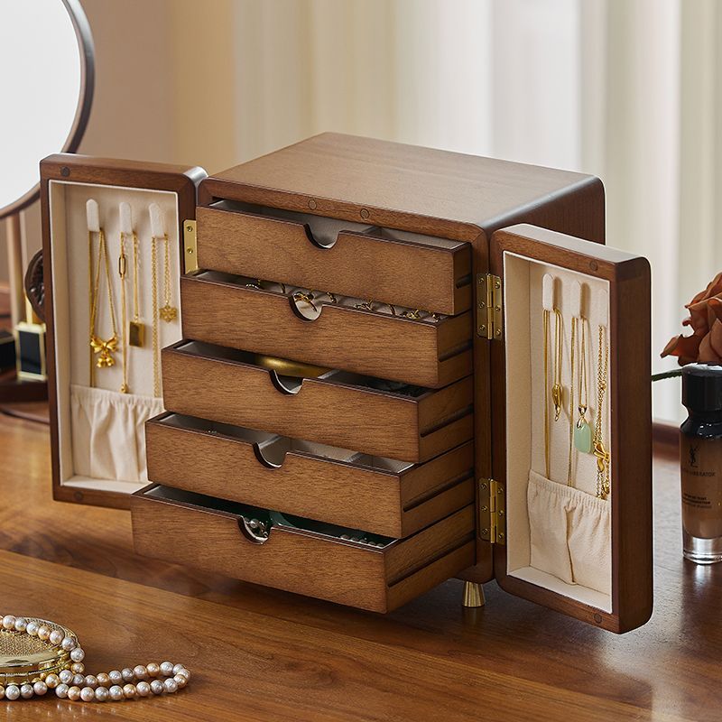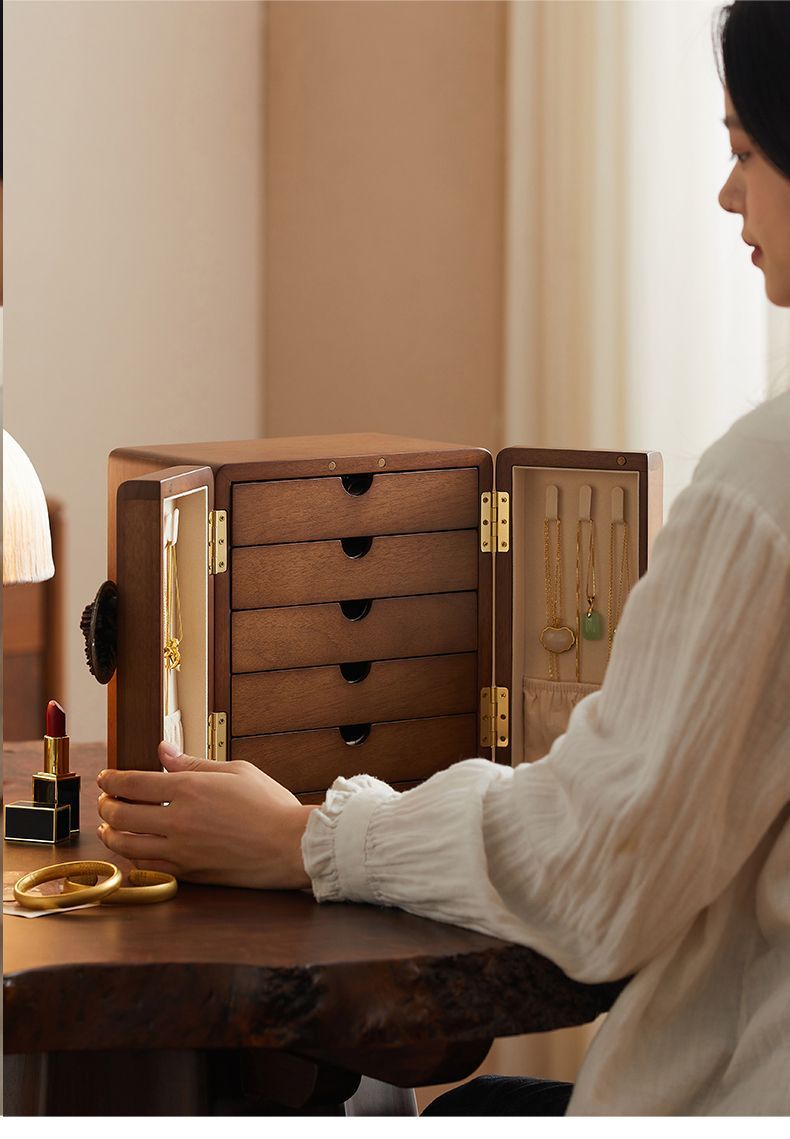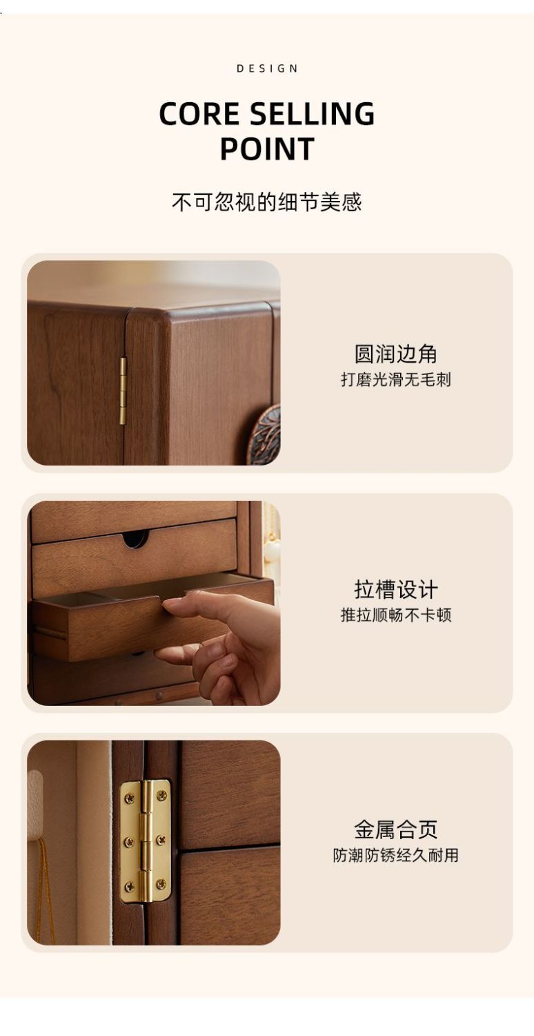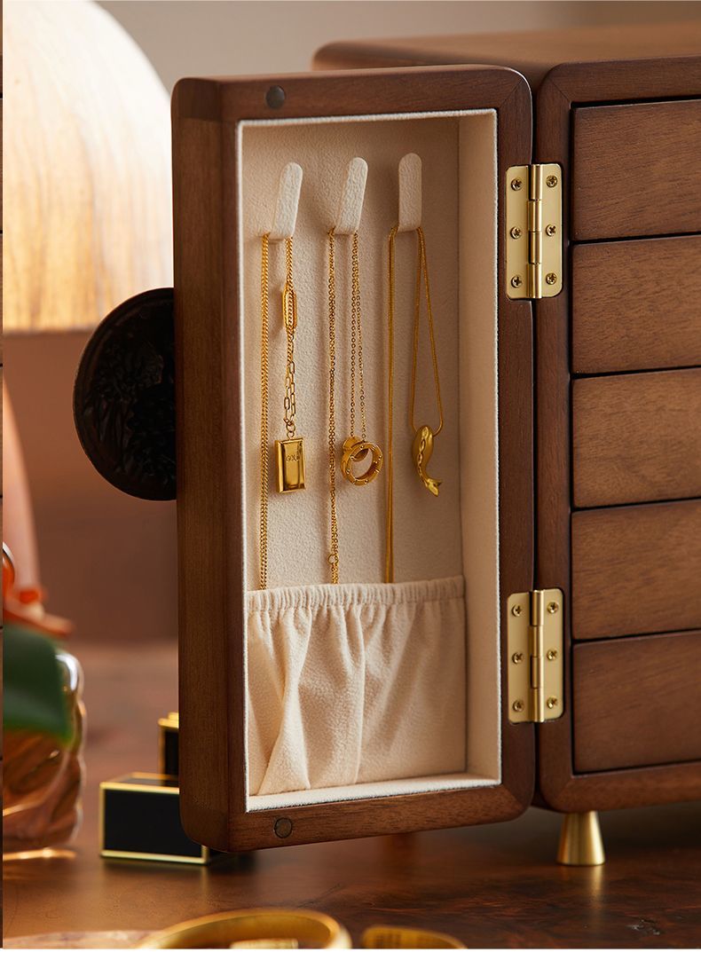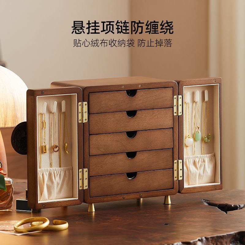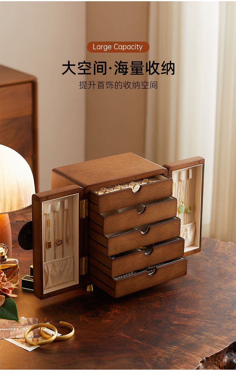高档实木首饰盒收纳盒精致大容量黄金项链戒指耳环耳钉手链饰品盒