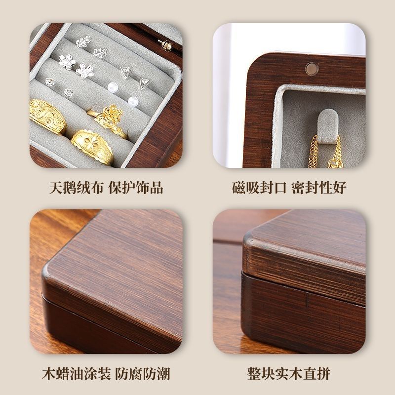 黑胡桃实木首饰盒手镯戒指五金镯便携珠宝高档收纳盒耳饰项链饰品