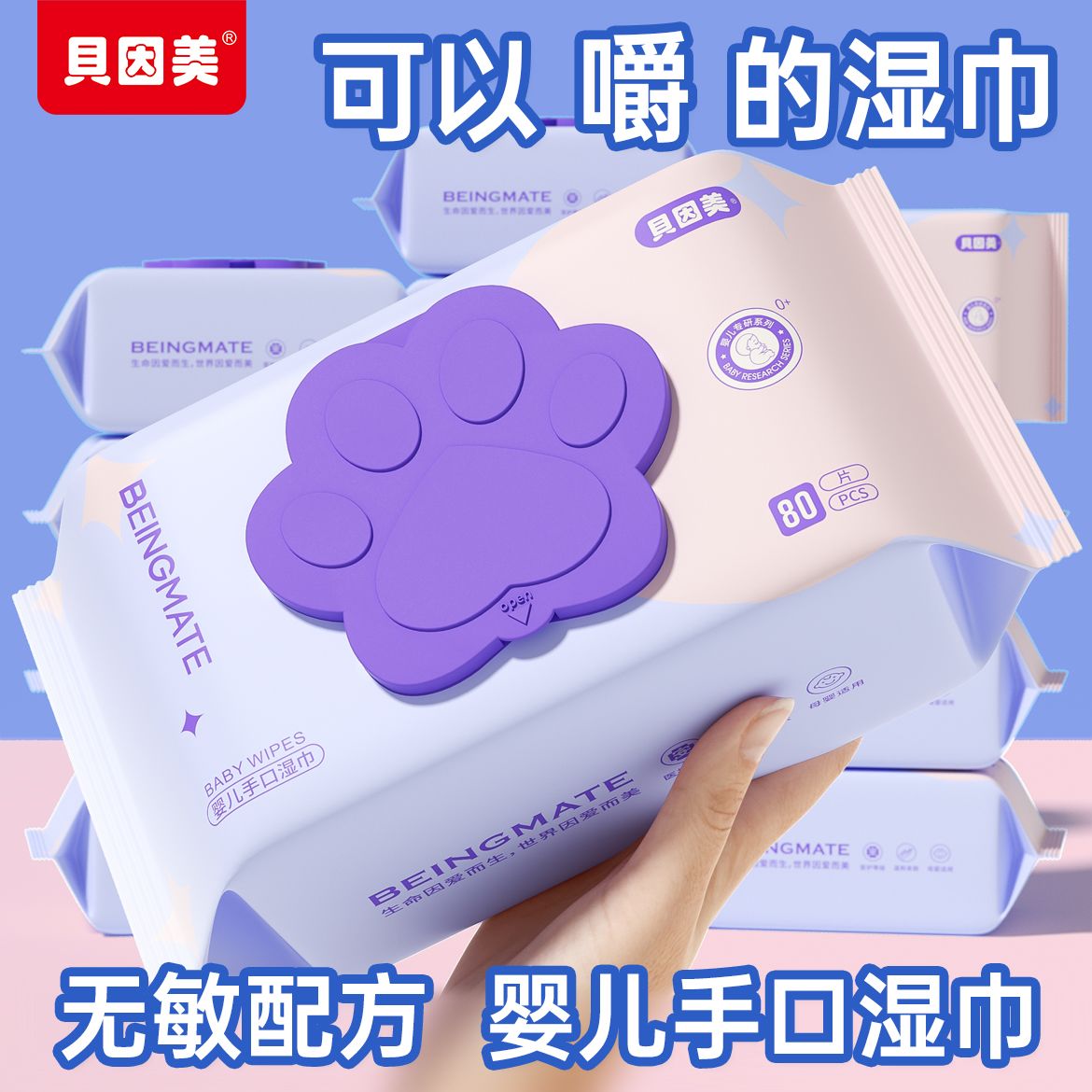 贝因美湿巾纸80抽大包母婴幼儿童新生婴儿手口专用湿巾家用擦脸