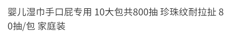 婴儿湿巾手口屁10大包共800抽珍珠纹耐拉扯宝宝湿巾新生婴儿专用
