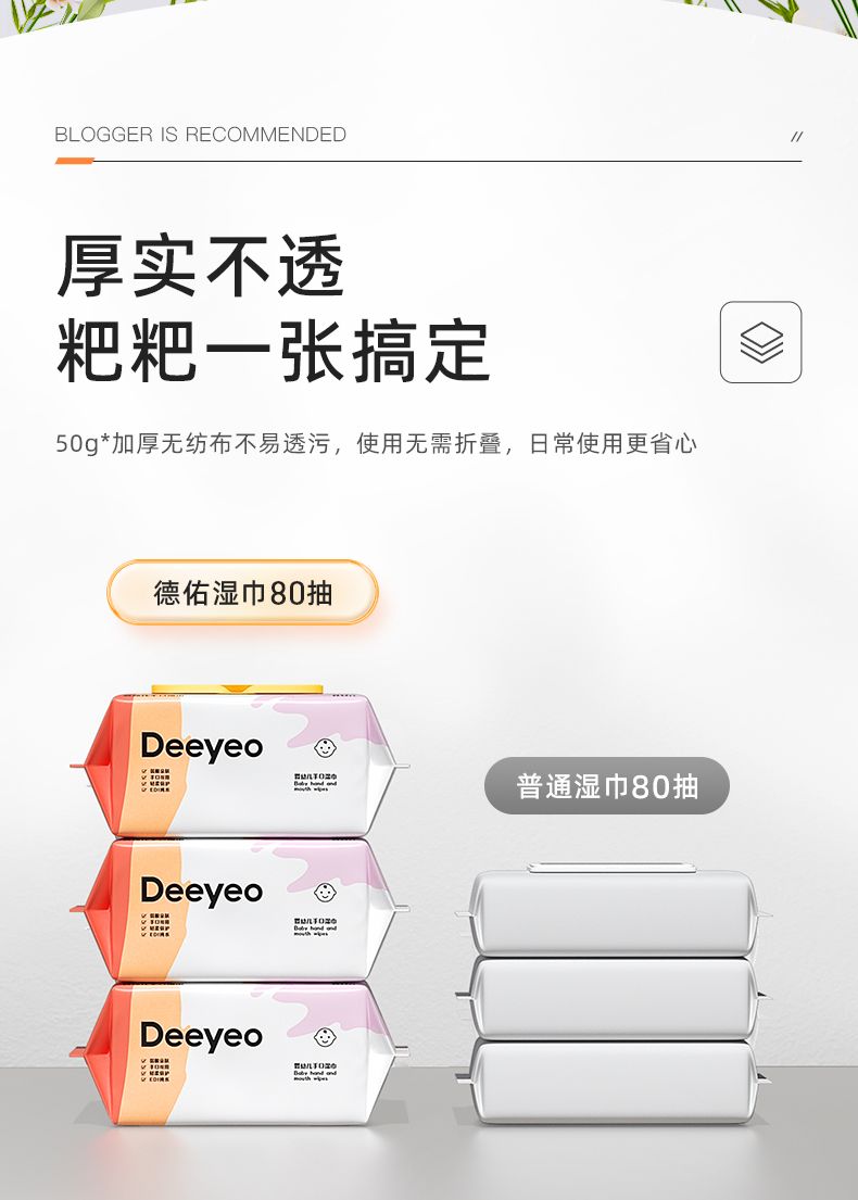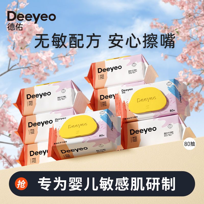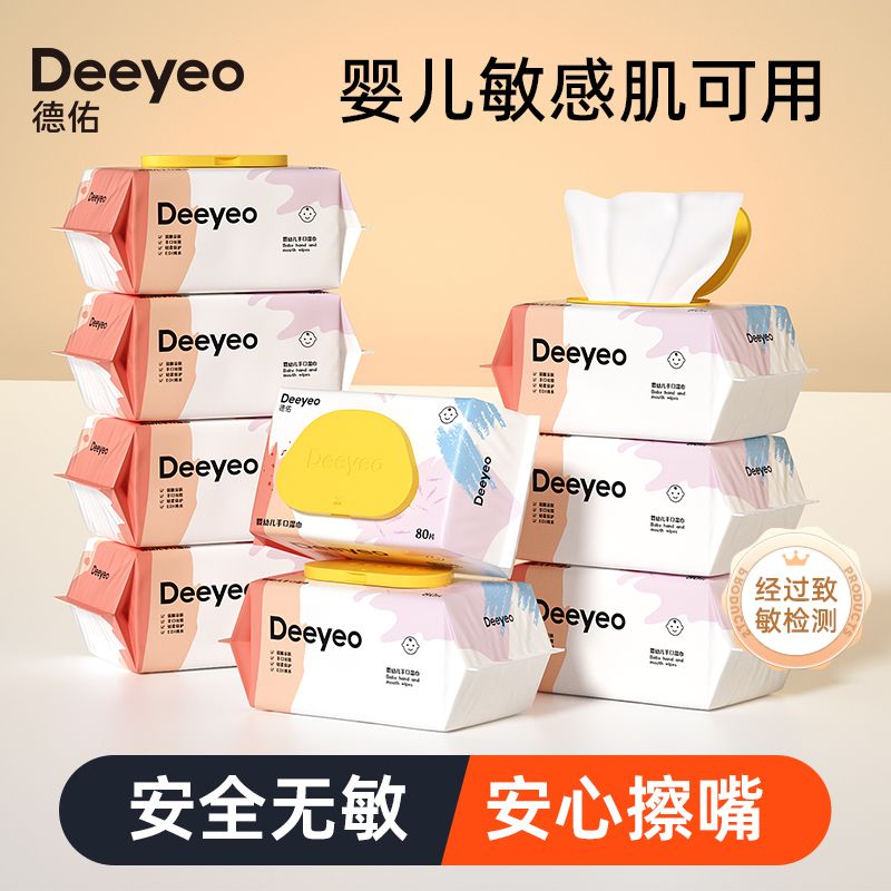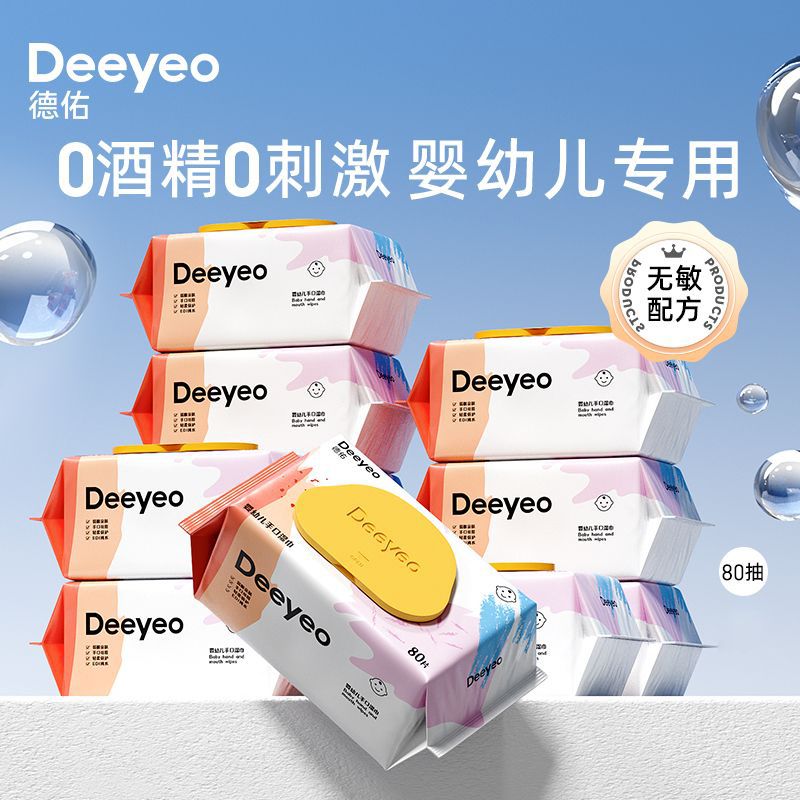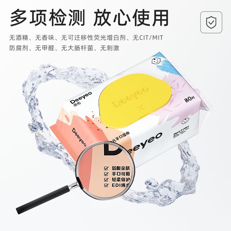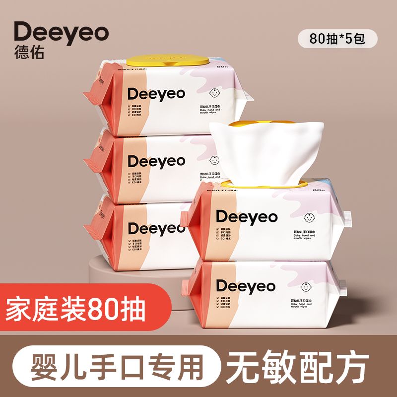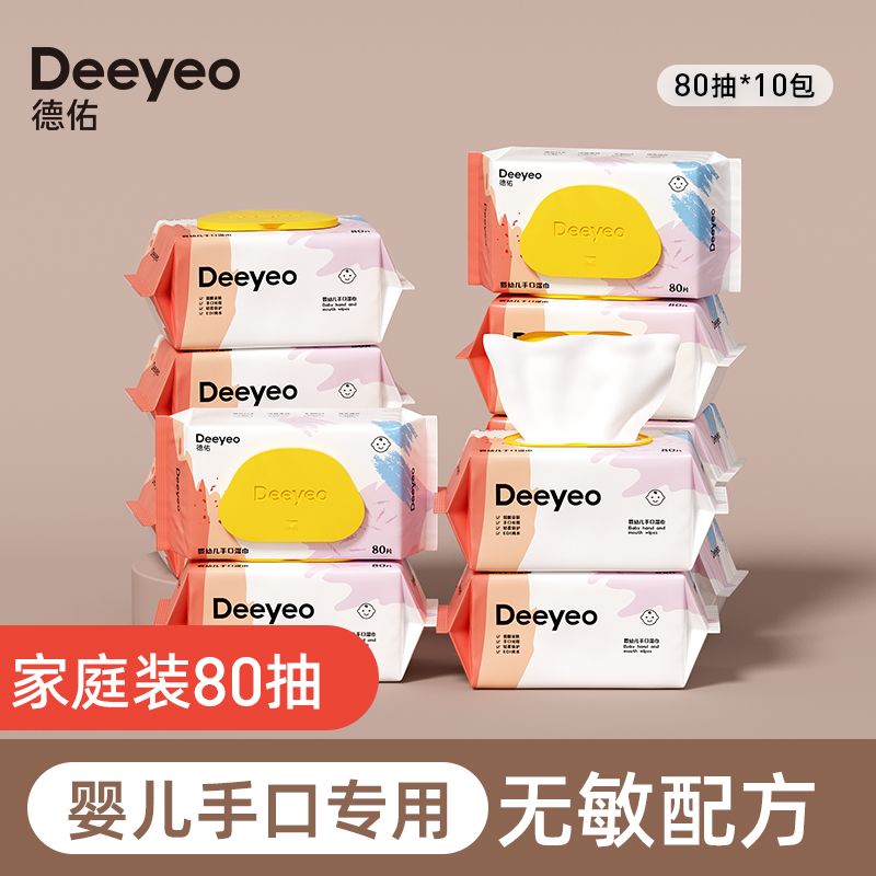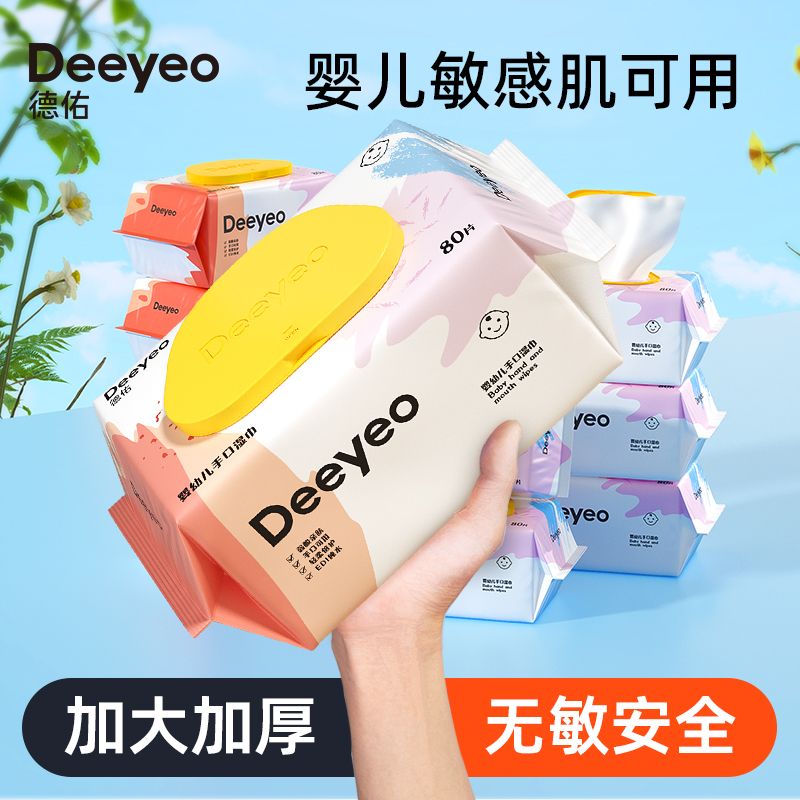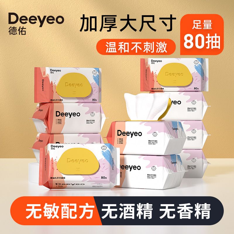 德佑湿巾手口婴儿专用加厚80抽湿巾大包家庭装15包家用清洁湿巾纸