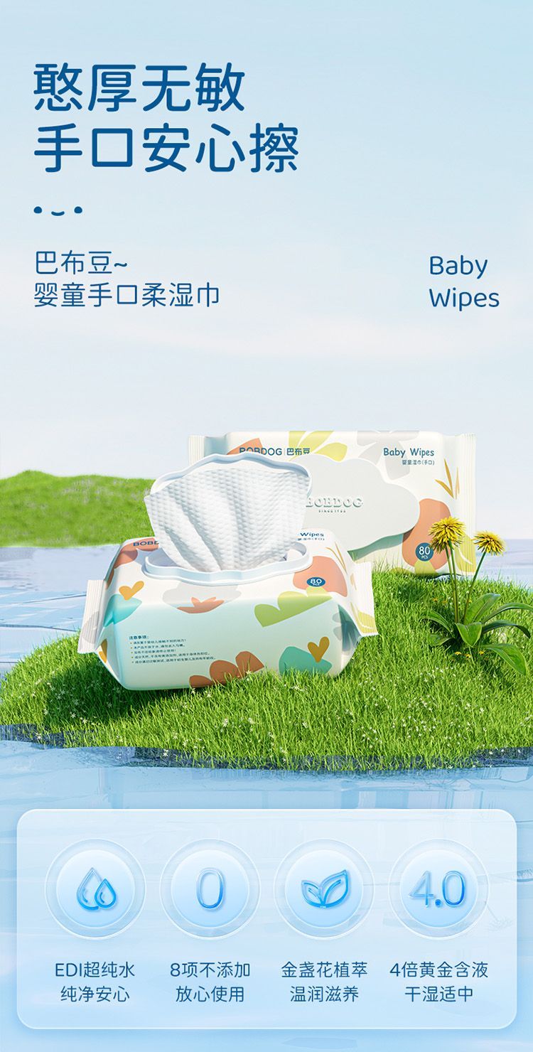 【巴布豆】新生婴儿湿巾一次性洗脸巾无酒精孕婴手口屁专用湿纸巾