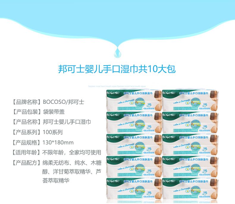 邦可士婴儿手口湿巾带盖10大包 新生儿宝宝屁屁儿童专用湿纸巾