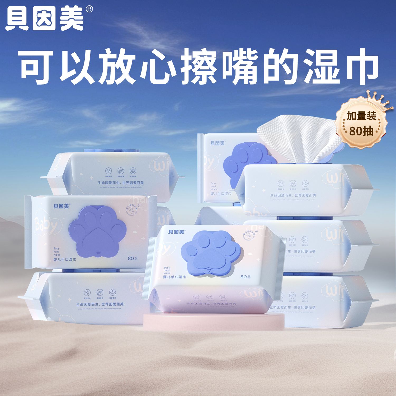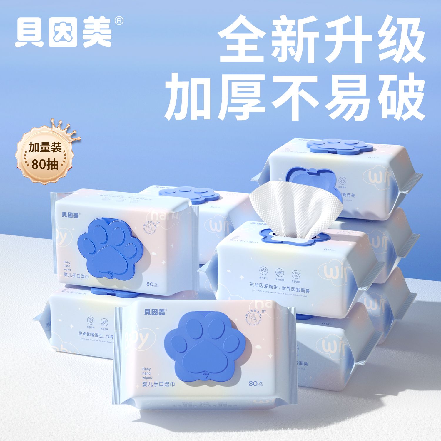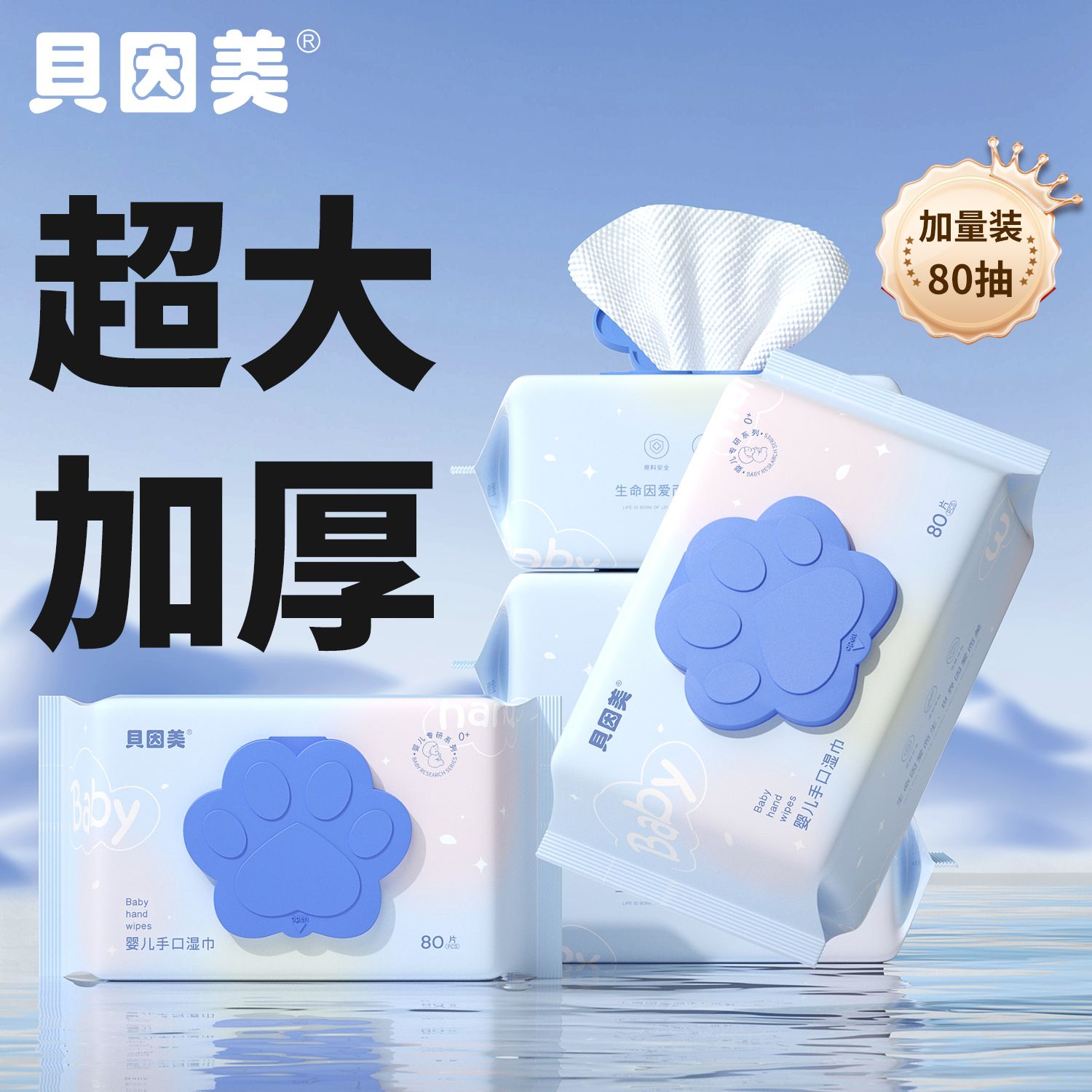 贝因美湿巾新生儿宝宝手口专用湿纸巾婴儿专用学生80抽大包湿巾纸