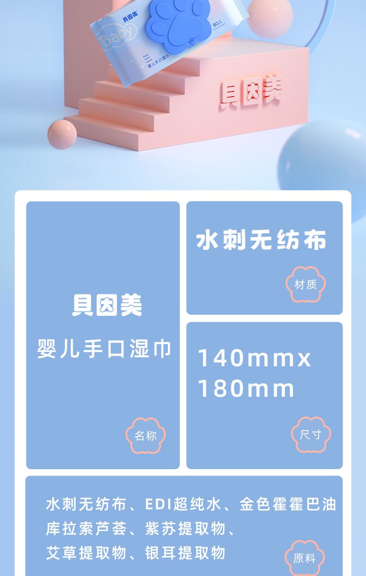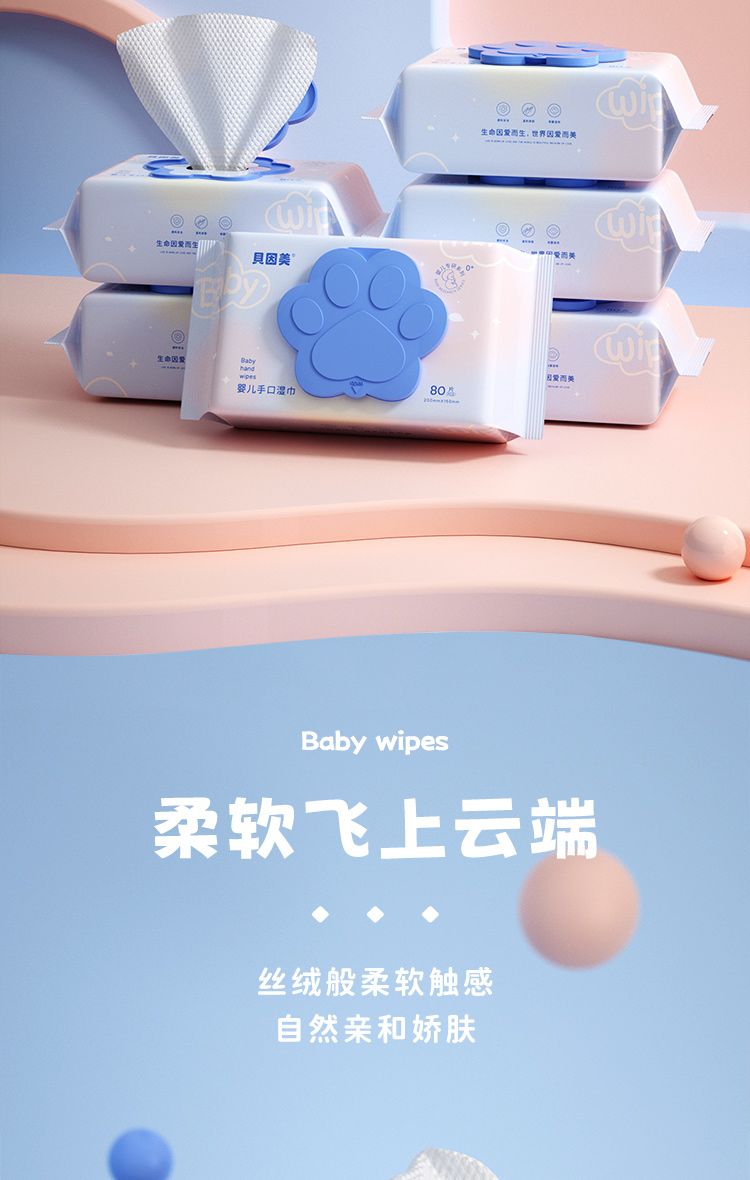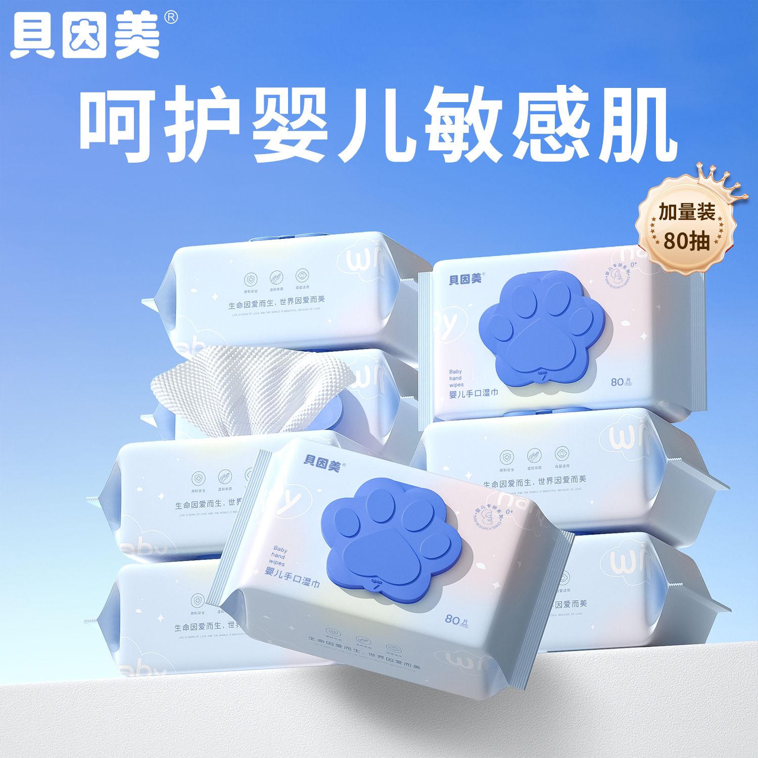 贝因美湿巾新生儿宝宝手口专用湿纸巾婴儿专用学生80抽大包湿巾纸