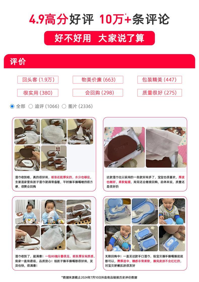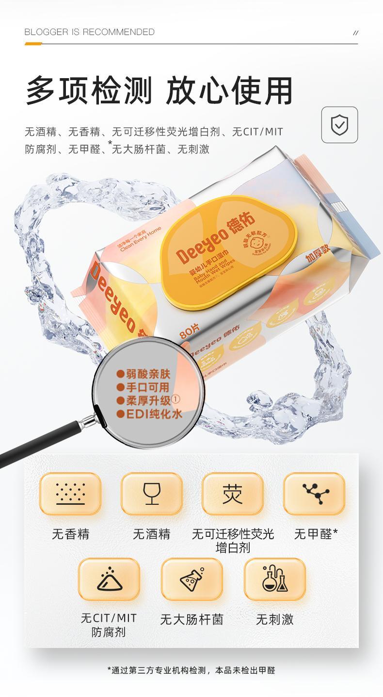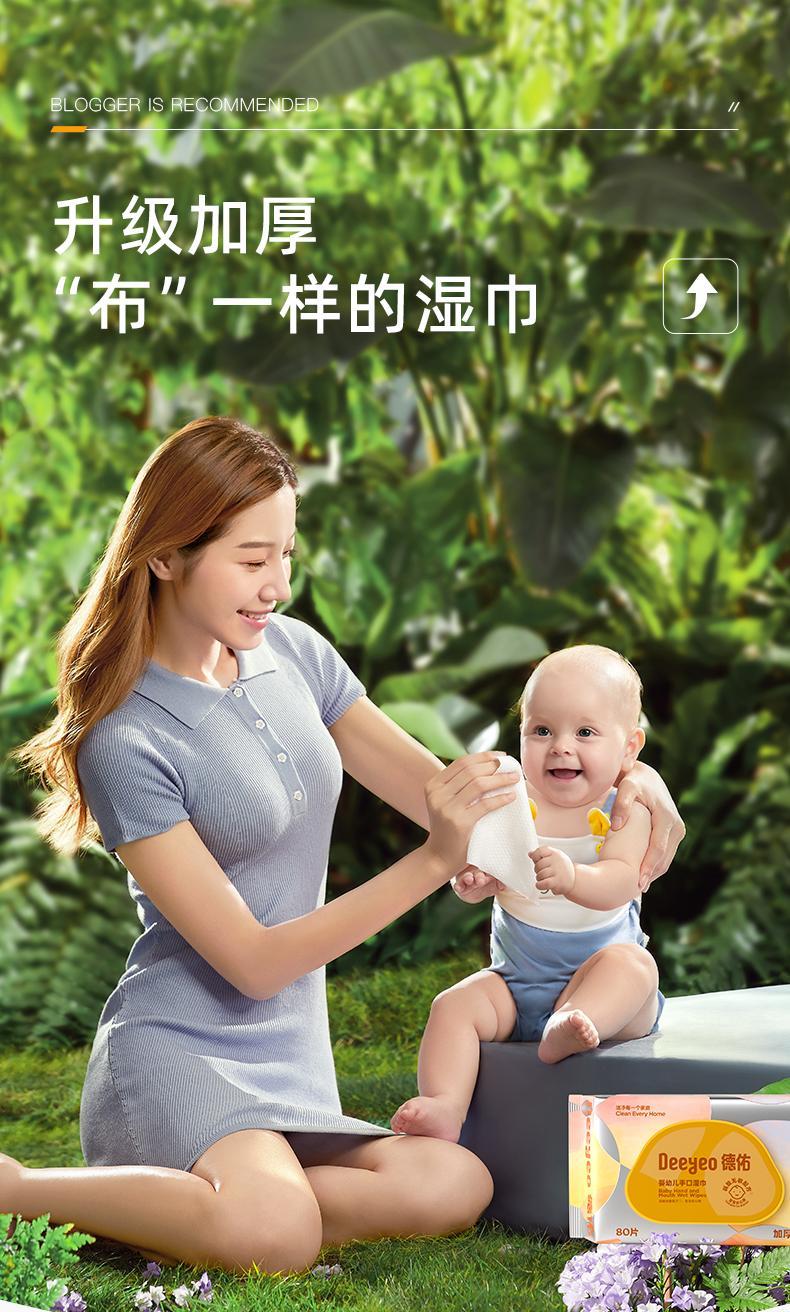 德佑婴儿湿巾手口专用屁宝宝新生幼儿童湿纸巾家用实惠装大包80抽