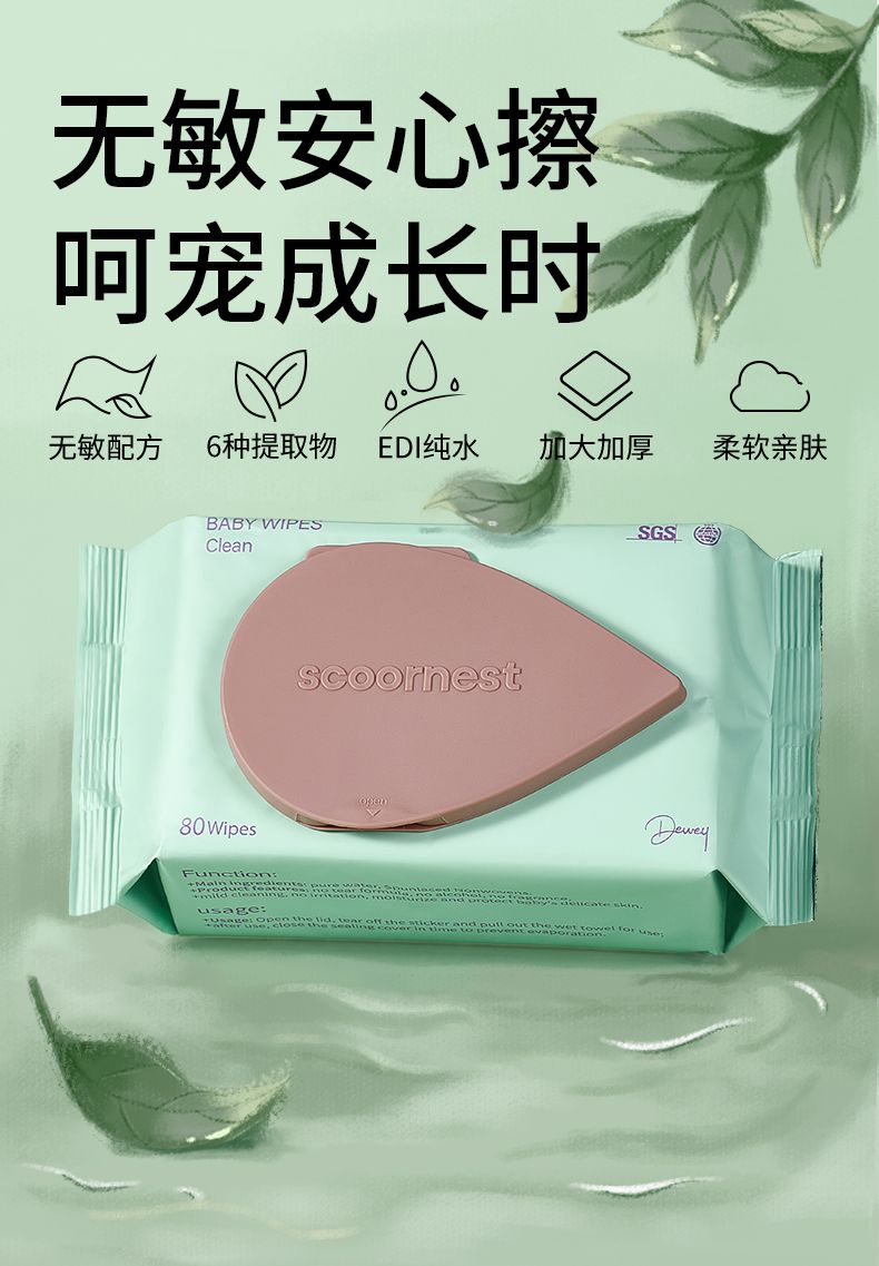科巢婴儿湿巾纸巾新生手口屁专用宝宝幼儿童家庭实惠80抽5大包装