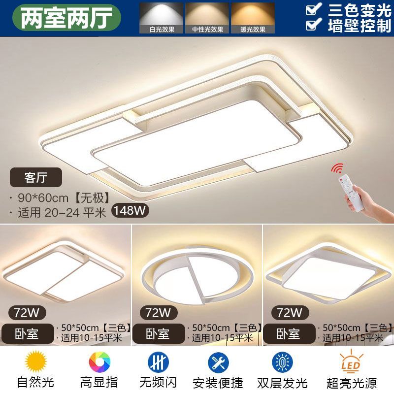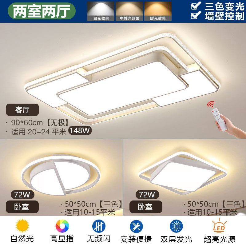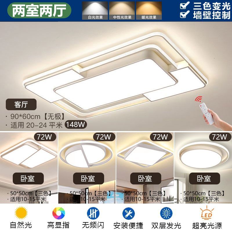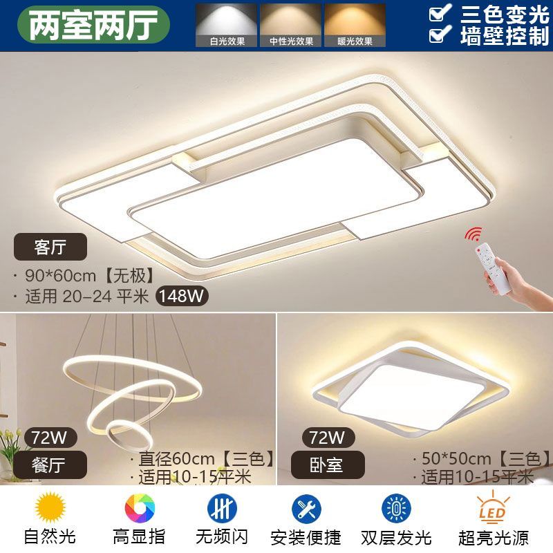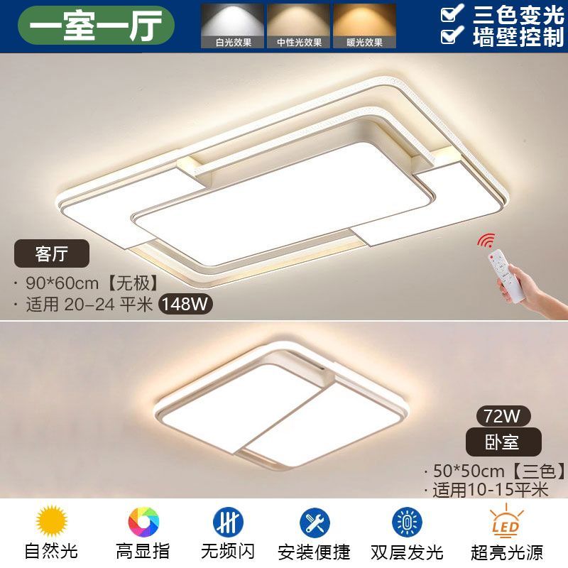 2024新款简约网红客厅灯现代长方形吸顶灯卧室灯家用全屋灯具套餐