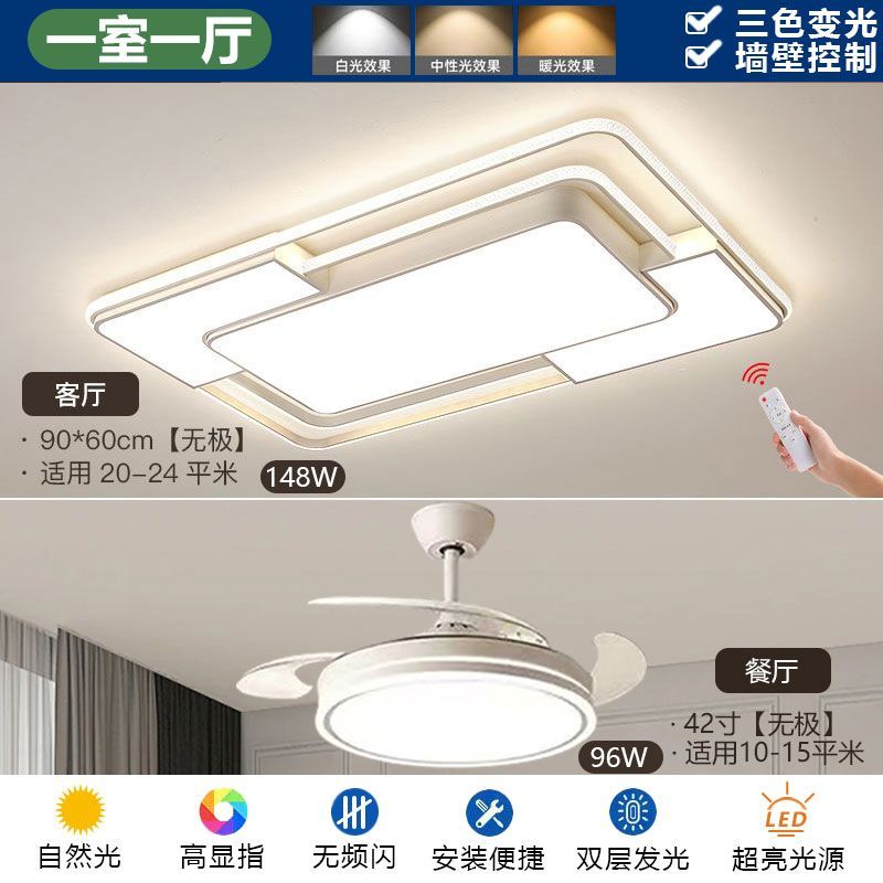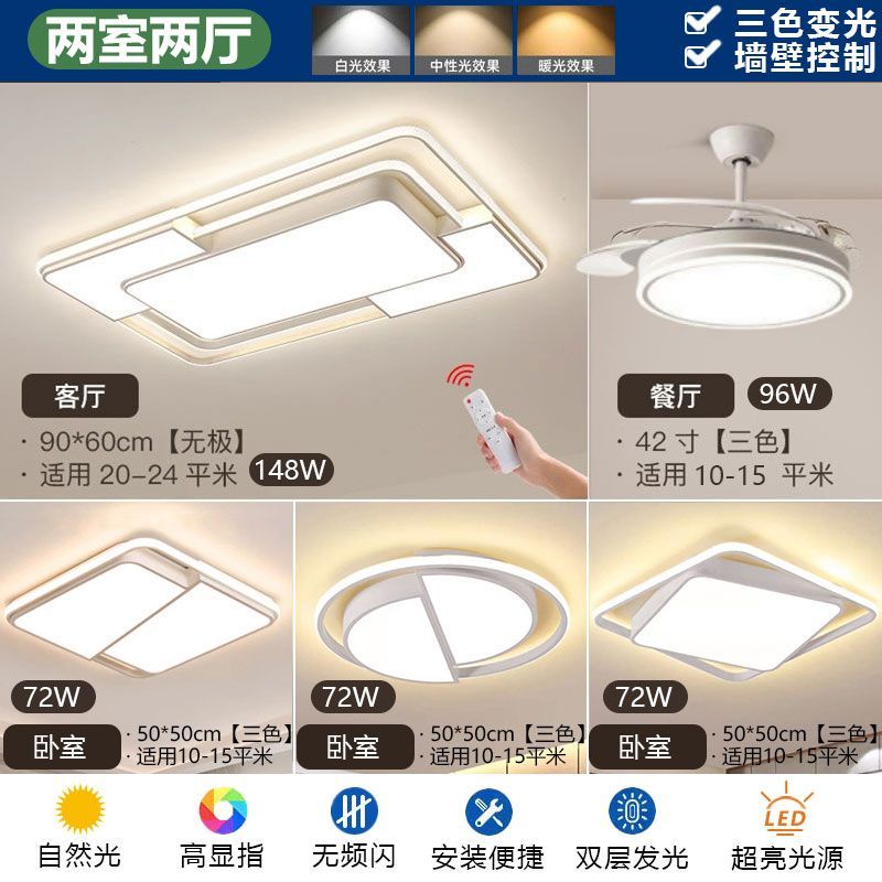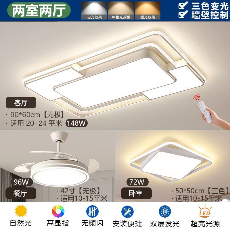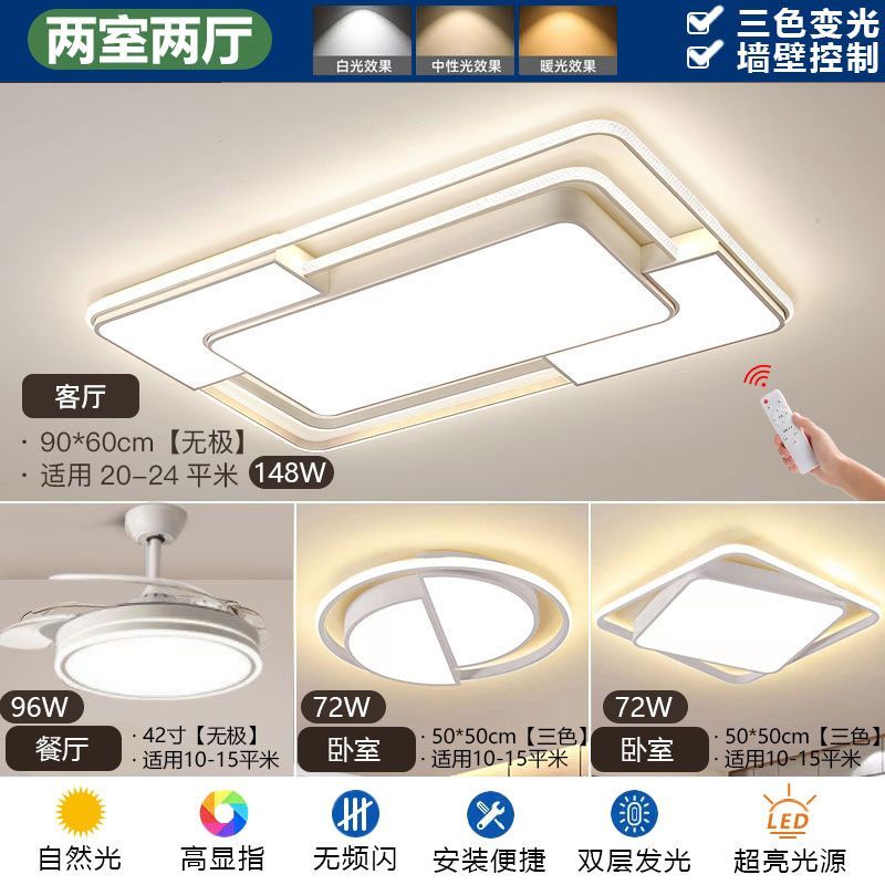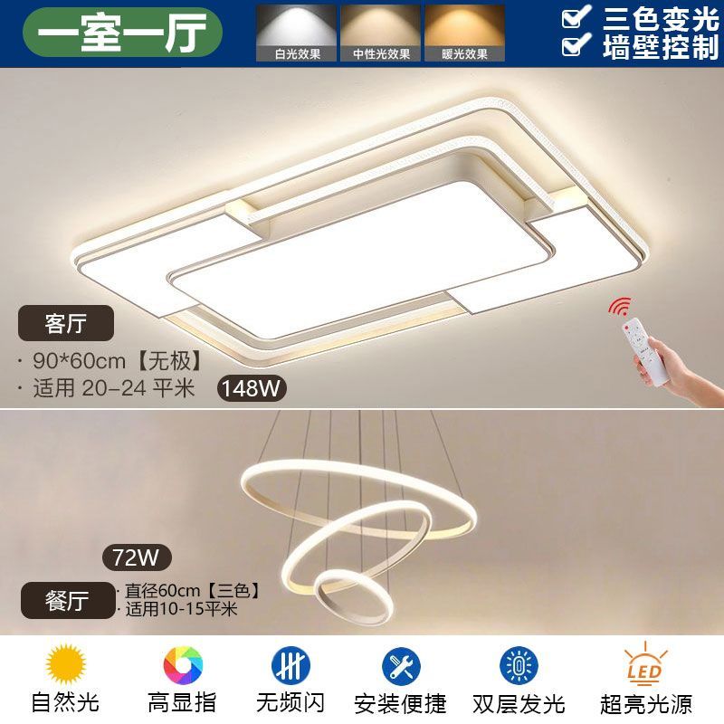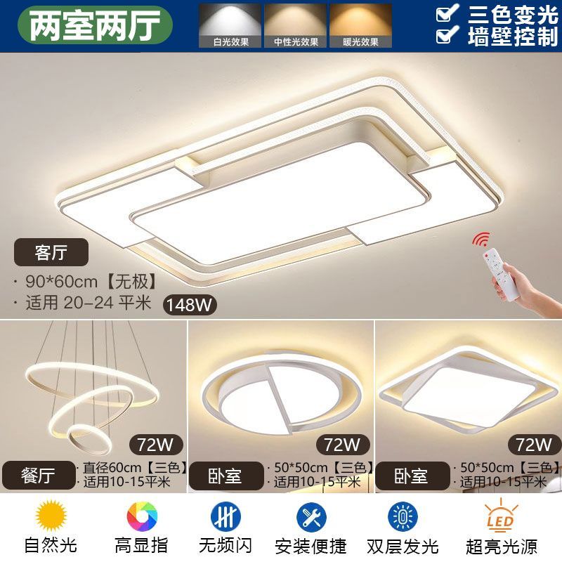 2024新款简约网红客厅灯现代长方形吸顶灯卧室灯家用全屋灯具套餐