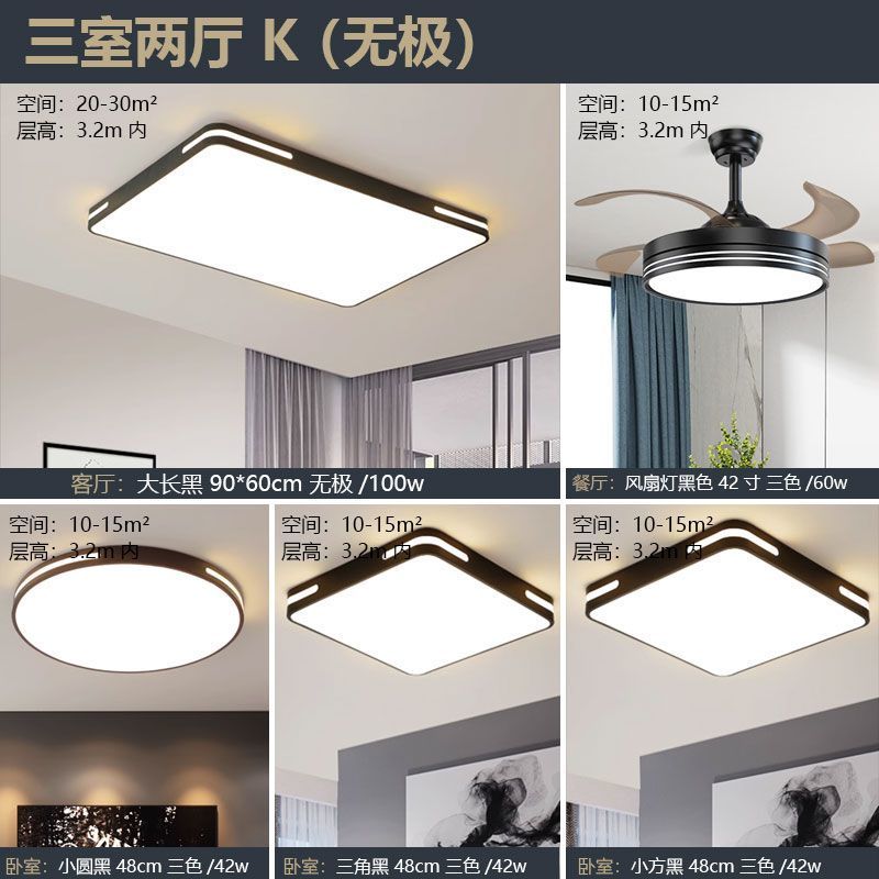 全屋灯具套餐组合三室两厅LED吸顶灯客厅灯房间卧室灯长方形灯饰