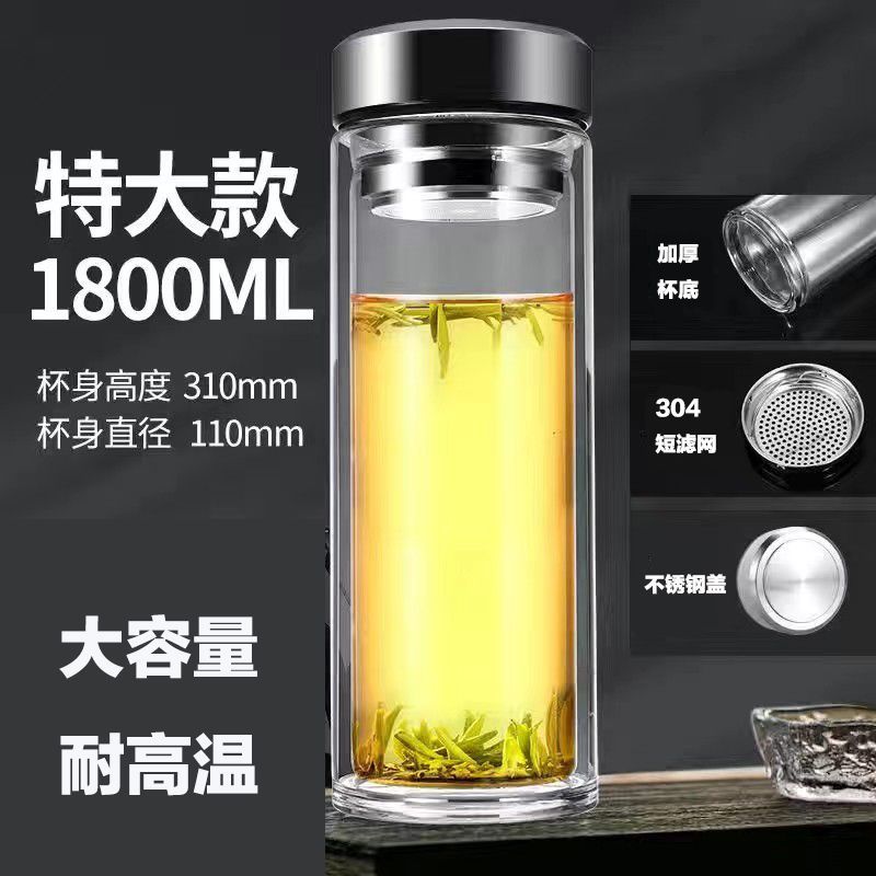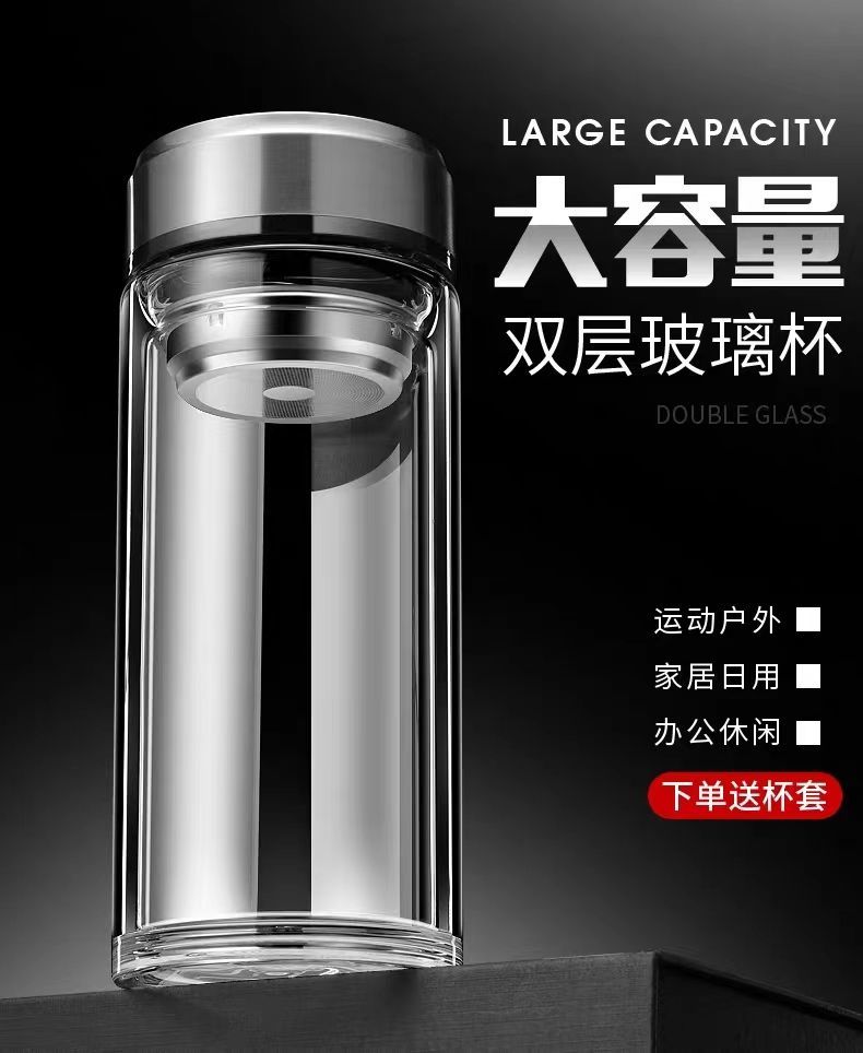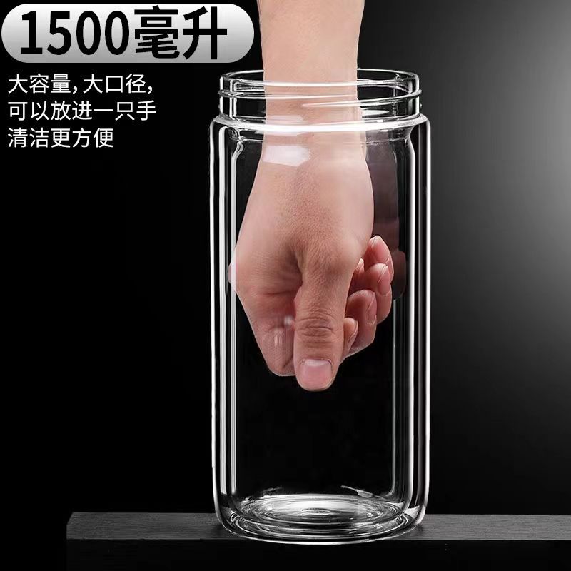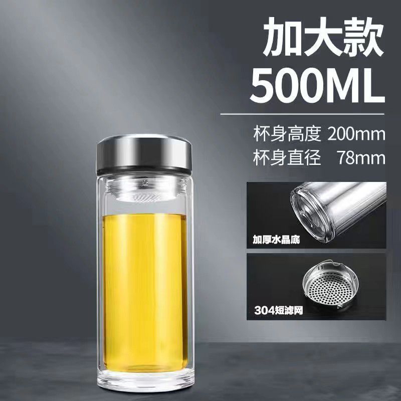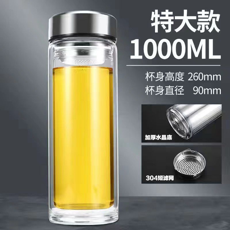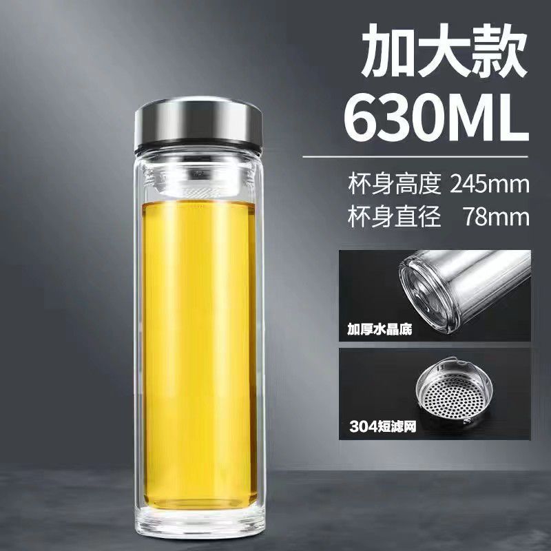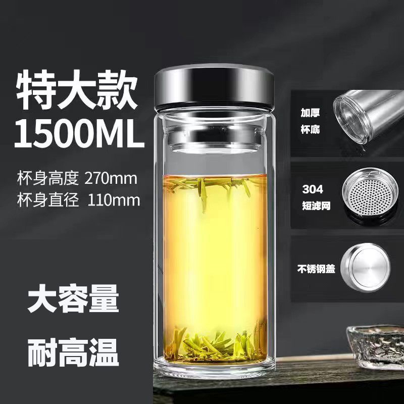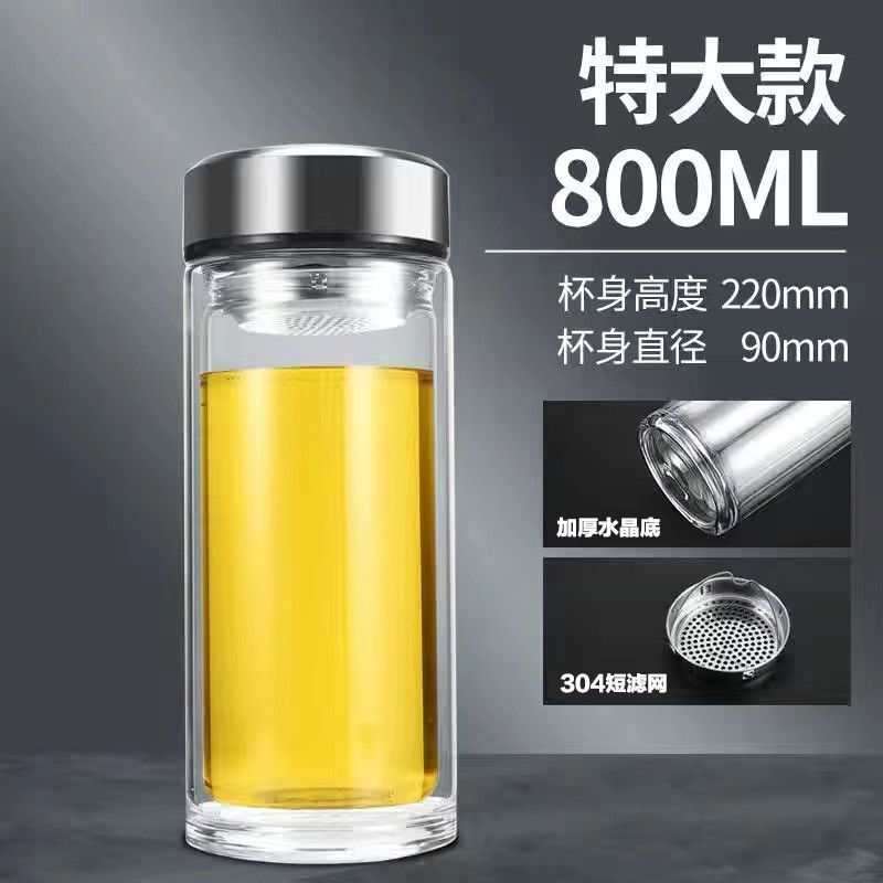 双层玻璃茶杯特大号玻璃杯大容量双层玻璃杯茶水分离男士高硼硅