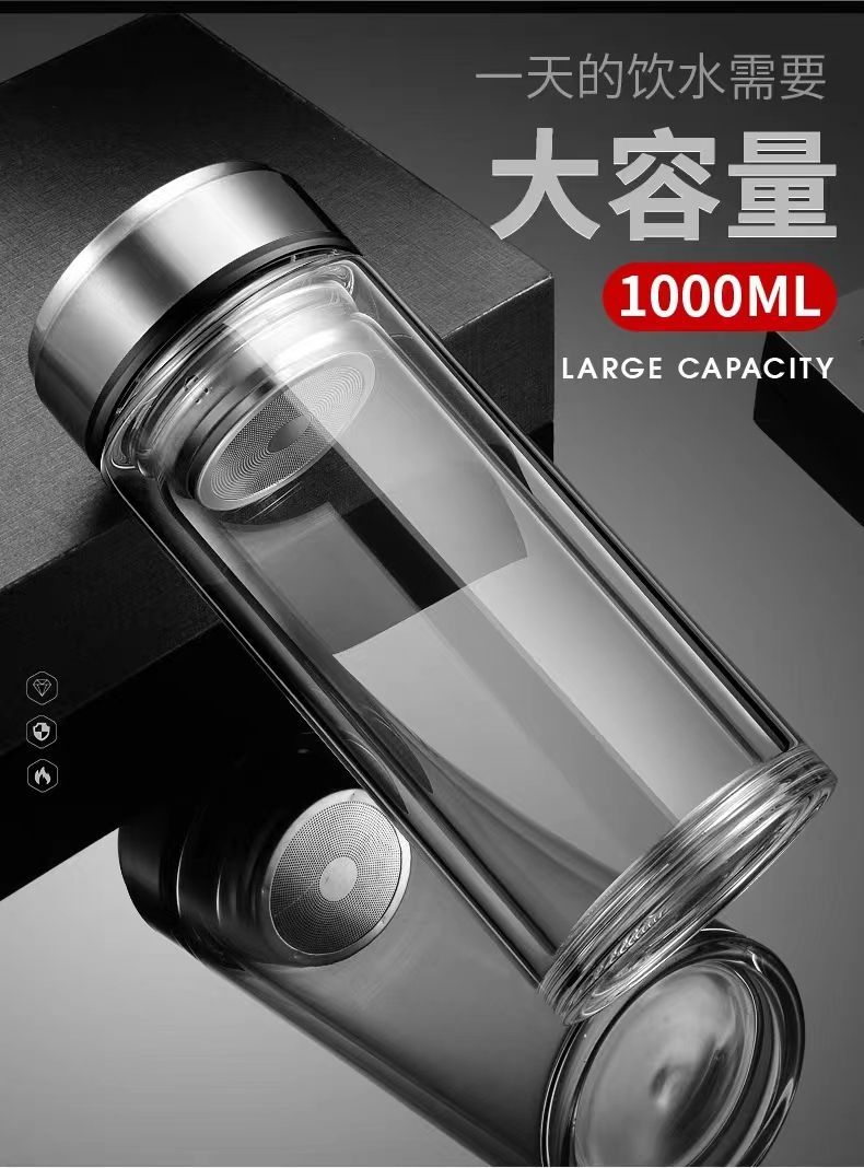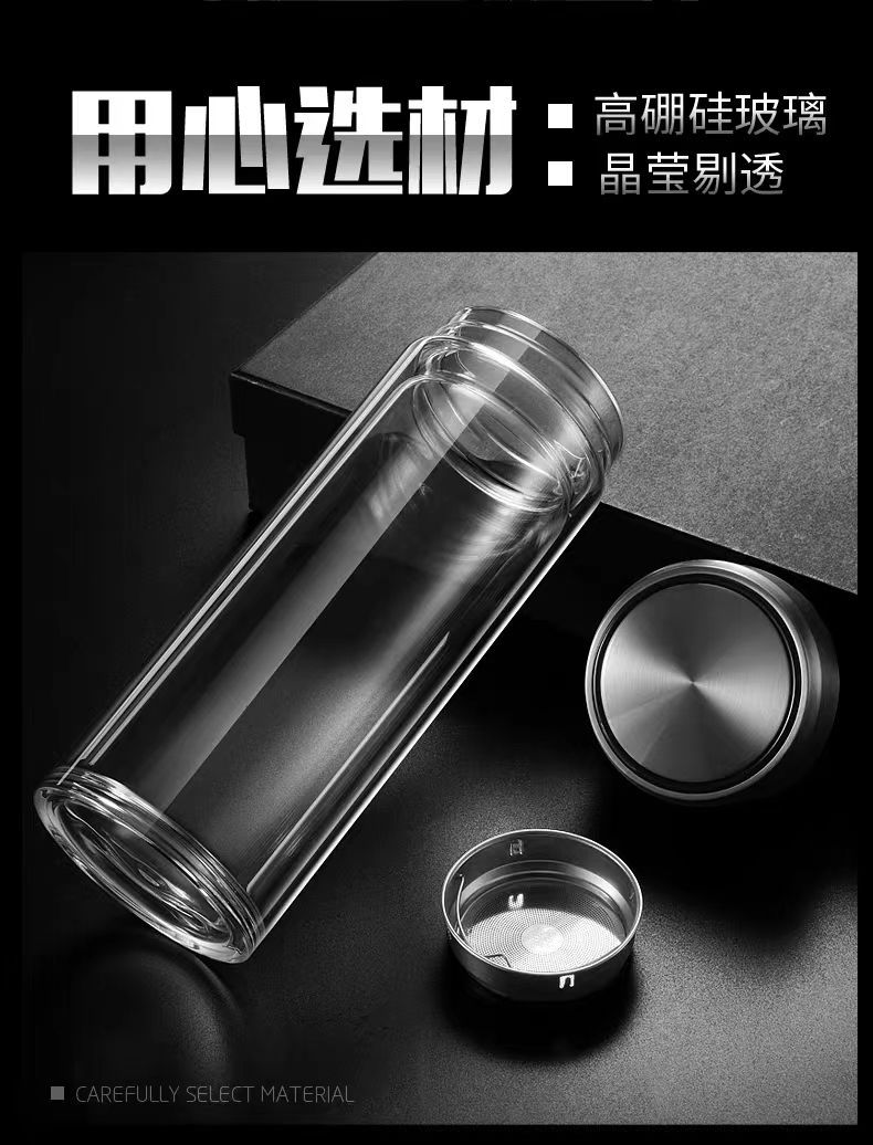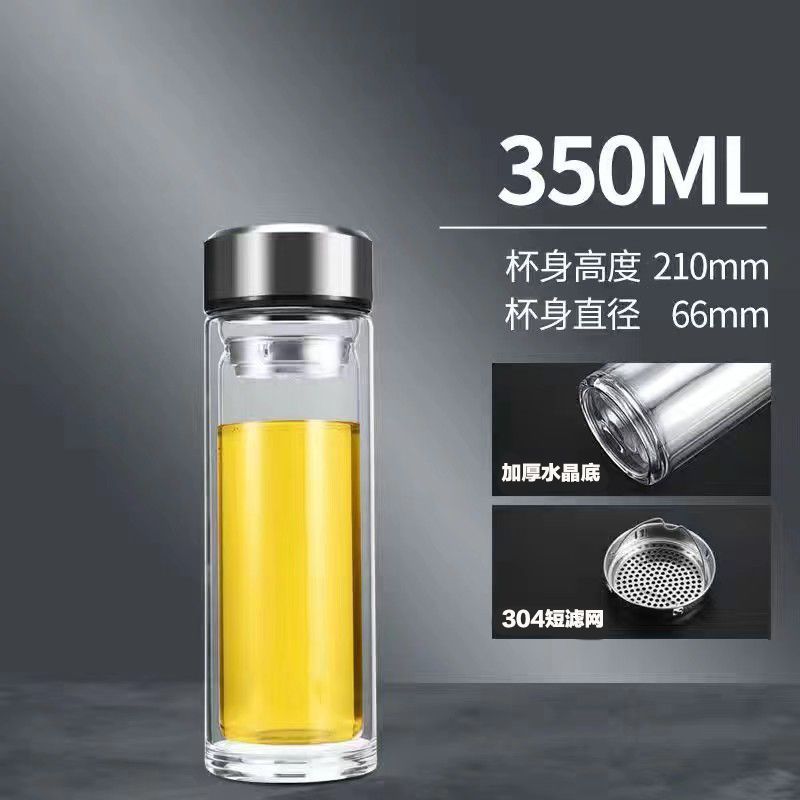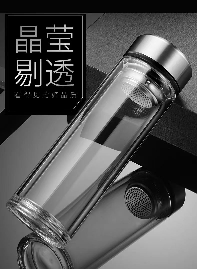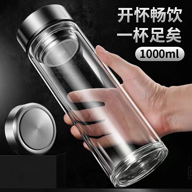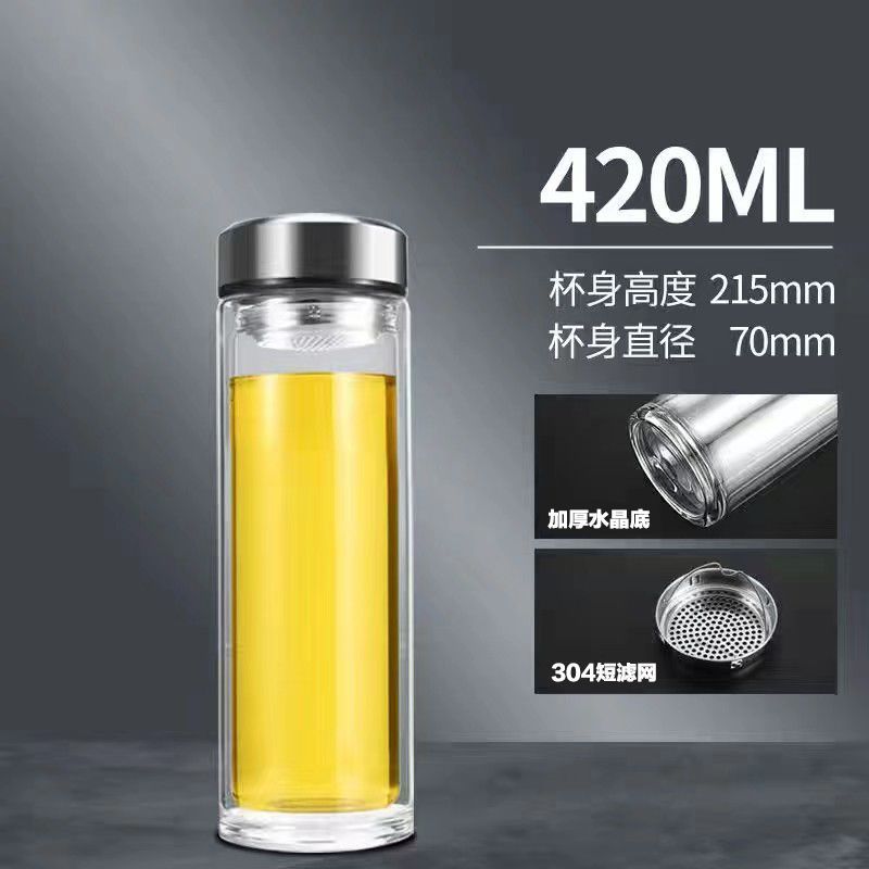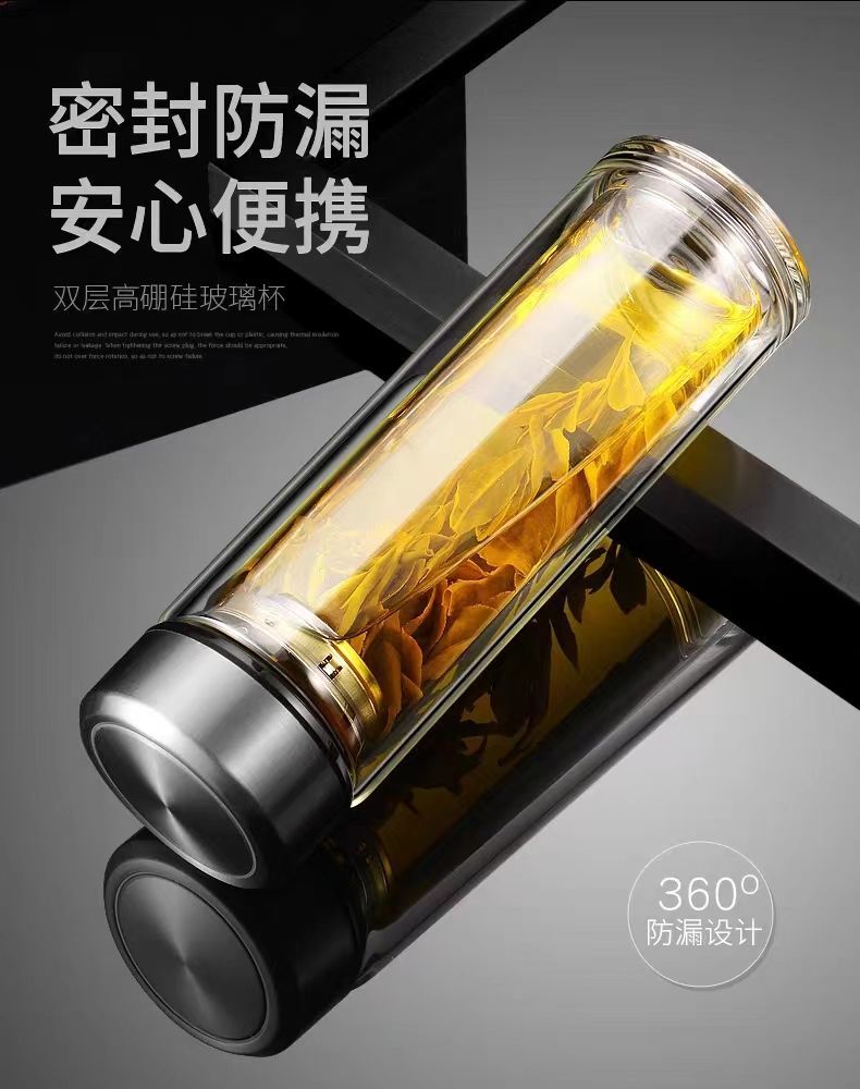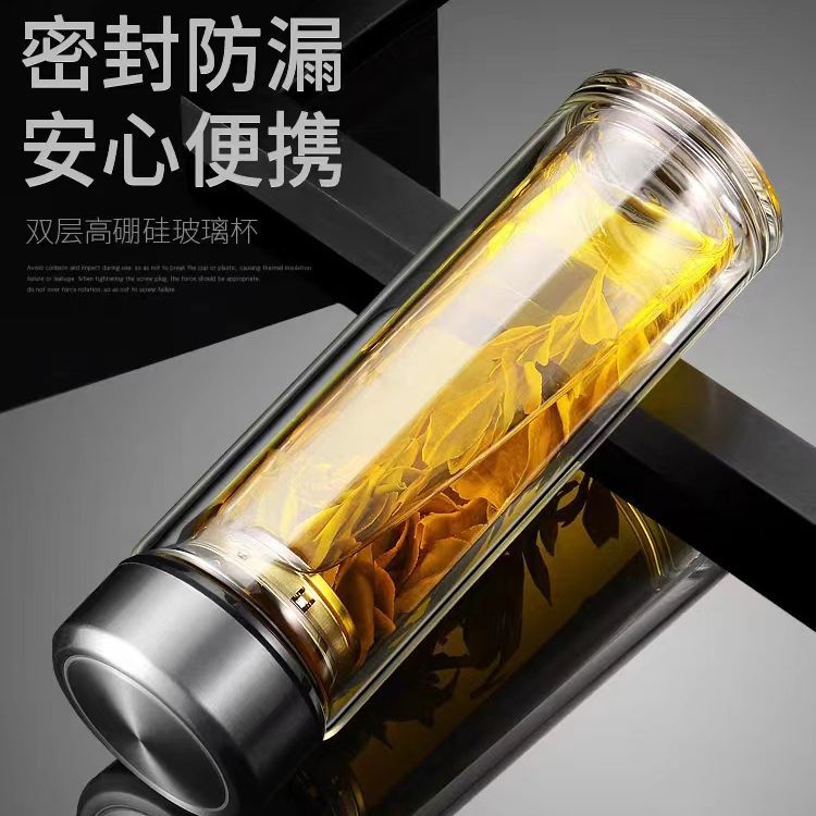 双层玻璃茶杯特大号玻璃杯大容量双层玻璃杯茶水分离男士高硼硅