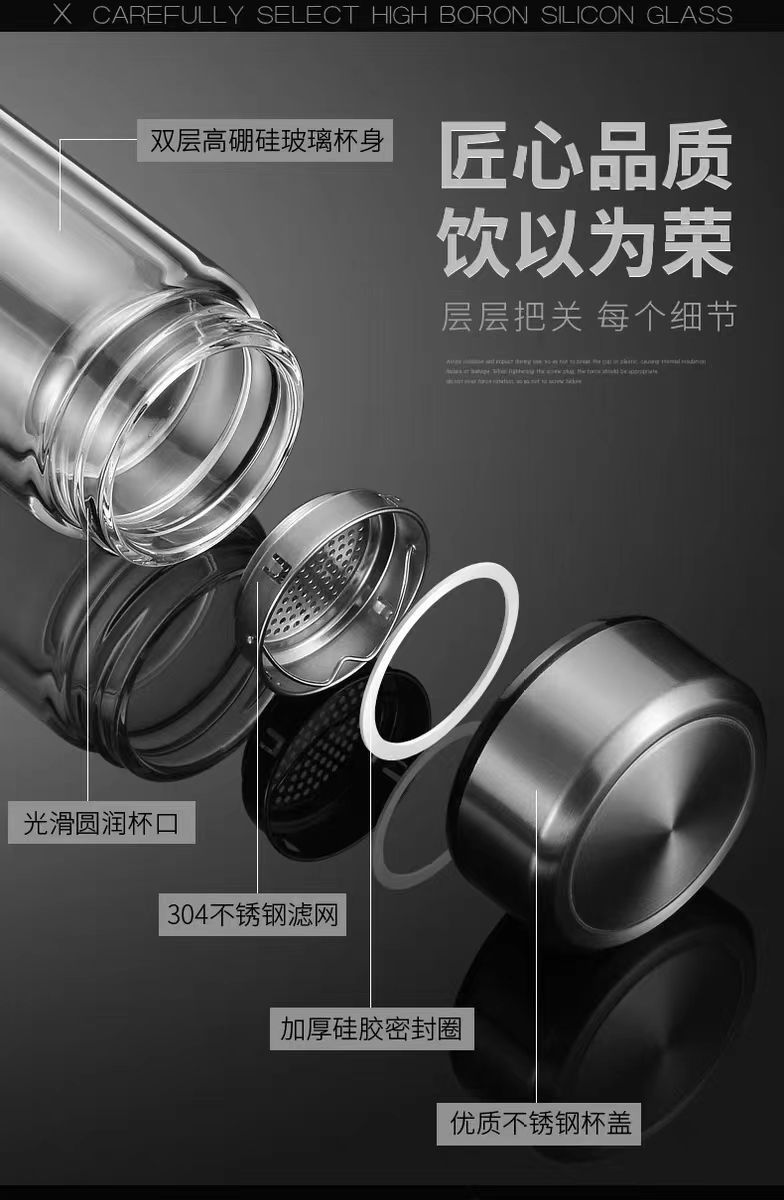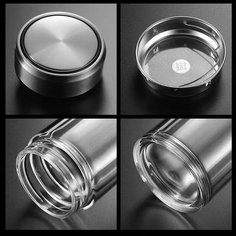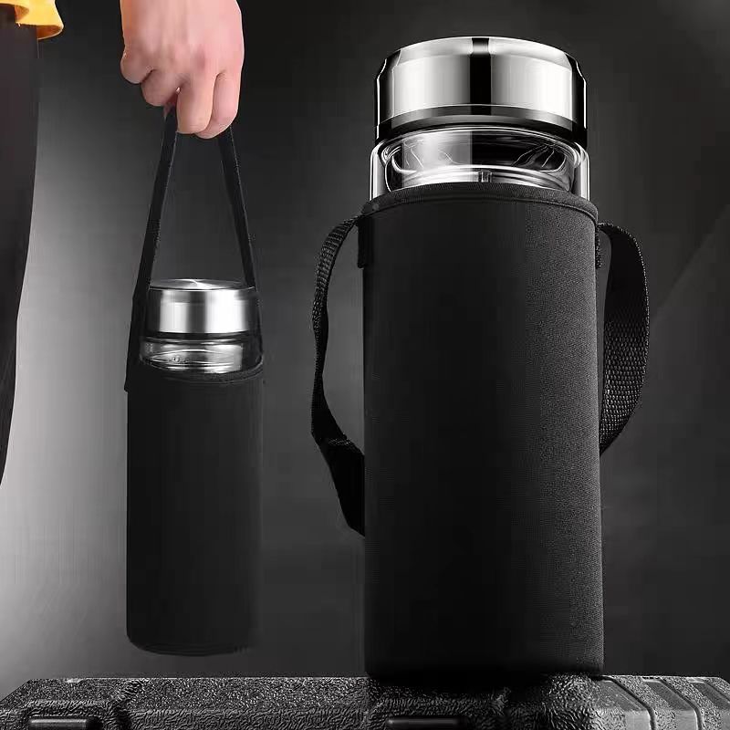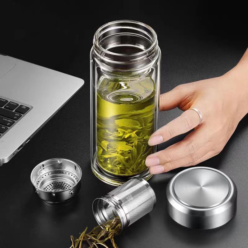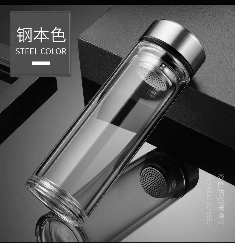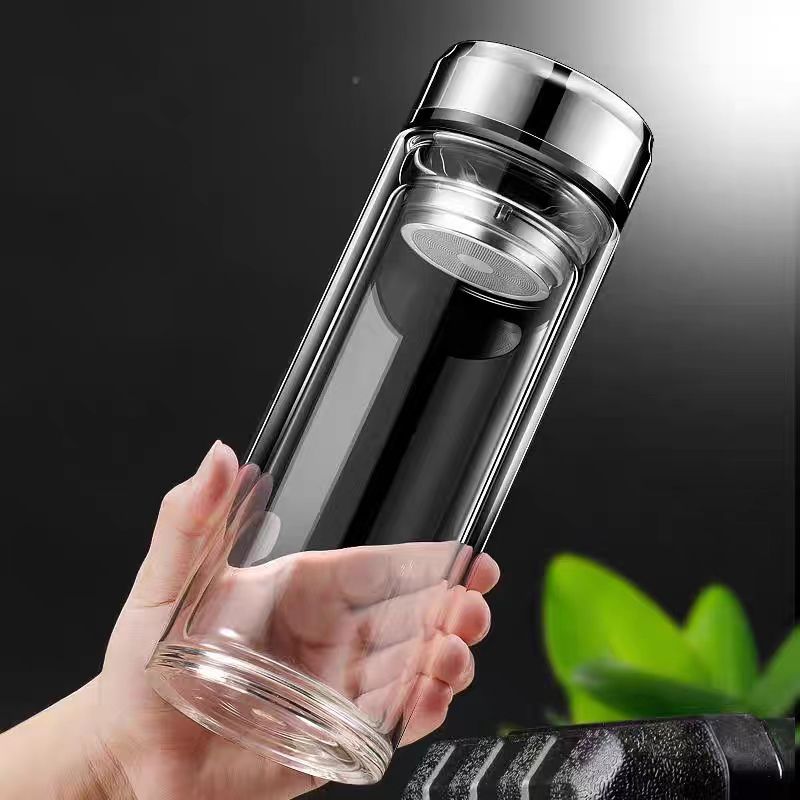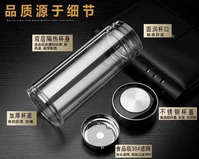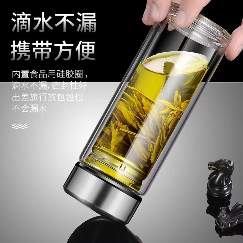 双层玻璃茶杯特大号玻璃杯大容量双层玻璃杯茶水分离男士高硼硅