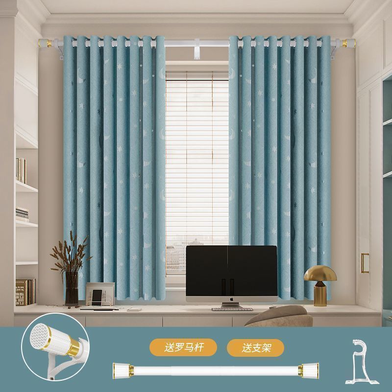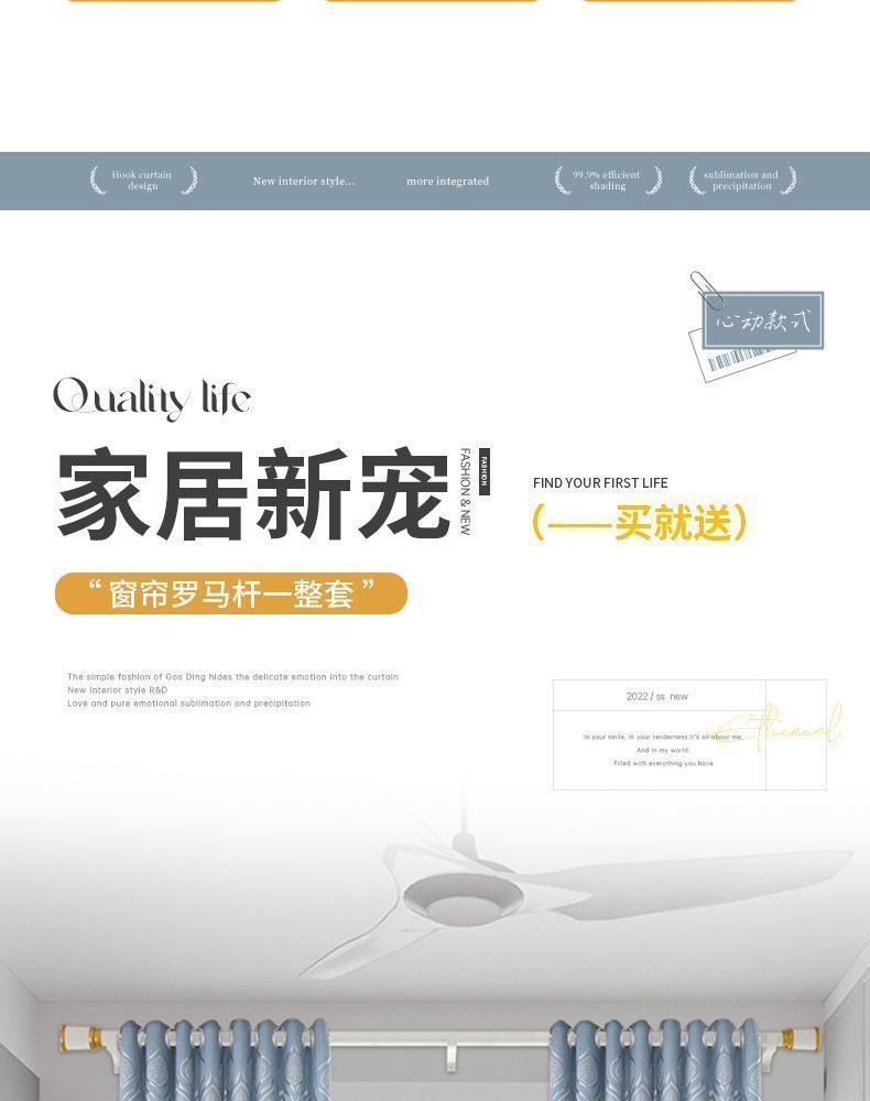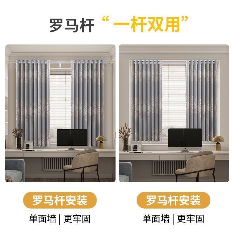 加高加长穿杆轨道帘遮光防晒卧室客厅飘窗隔断可定制超简易安装