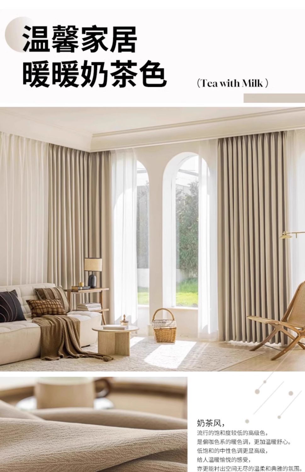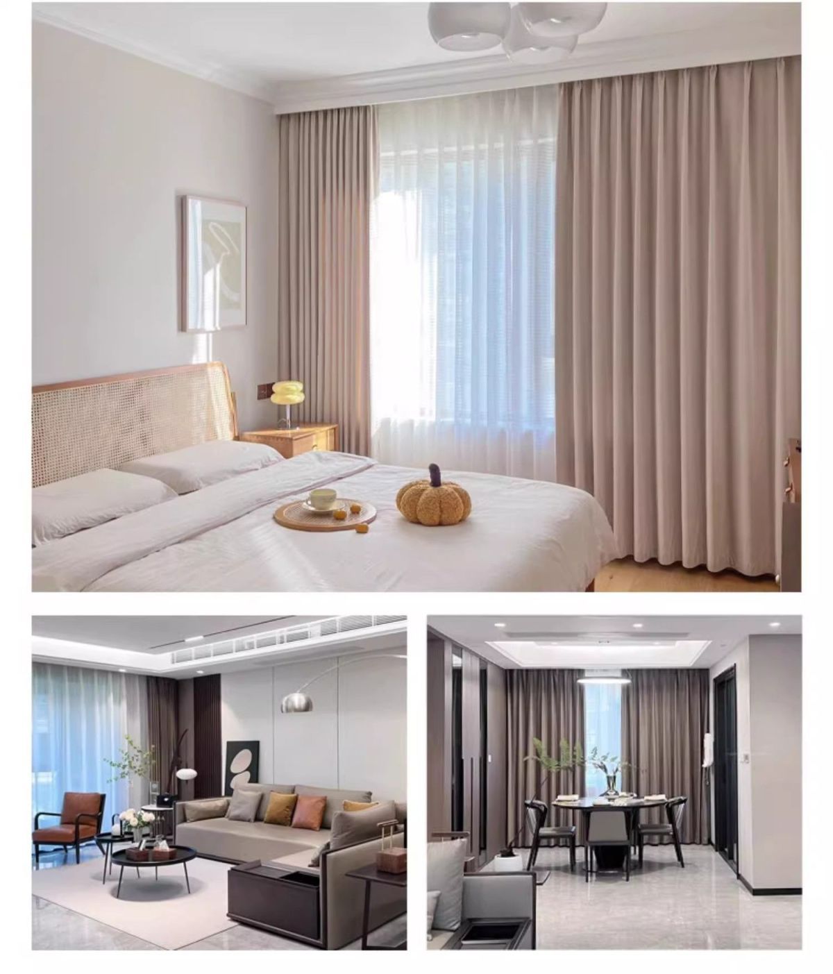 绍兴柯桥窗帘全屋定制全遮光高温定型上门测量安装客厅轻奢一整套