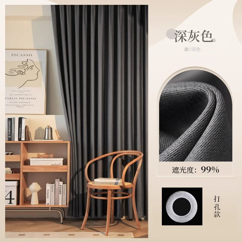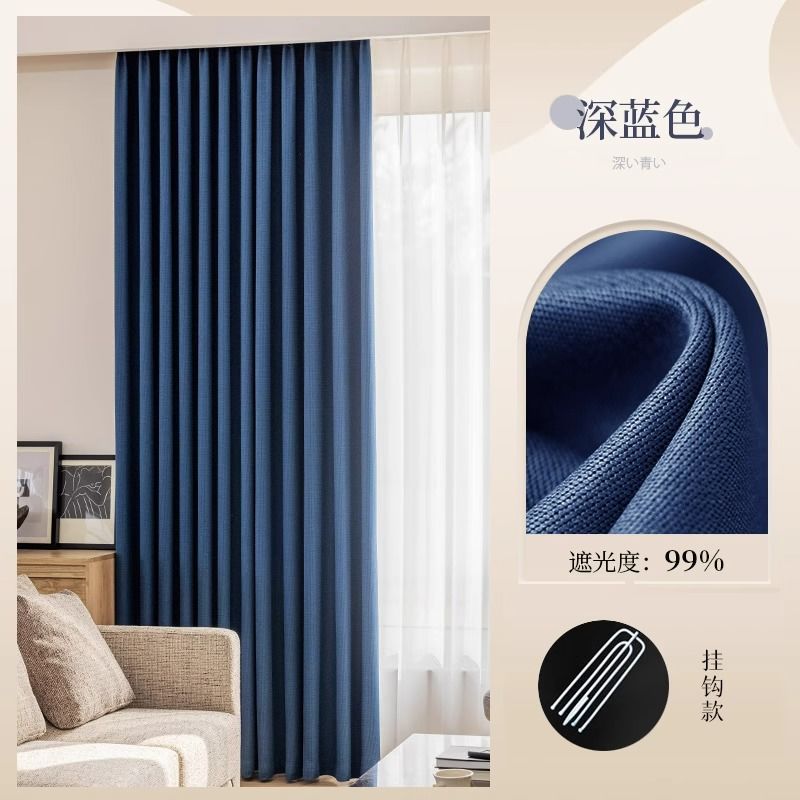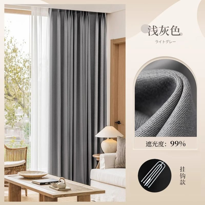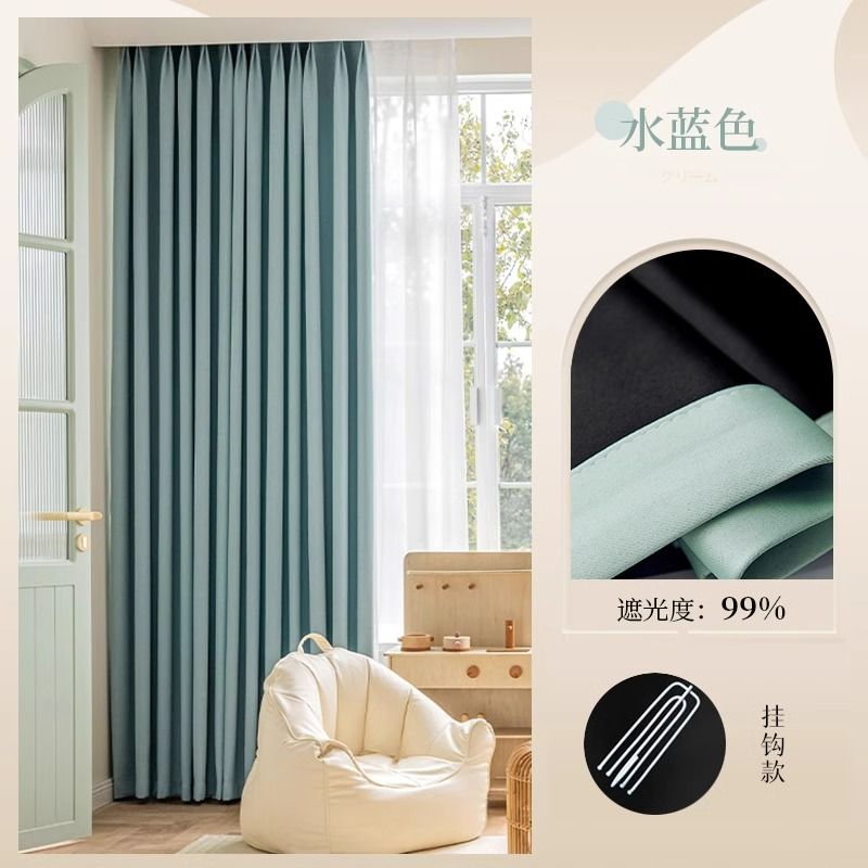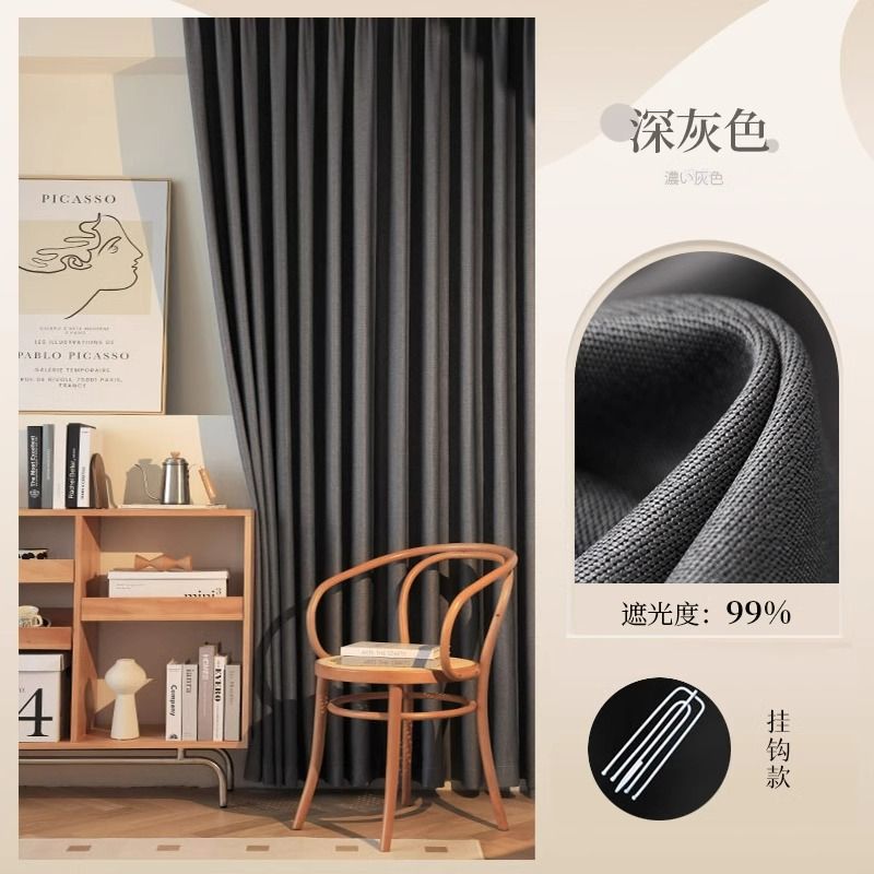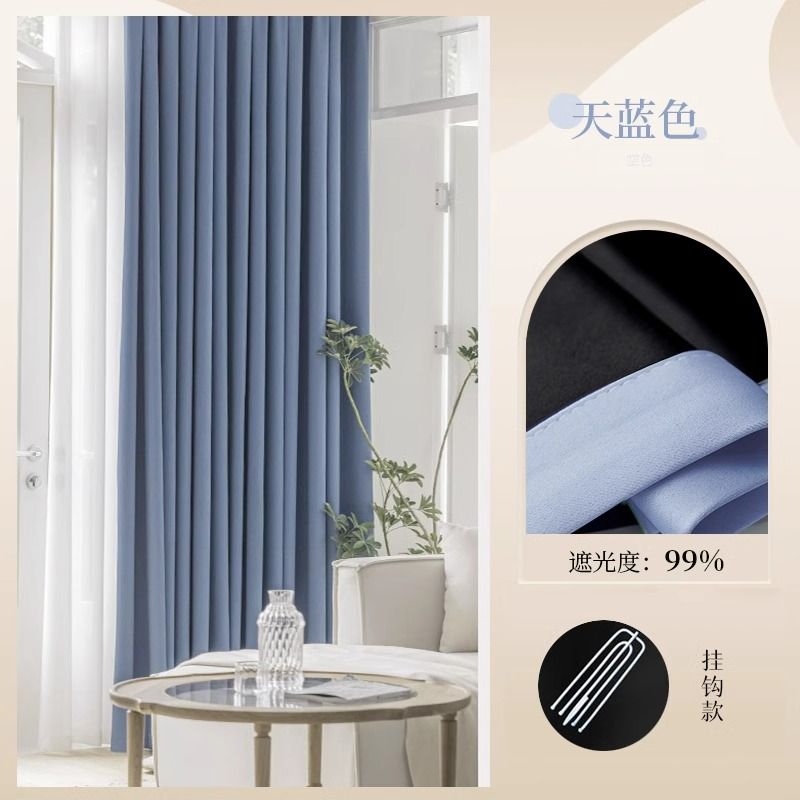 加厚遮光窗帘滑轨式2023新款防晒隔热飘窗遮阳卧室客厅阳台挂钩款