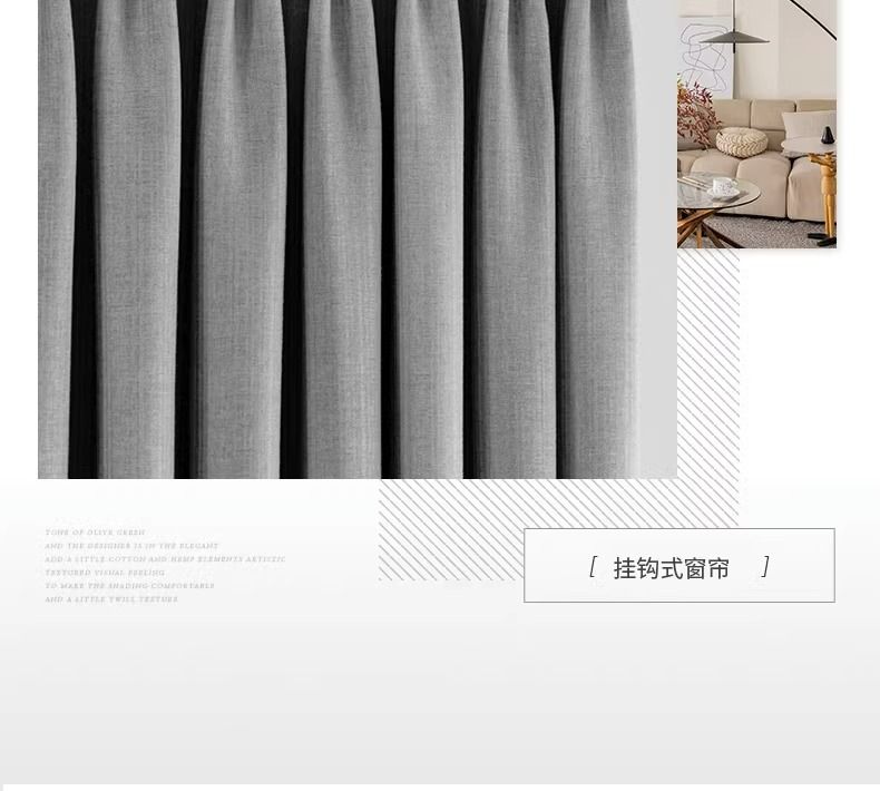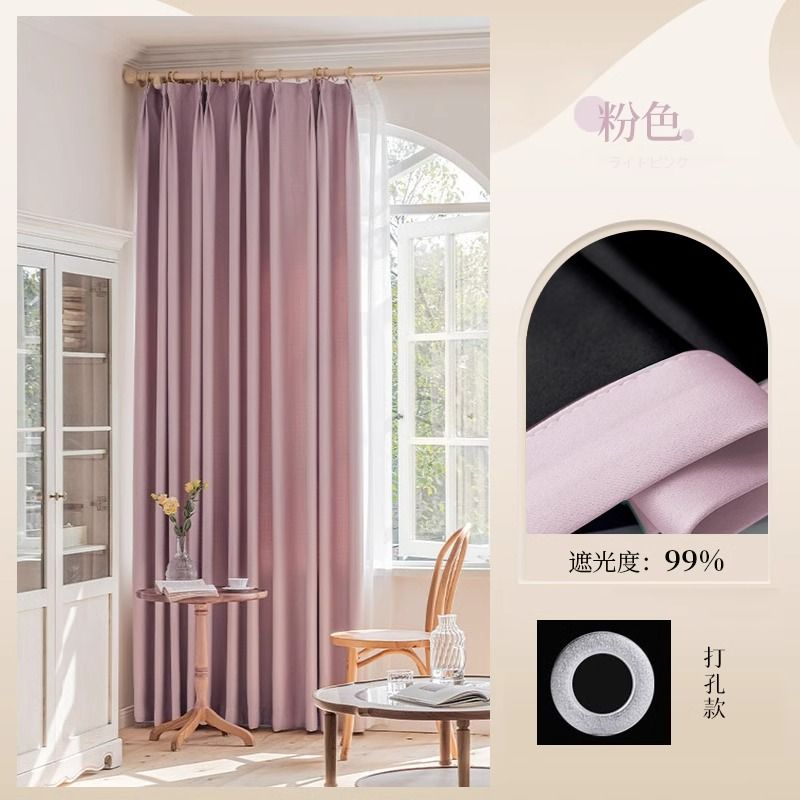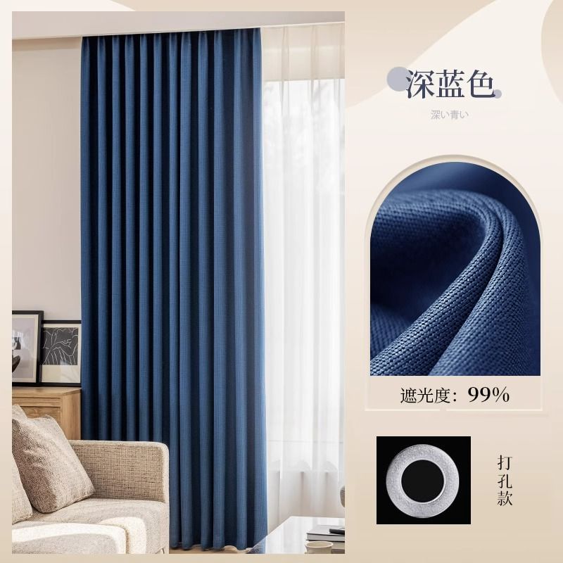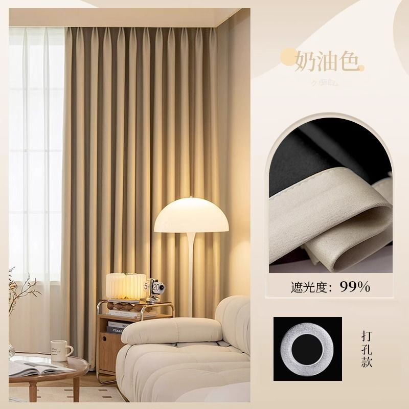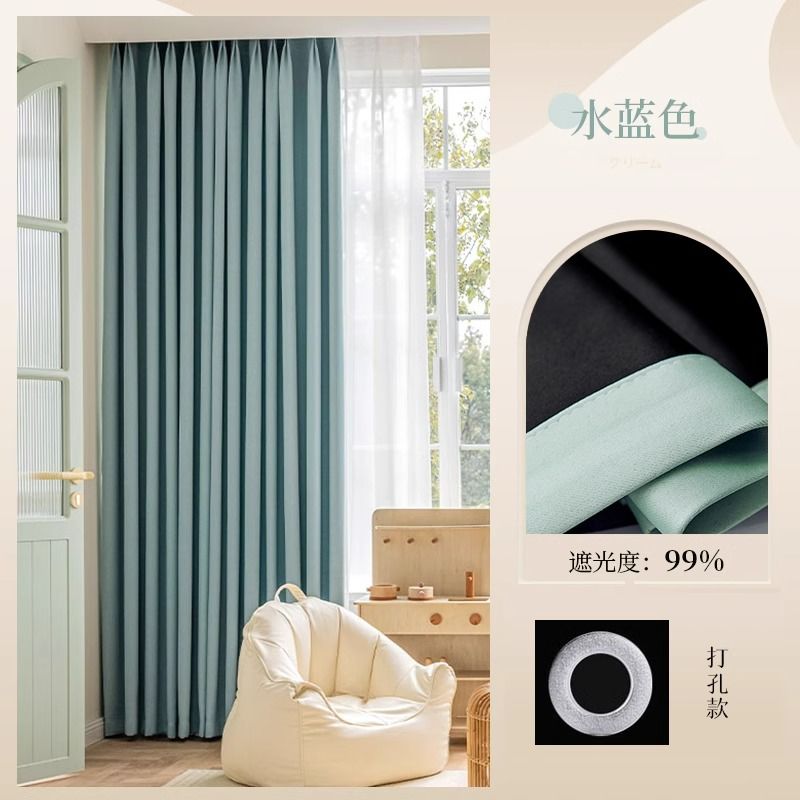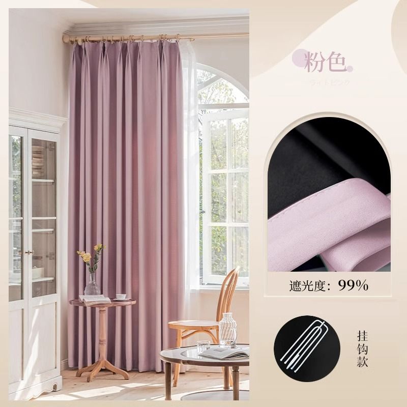 加厚遮光窗帘滑轨式2023新款防晒隔热飘窗遮阳卧室客厅阳台挂钩款