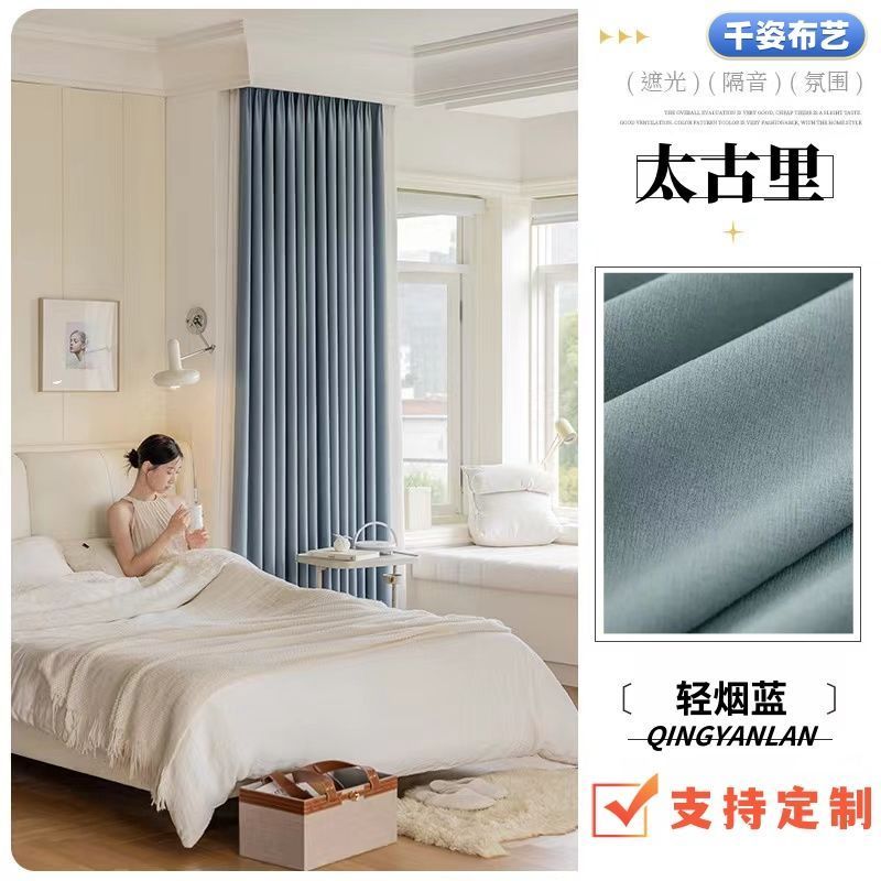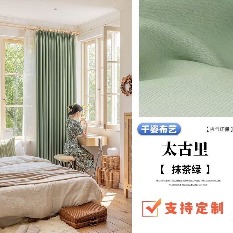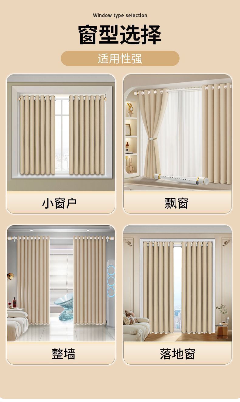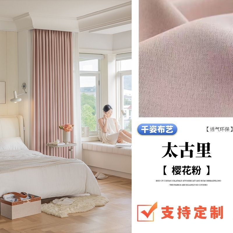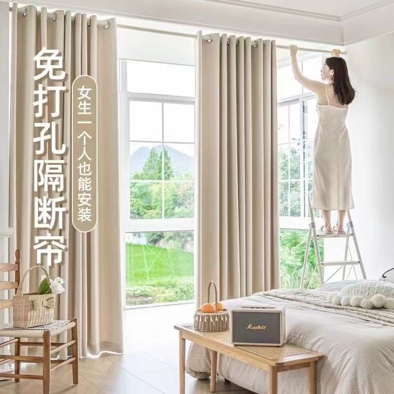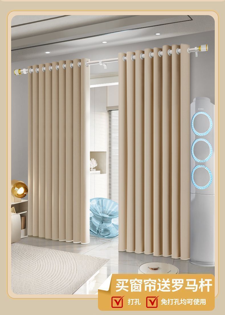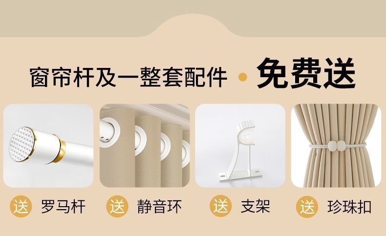 奶油风窗帘遮光卧室客厅书房飘窗遮阳防晒阳台隔热帘送罗马杆全套