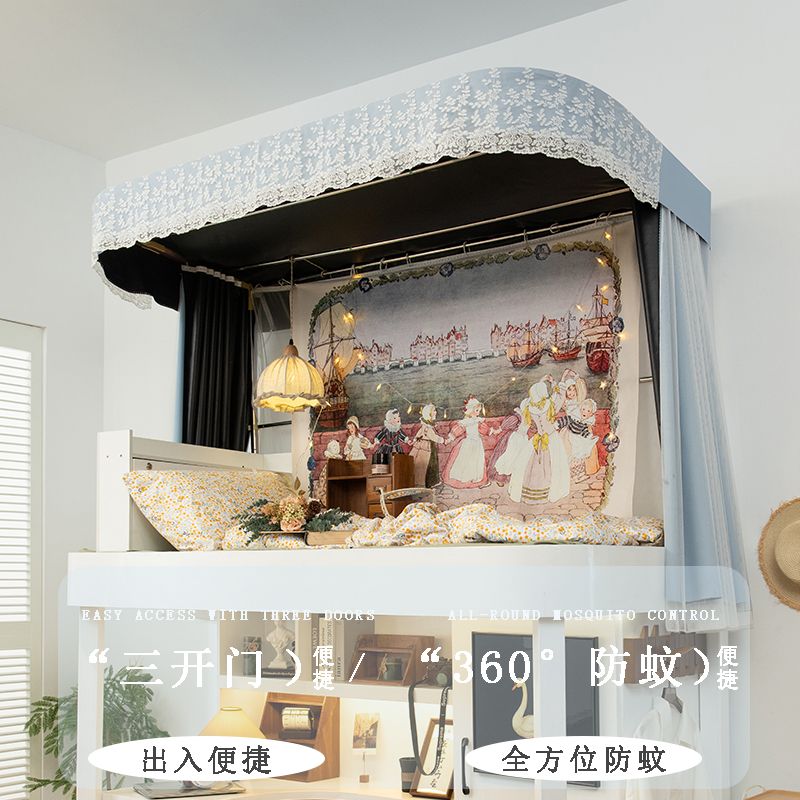 公主宿舍床帘铺床上铺轨道大学生寝室下铺专用遮光遮挡一体式蚊帐