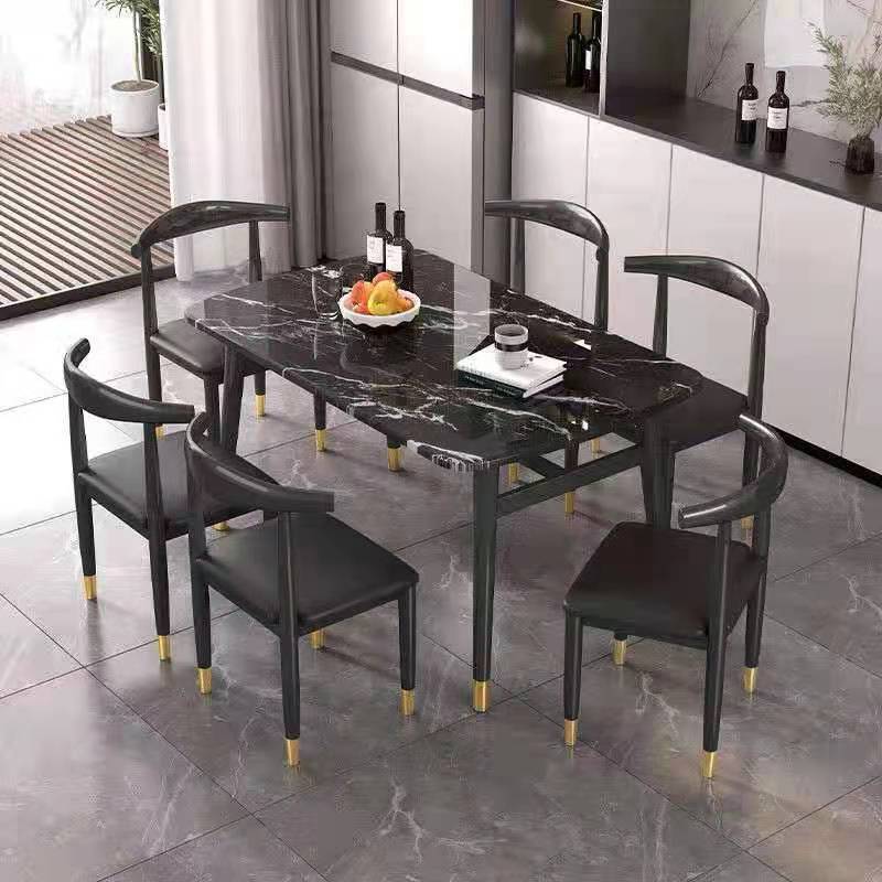 轻奢仿理石餐桌椅组合家用饭桌现代简约小户型餐厅长方形吃饭桌子